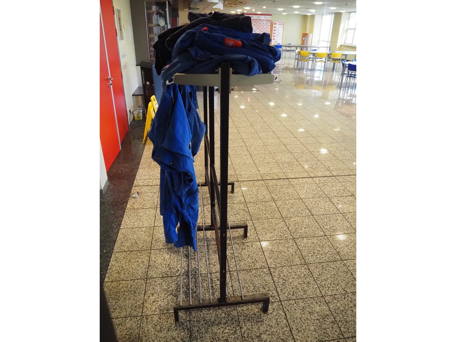 Steel coat rack, dimensions: 1500 mm x 600 mm x 1500 mm.