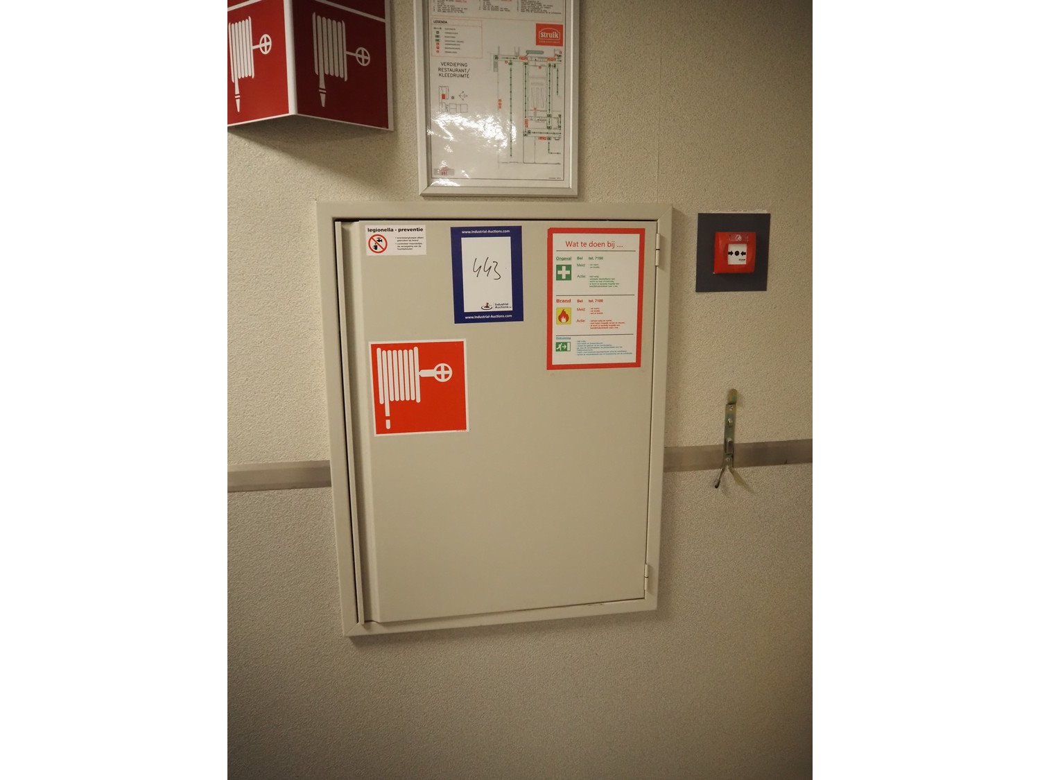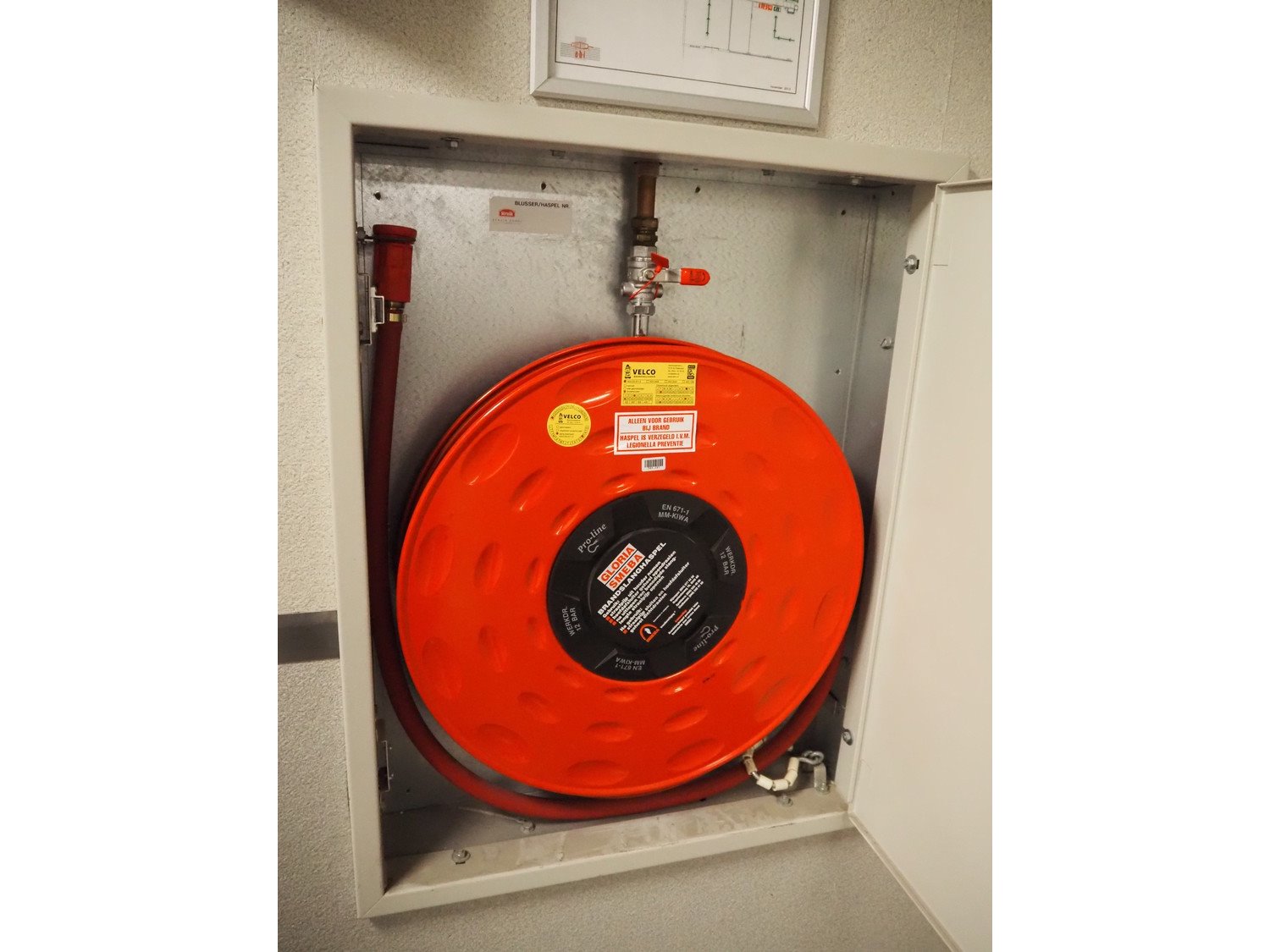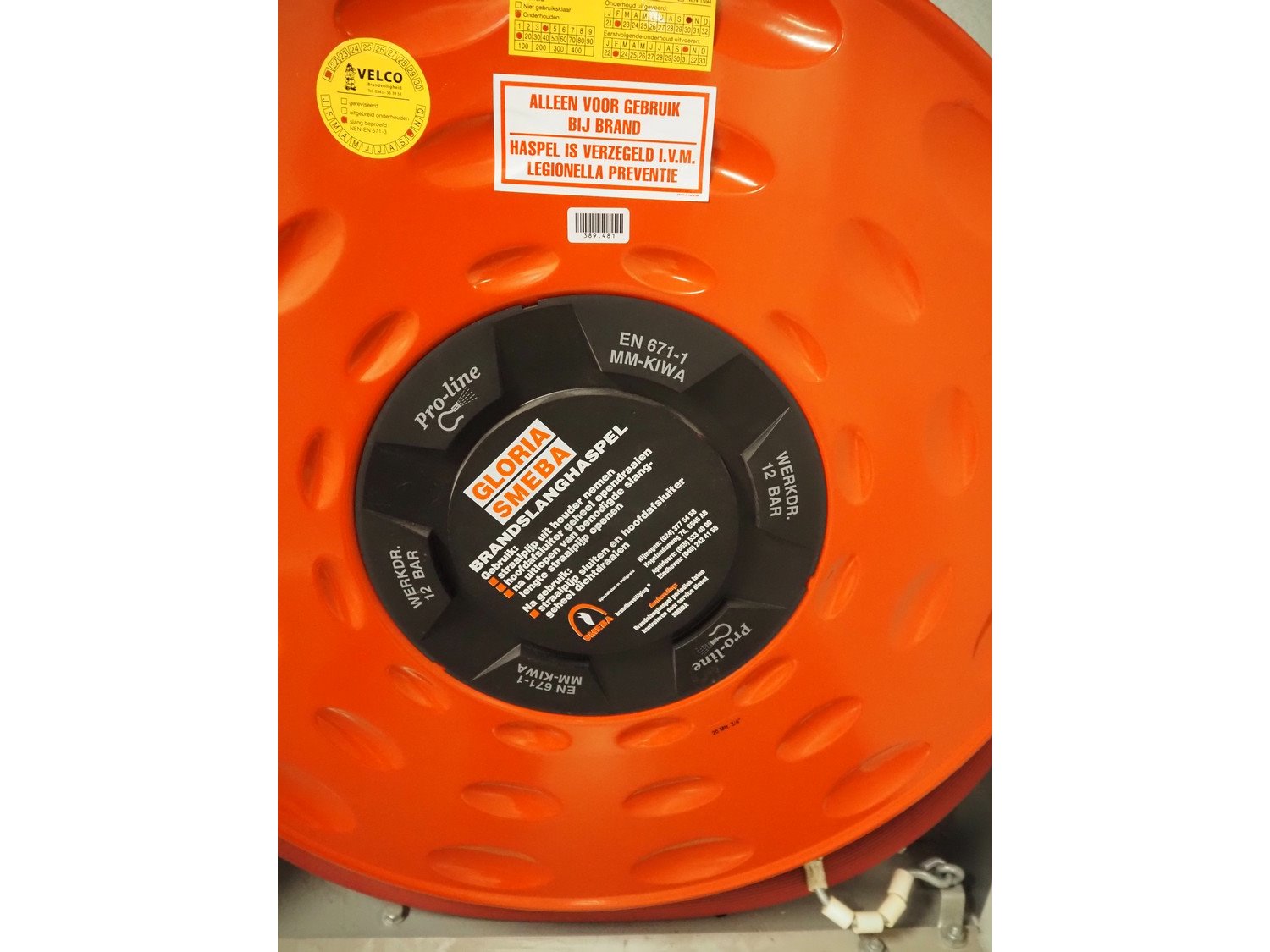 Steel cabinet with Gloria Smeba fire hose reel, dimensions: 730 mm x 180 mm x 940 mm.