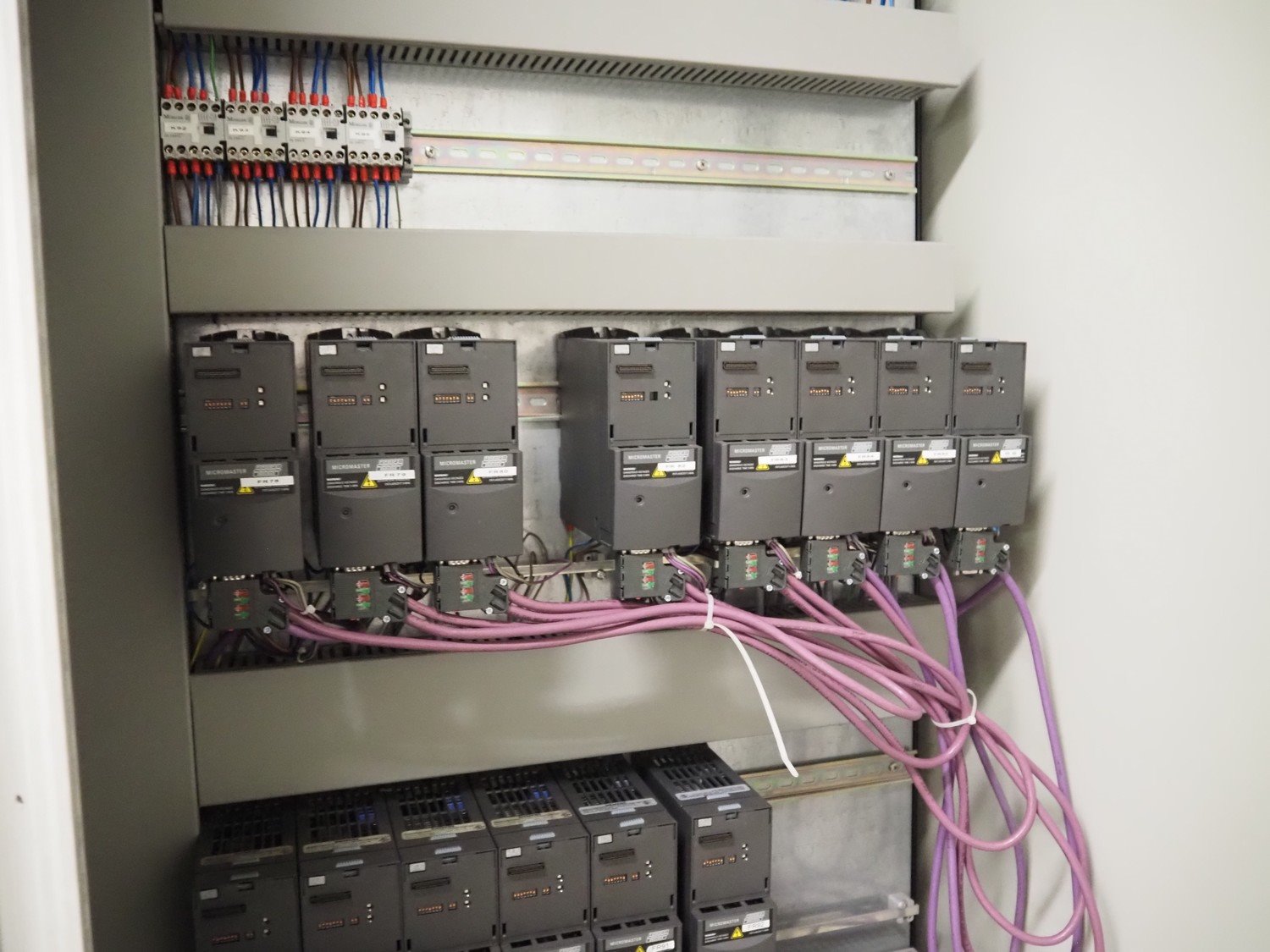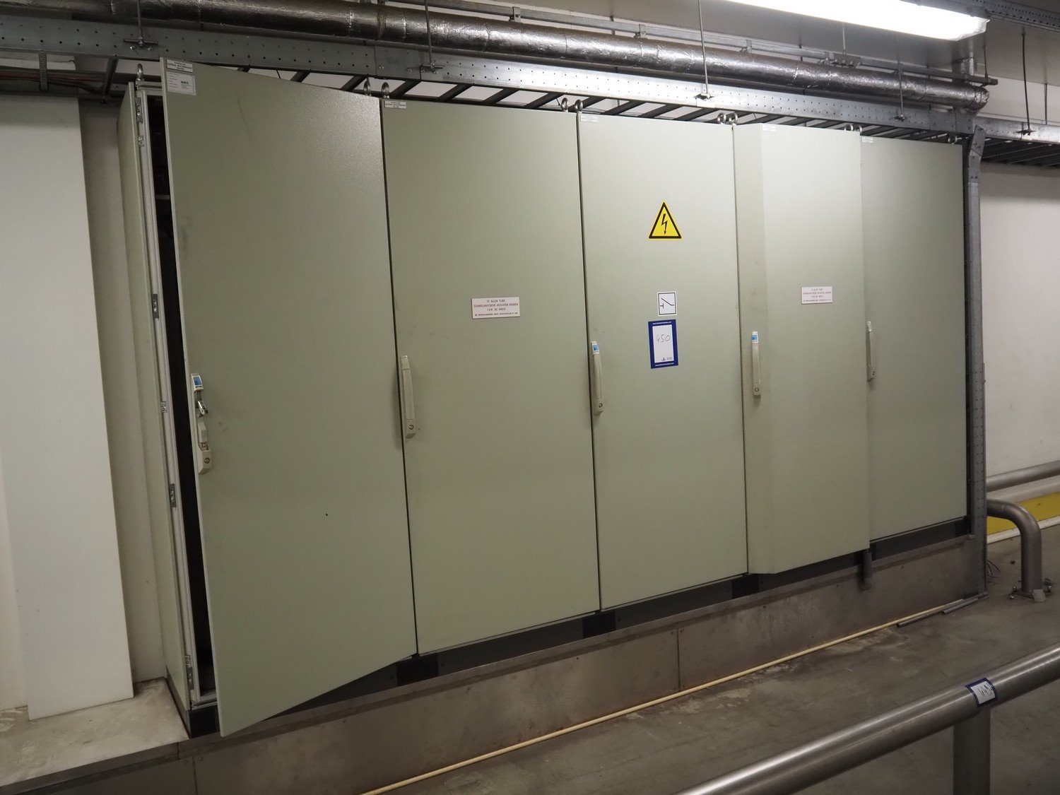 Steel switch cabinet, dimensions: 4000 mm x 670 mm x 2090 mm.