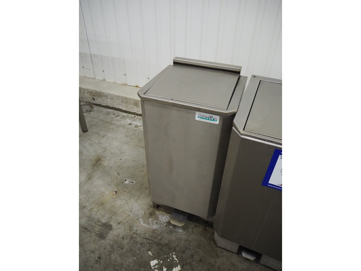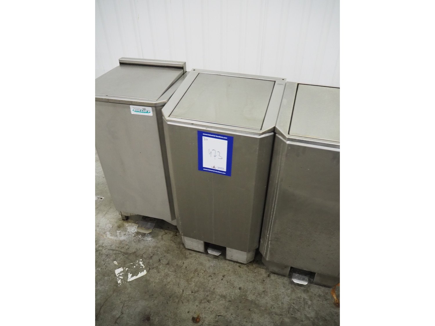 3 s/s waste bins, dimensions: (3x) 450 mm x 420 mm x 950 mm.