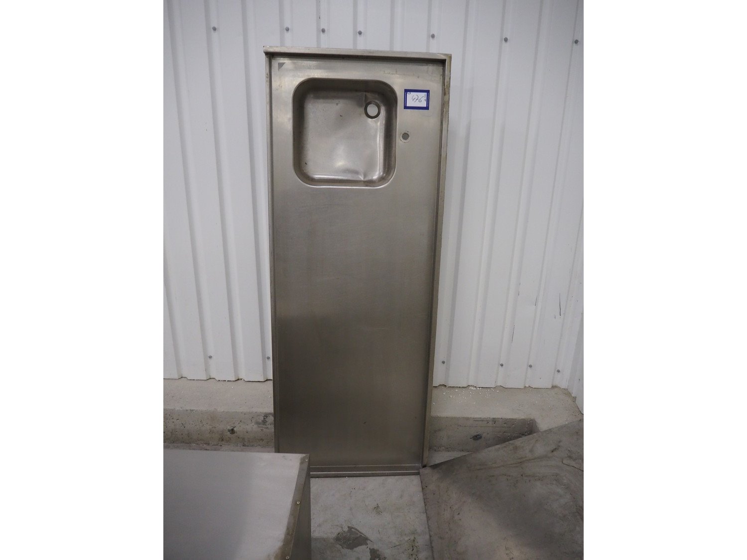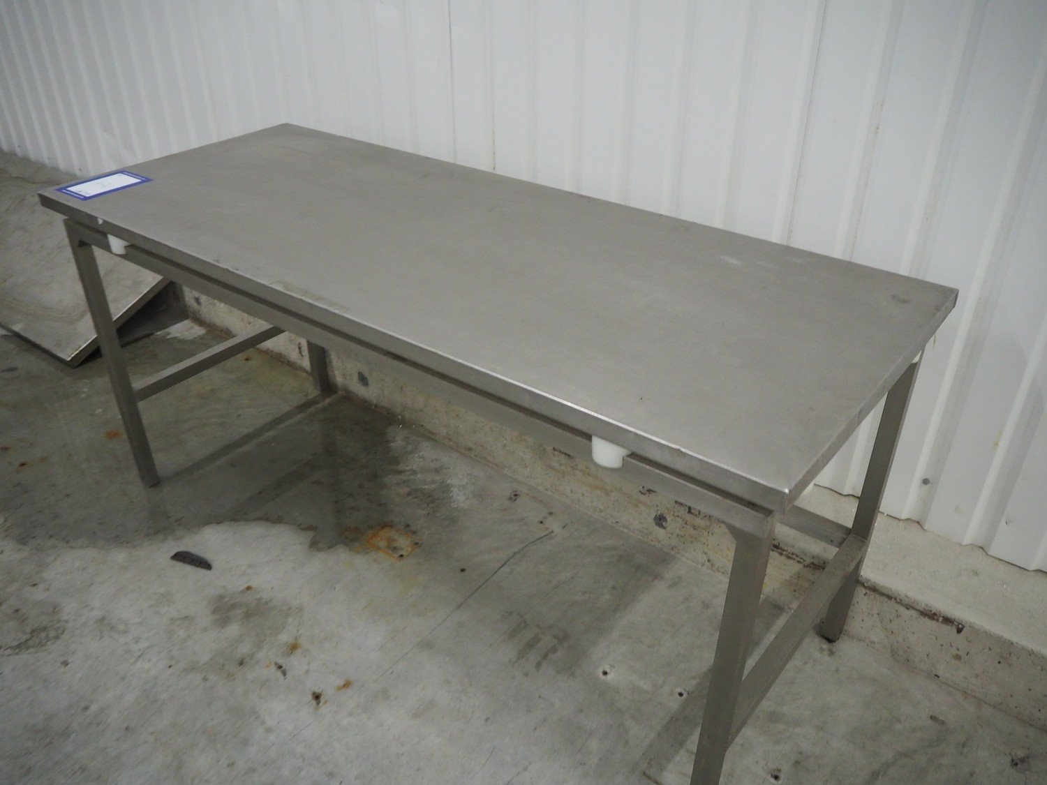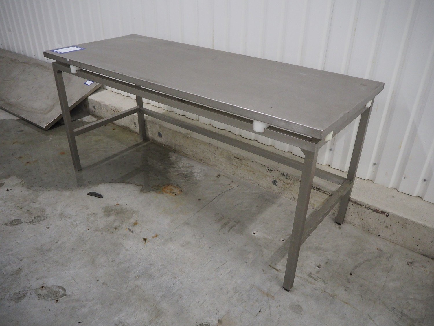 S/s sink, cabinet and table, dimensions sink: 1800 mm x 700 mm x 270 mm, dimensions cabinet: 1400 mm x 400 mm x 620 mm, dimensions table: 2000 mm x 800 mm x 930 mm.