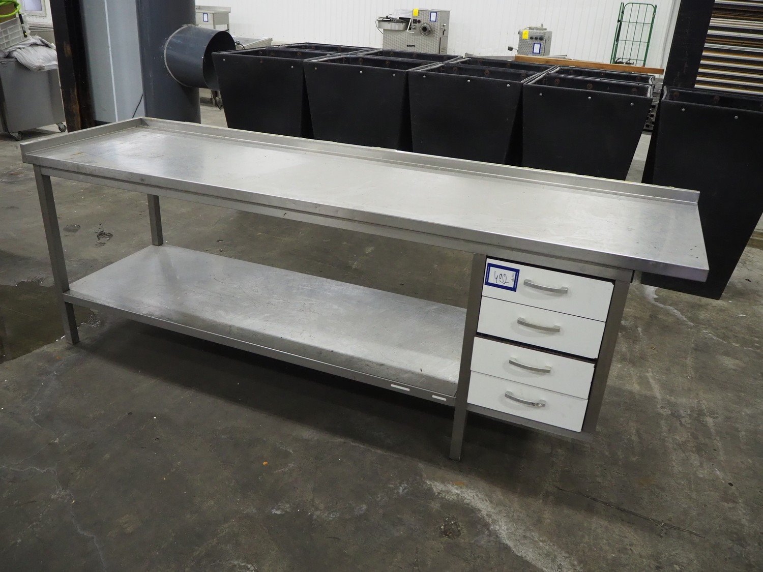 S/s kitchen counter, dimensions: 2500 mm x 700 mm x 940 mm.