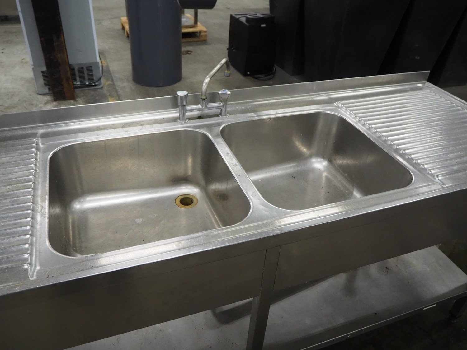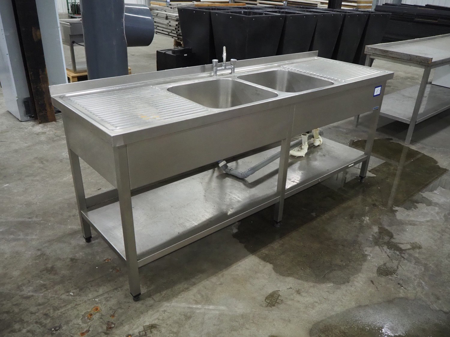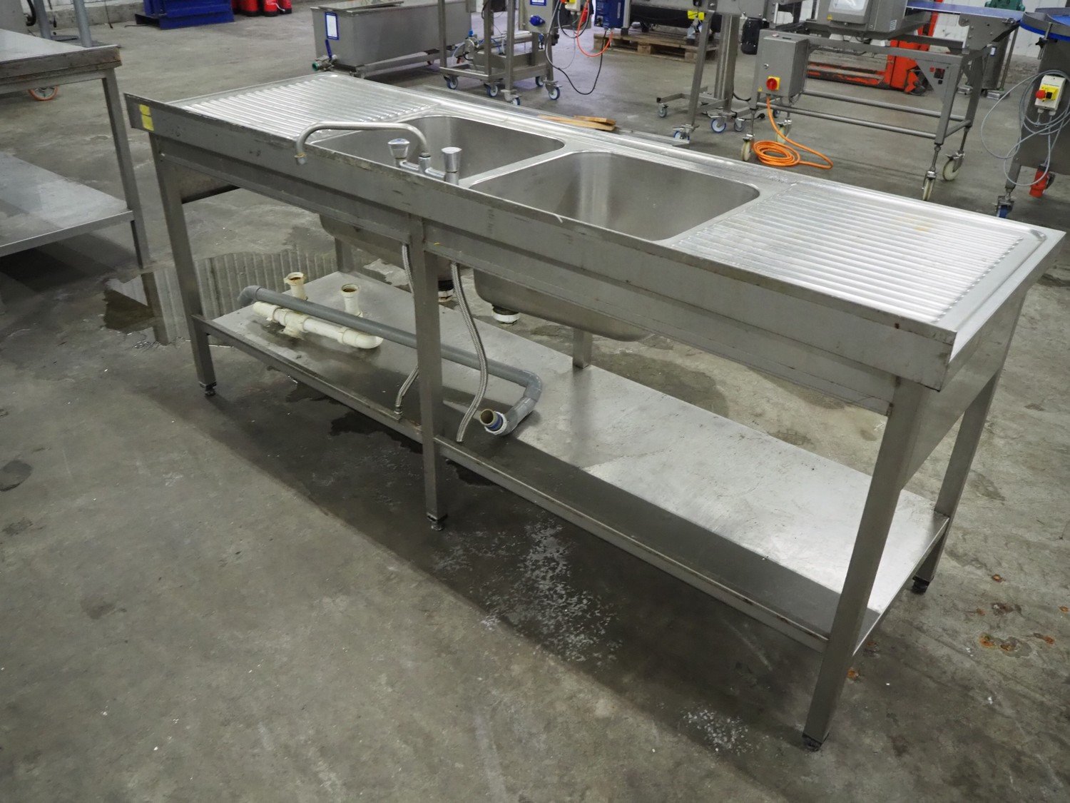 S/s double sink, dimensions: 2200 mm x 700 mm x 910 mm.