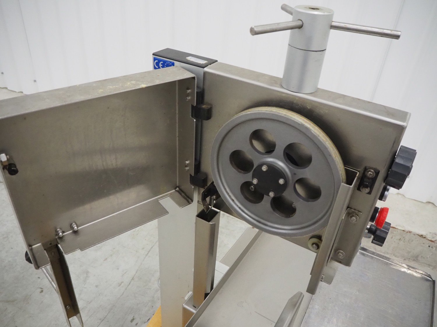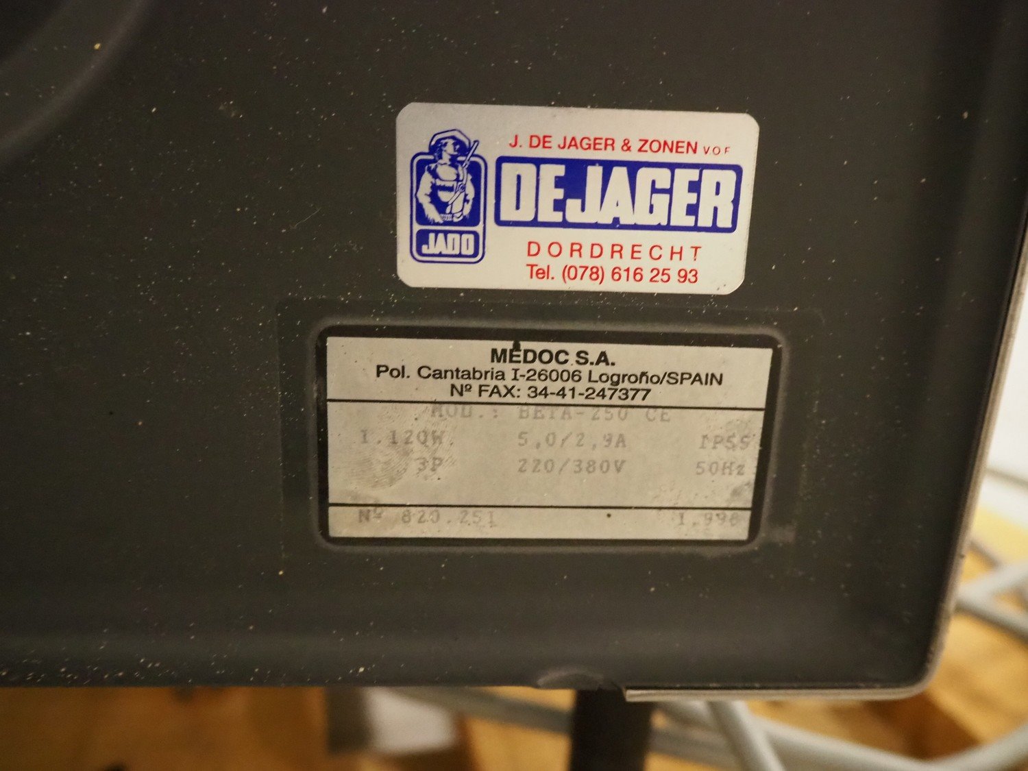 Medoc S.A. bandsaw, model: BETA-250 CE, year of construction: 1998, 220/380 V, 3 Ph, 50 Hz, 5.0/2.9 A, dimensions: 700 mm x 720 mm x 1120 mm.