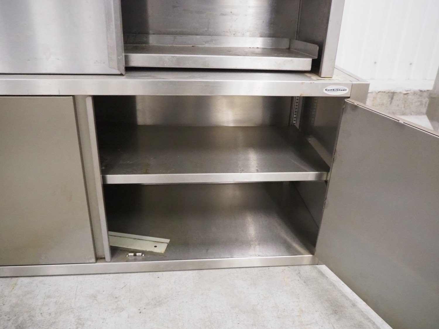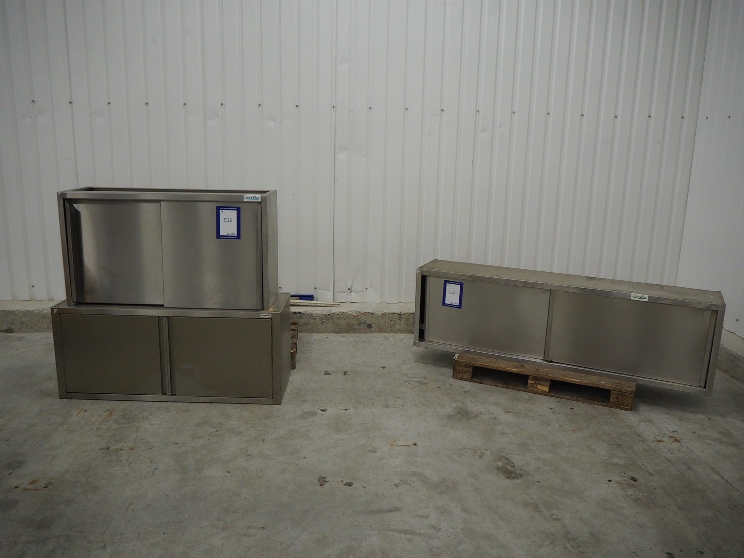 3 s/s cabinets, dimensions: (1x) 1250 mm x 420 mm x 700 mm, (1x) 1400 mm x 500 mm x 600 mm, (1x) 2000 mm x 400 mm x 590 mm.