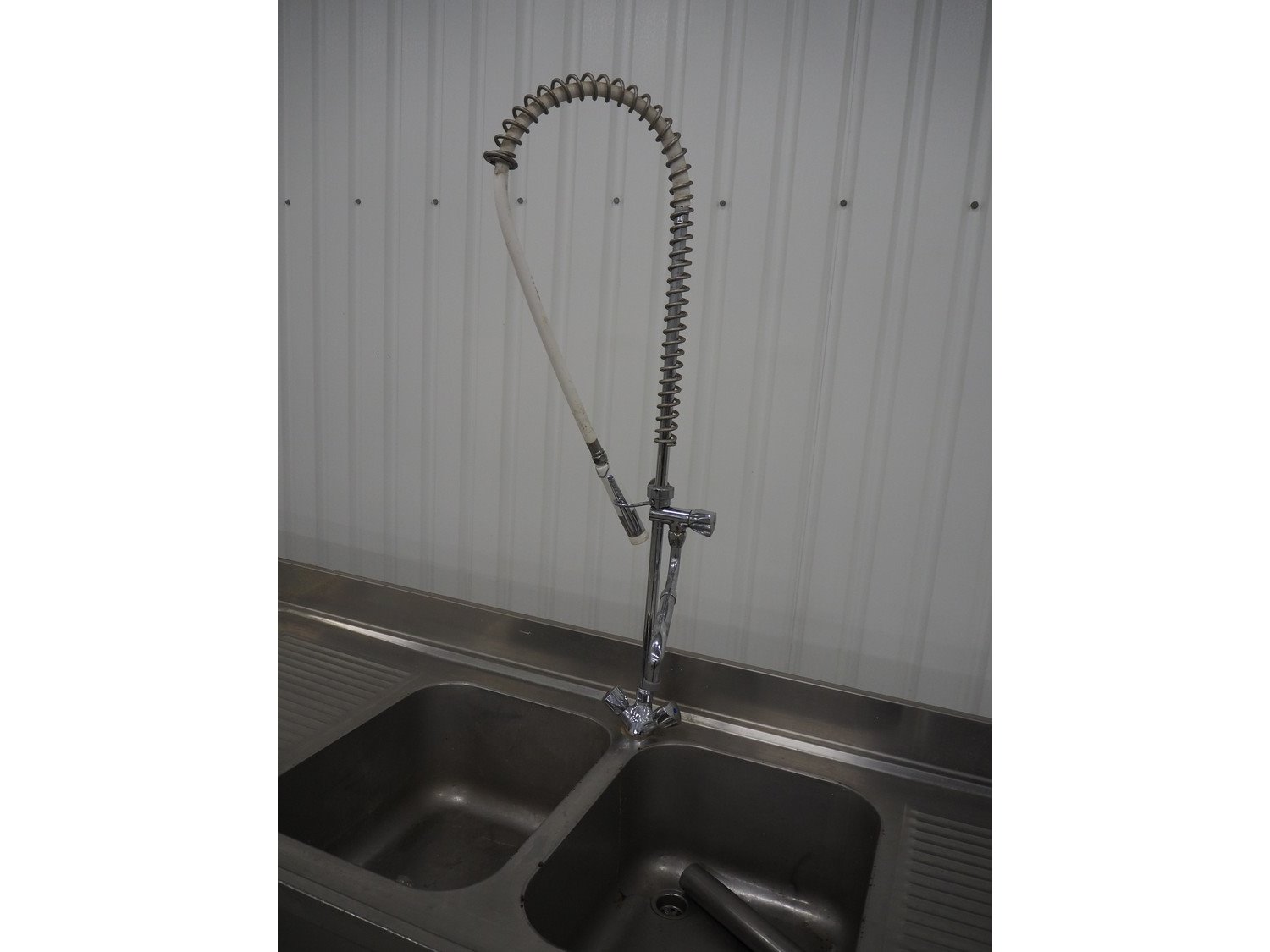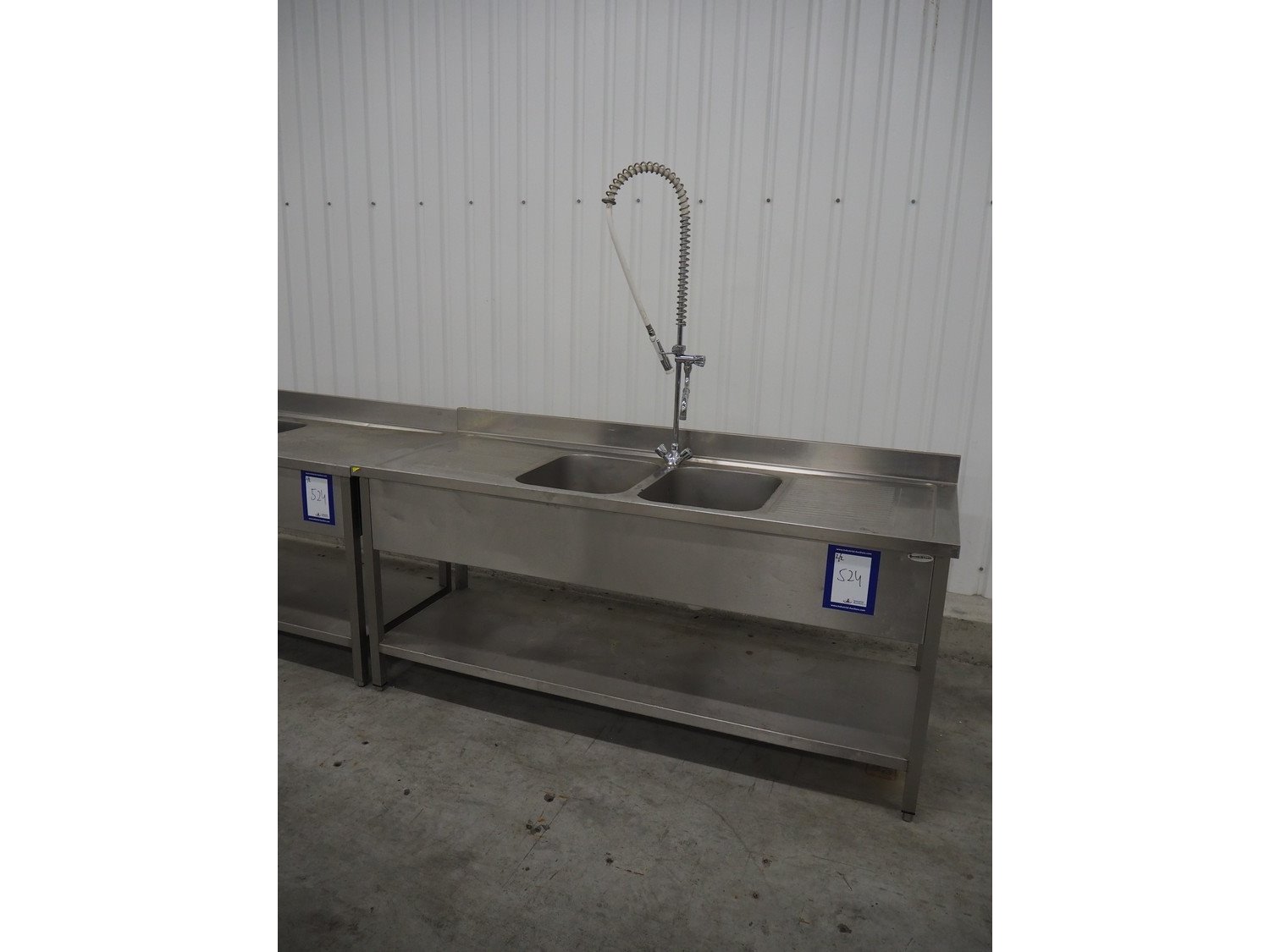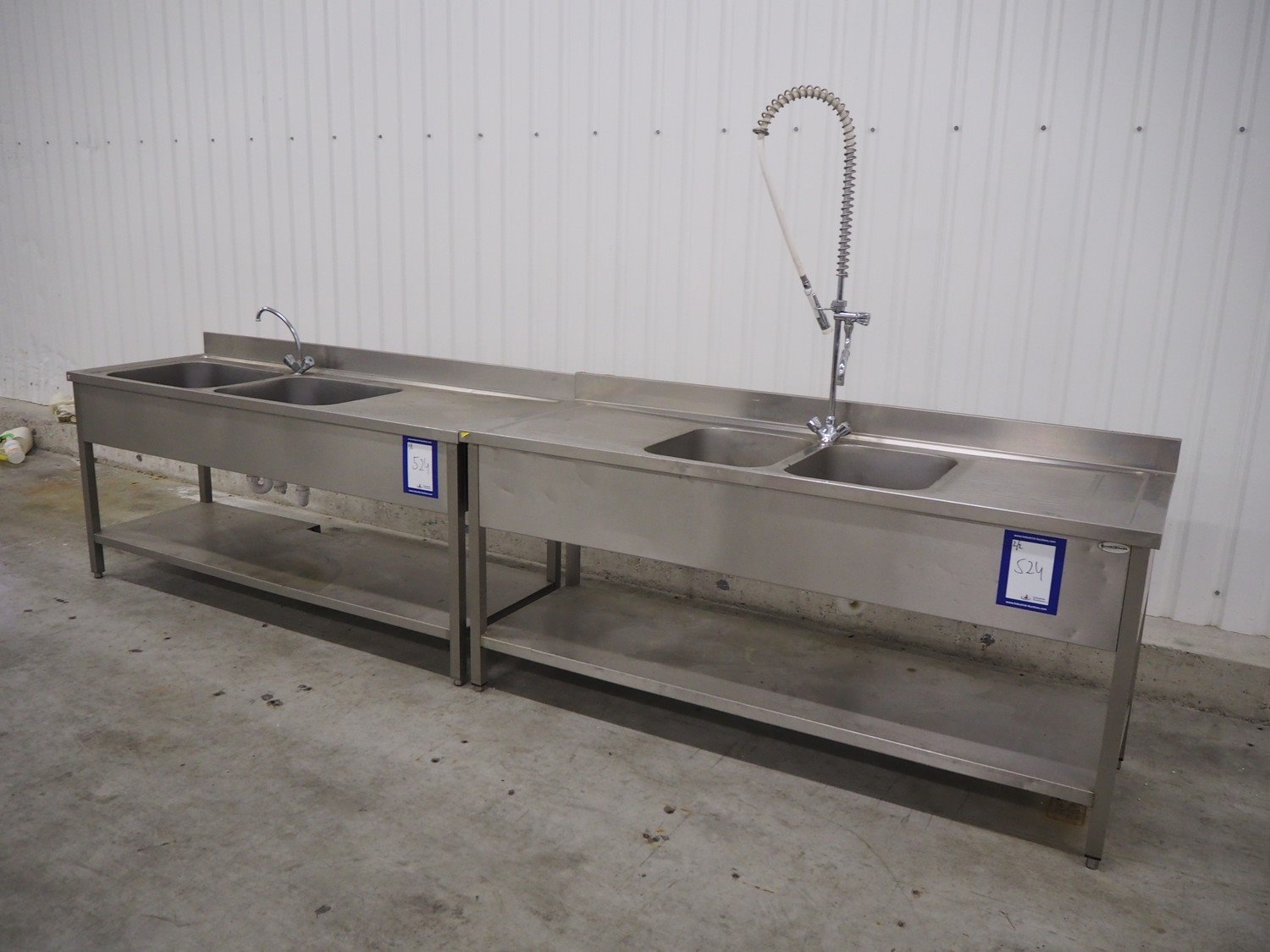 2 double sinks with faucet, dimensions: (1x) 2000 mm x 700 mm x 980 mm, (1x) 2000 mm x 700 mm x 1900 mm.
