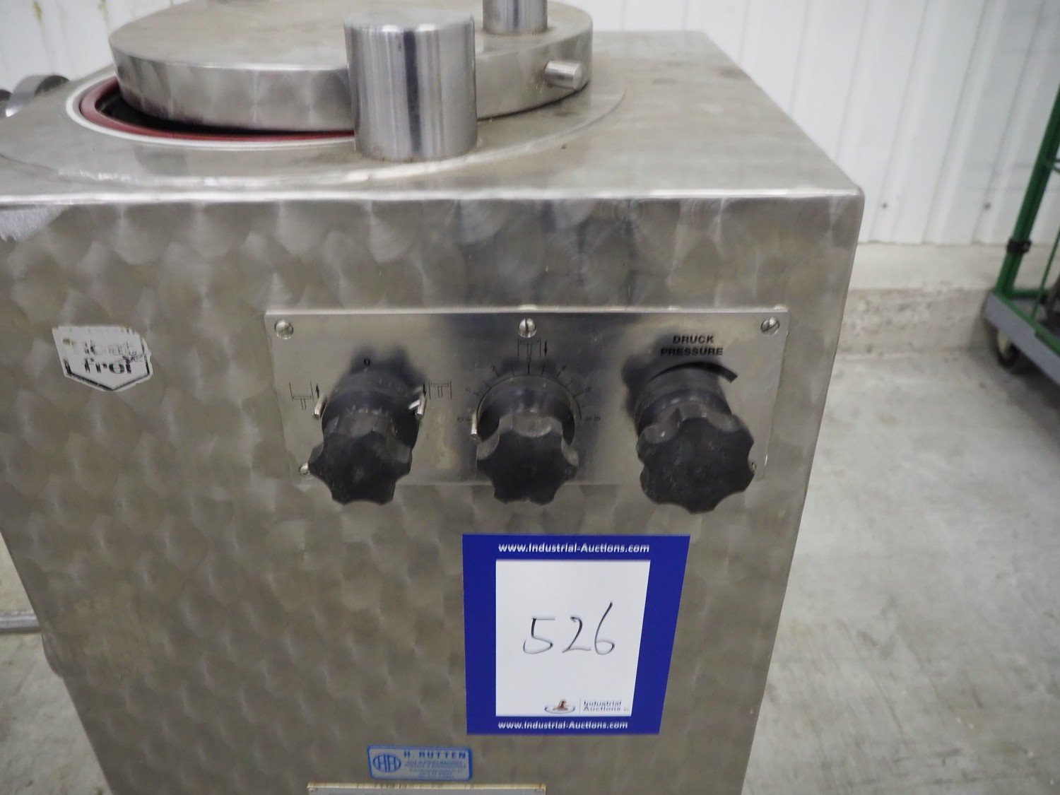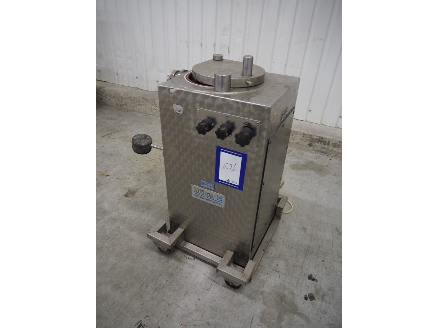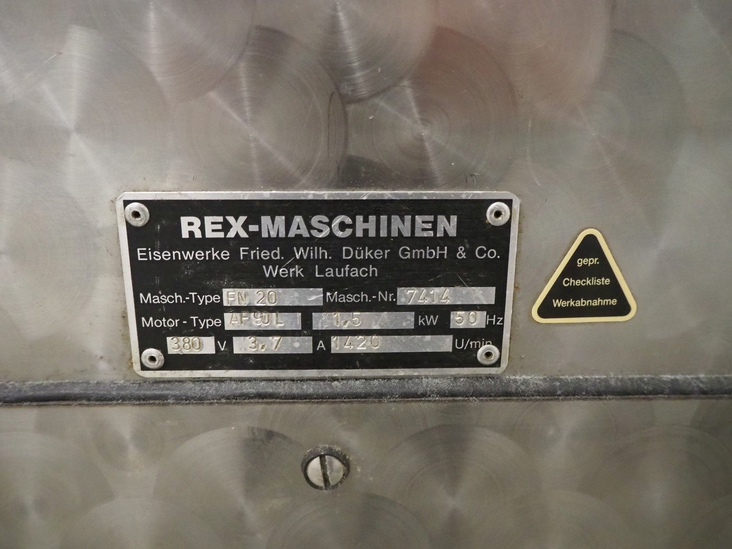 Rex-Maschinen piston filler, type: FN 20, number: 7414, 380 V, 50 Hz, 3.7 A, 1.5 kW, dimensions: 720 mm x 480 mm x 1000 mm. Including crate with extra parts. Technical condition unknown.