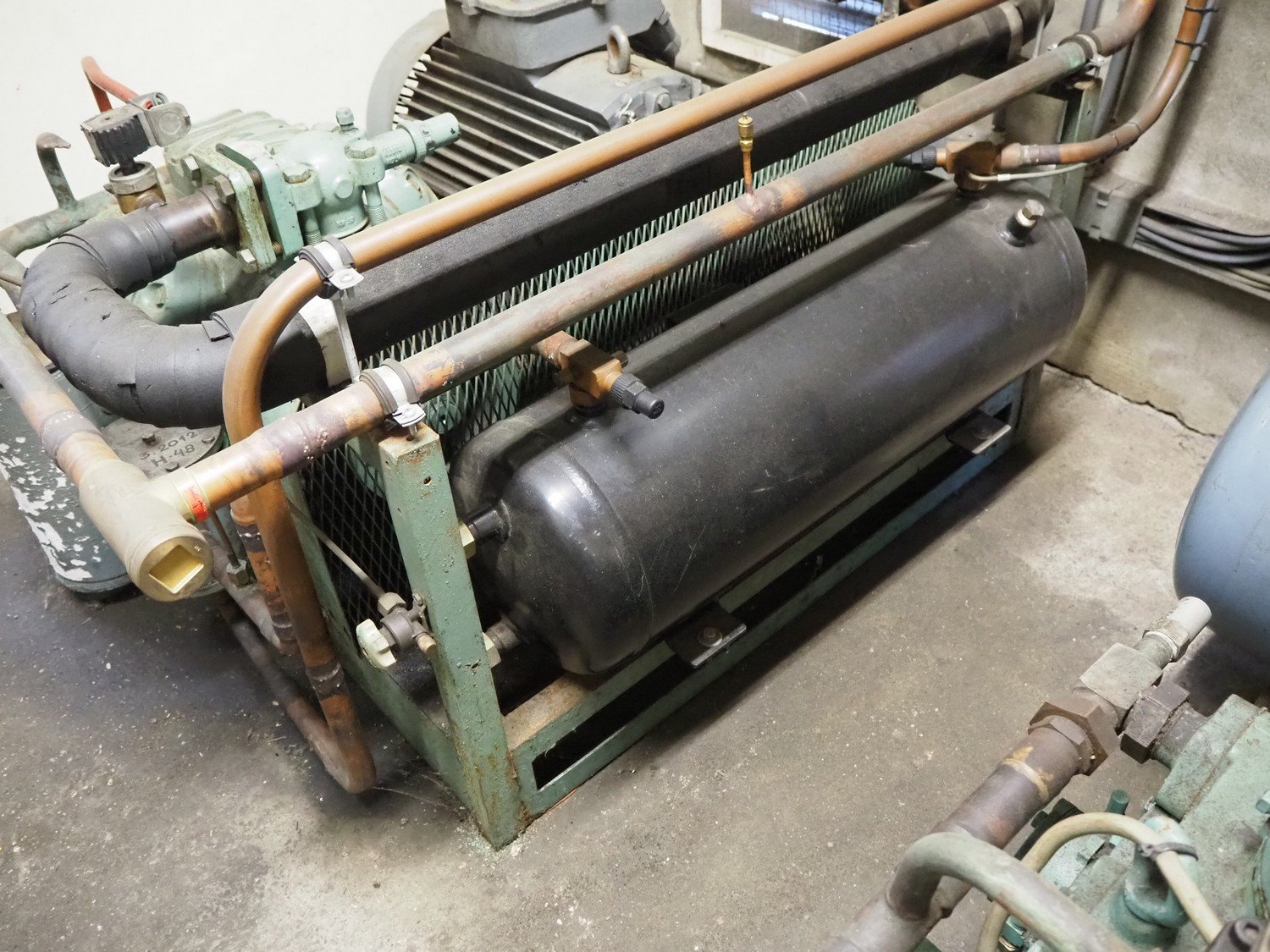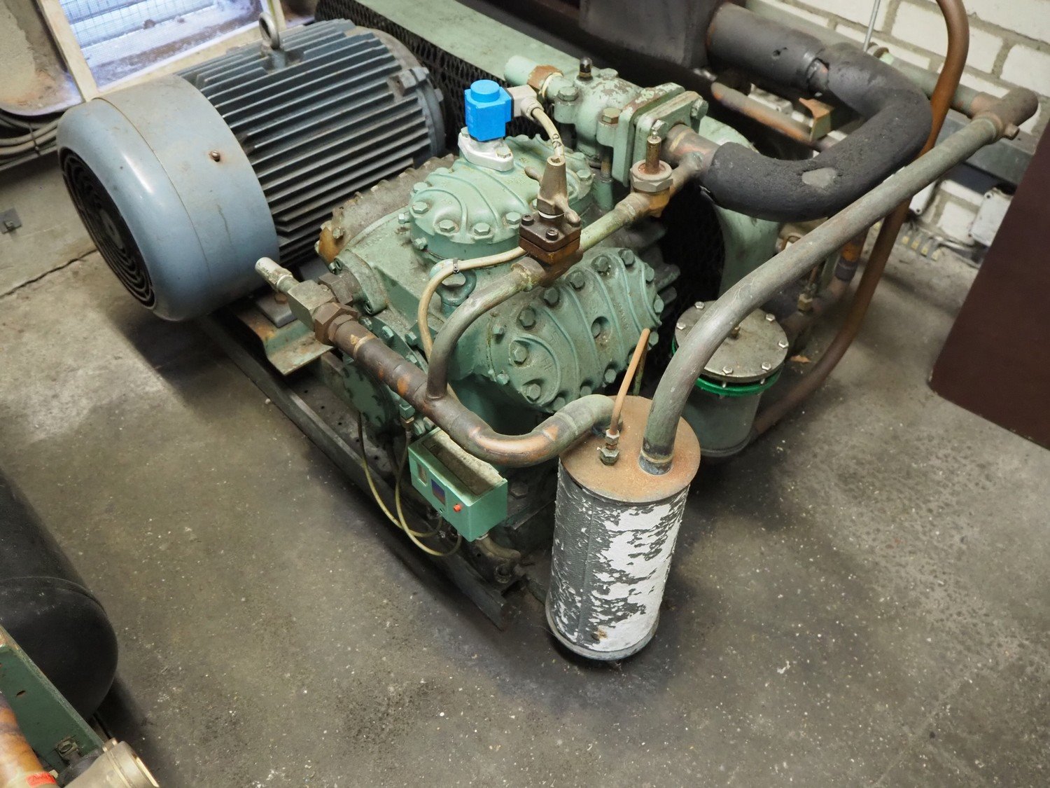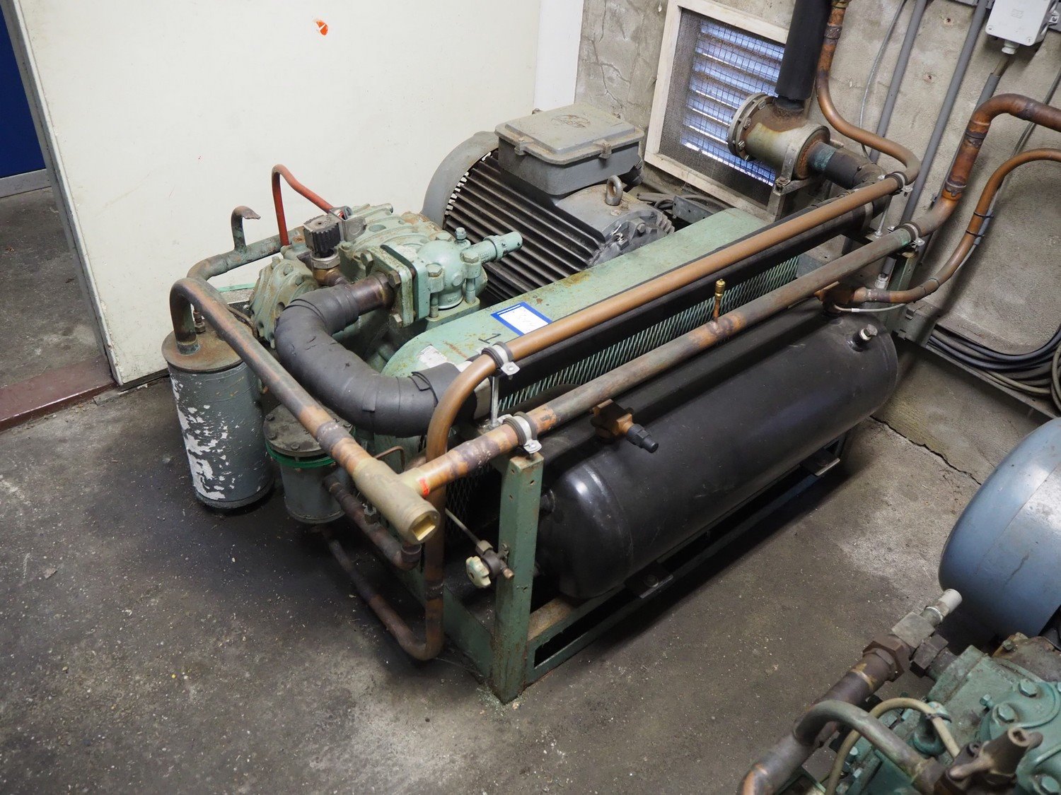 2 Bitzer Kühlmaschinenbau GmbH cooling compressors, type: 6H2, 400 V, 42.2 A, 22 kW, refrigerant: R507, dimensions: 900 mm x 1400 mm x 700 mm, including switch cabinet, dimensions: 1000 mm x 320 mm x 1200 mm.