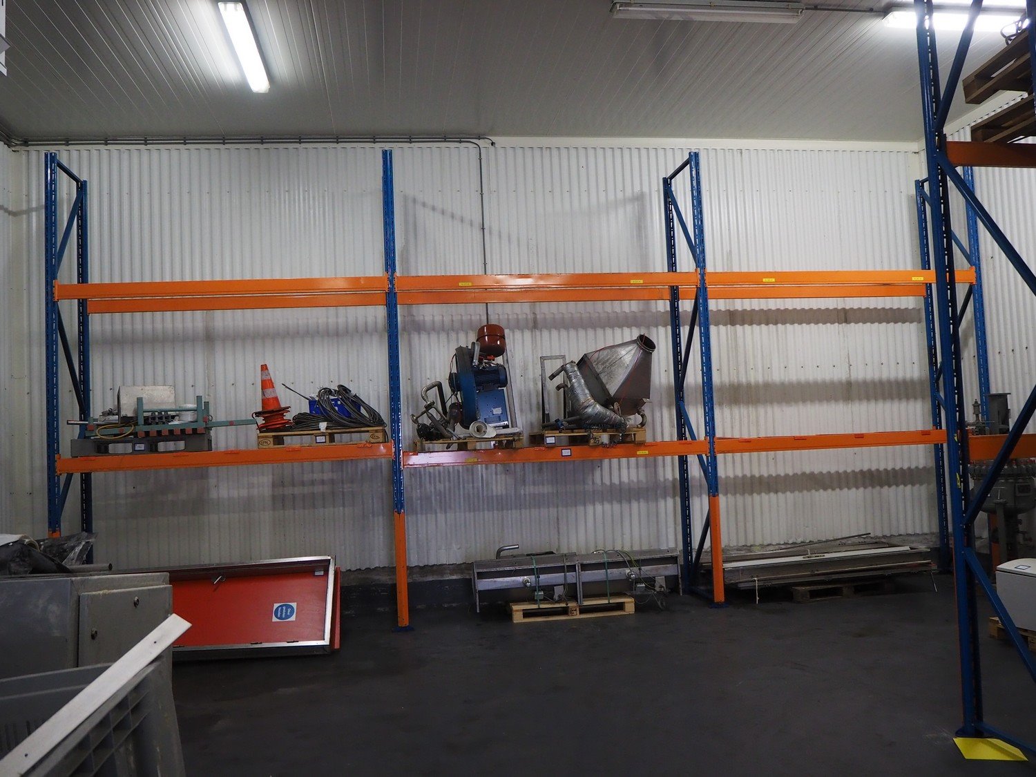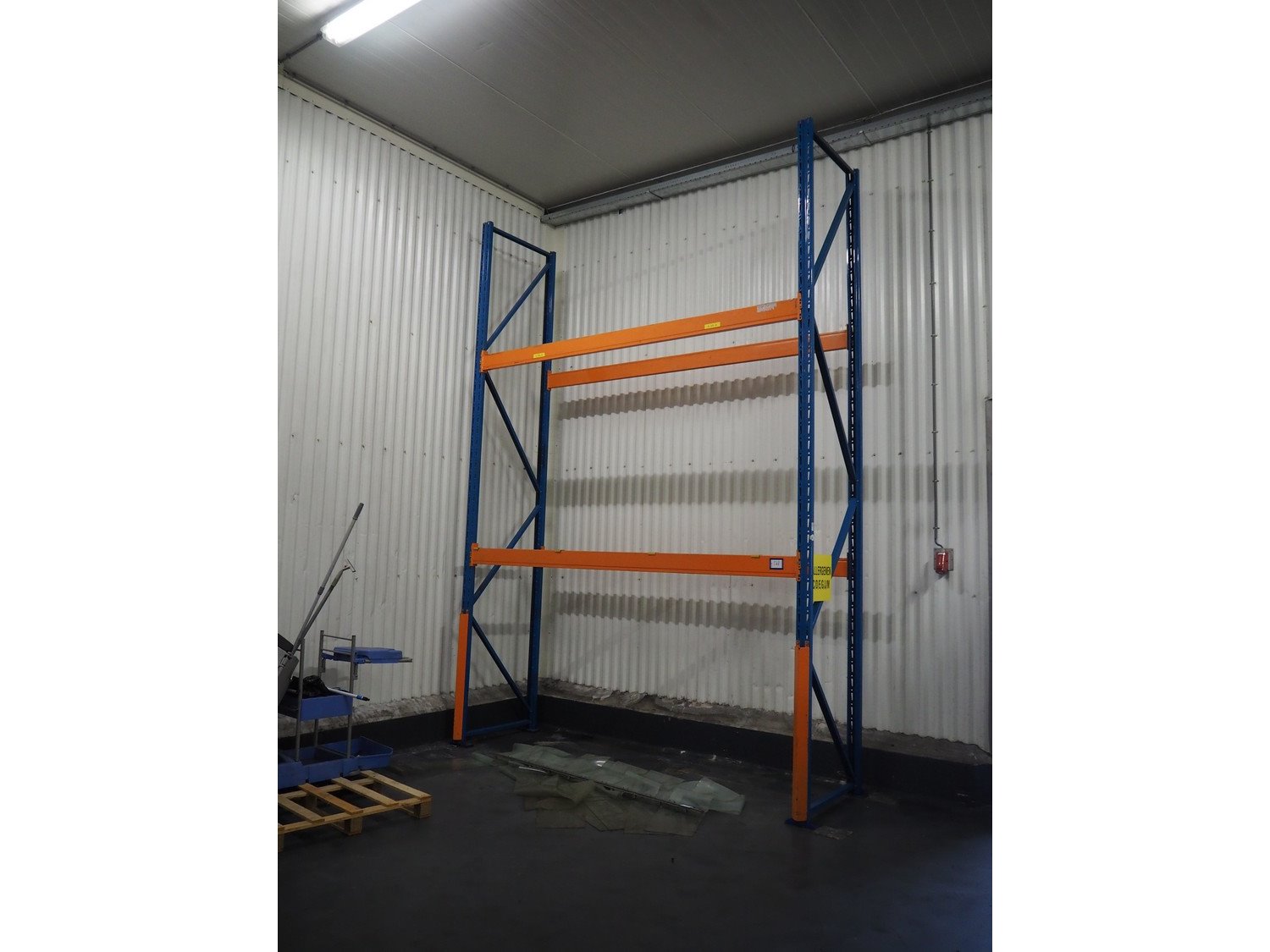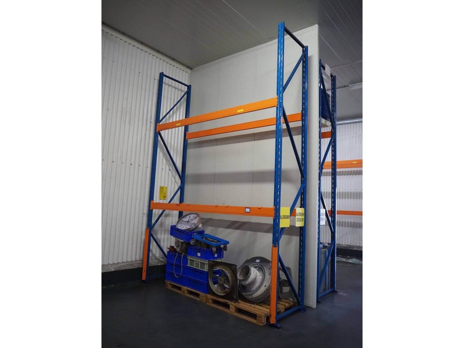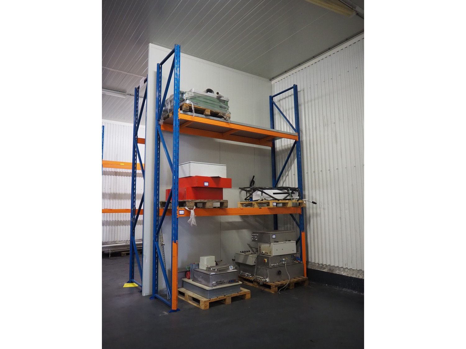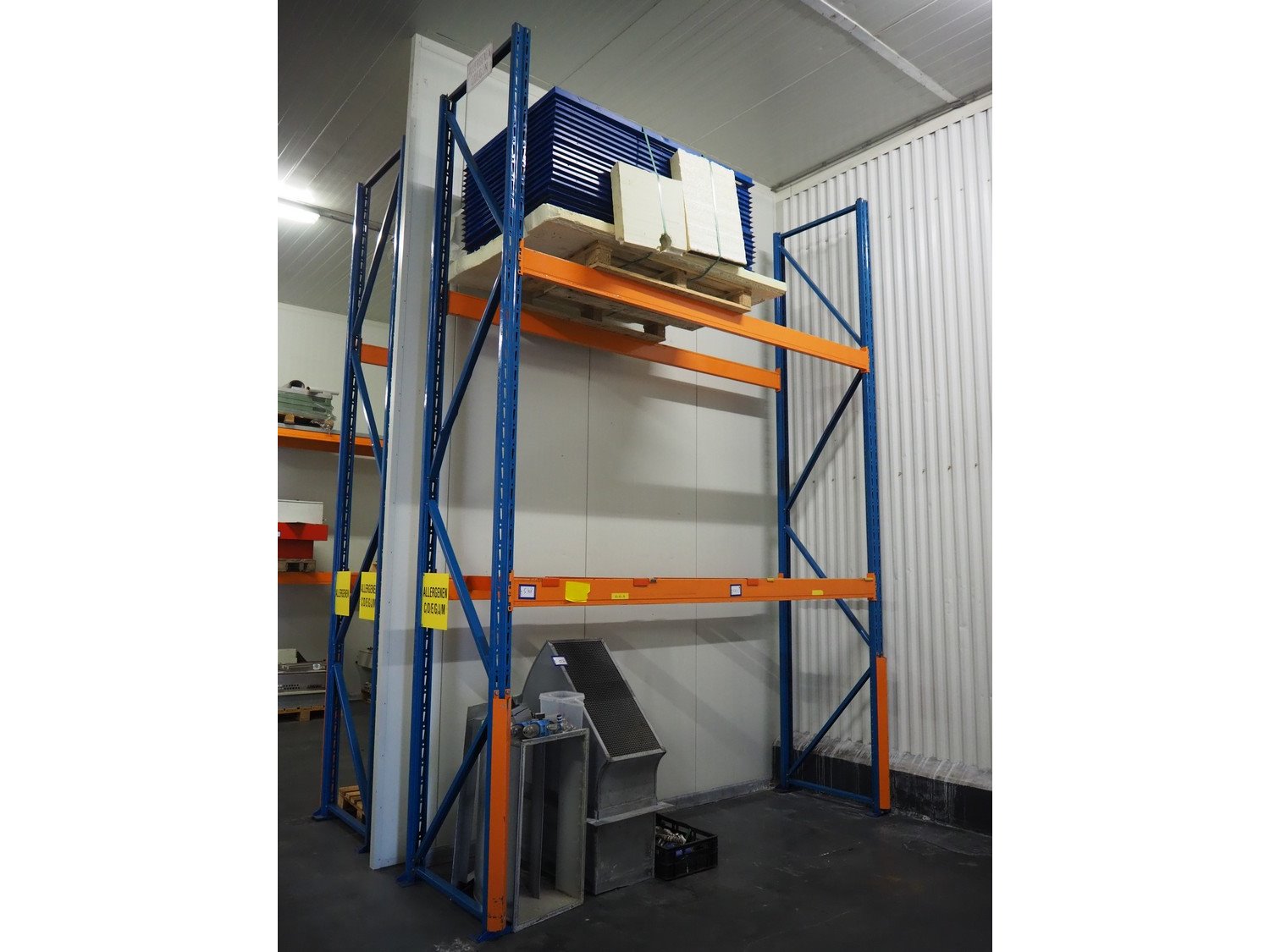 Steel pallet racks, consisting of: 12 uprights, dimensions: 960 mm x 4500 mm, 28 beams, length: 3300 mm.