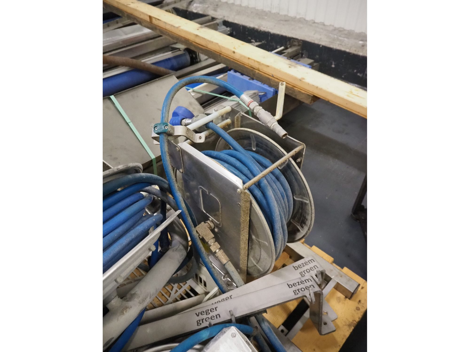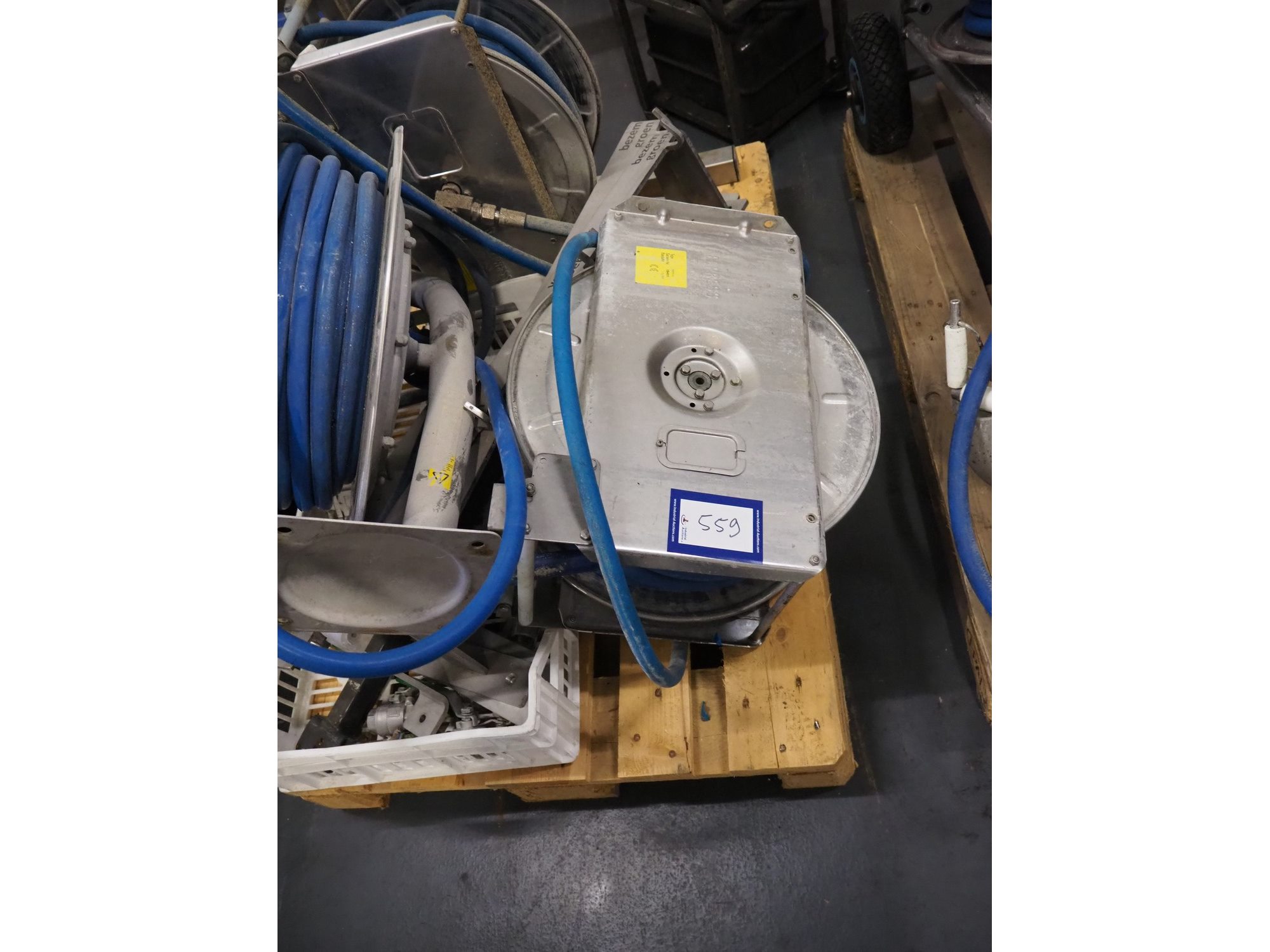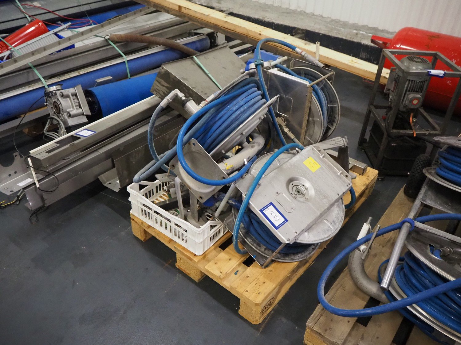 Pallet with 3 Nederman s/s hose reels with hose, dimensions pallet: 1200 mm x 800 mm x 800 mm.