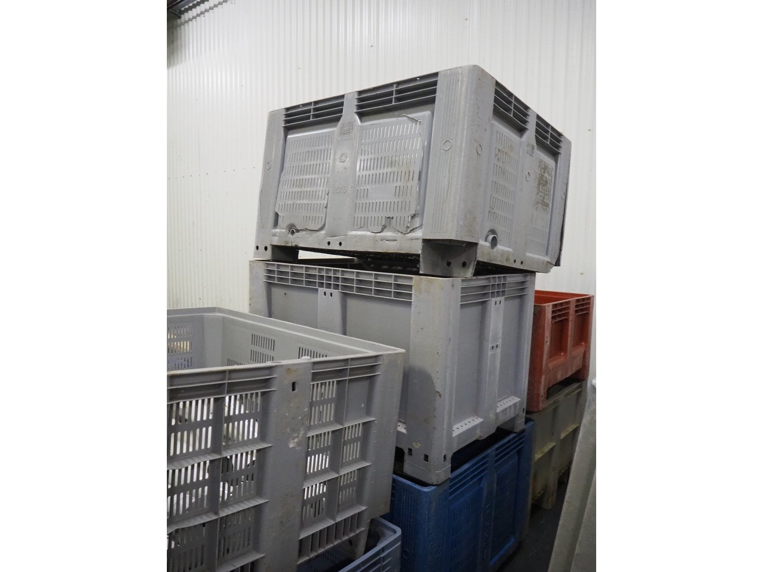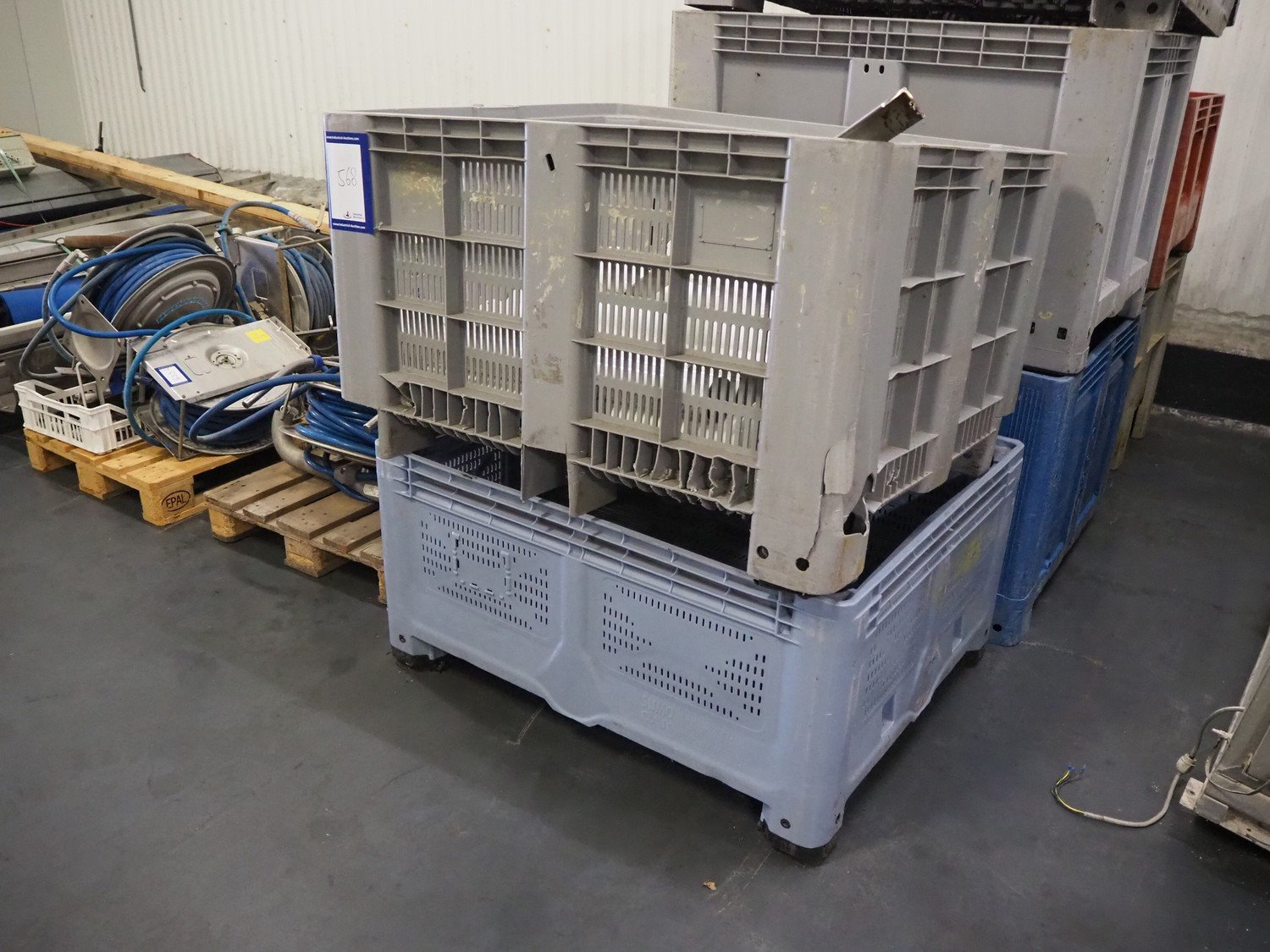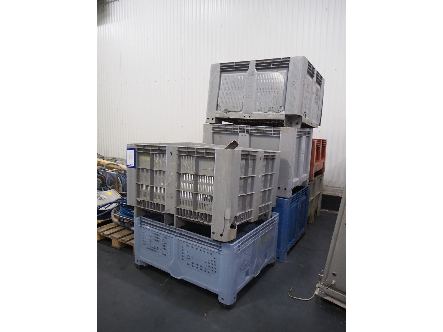 6 plastic pallet boxes, dimensions: (7x) 1200 mm x 1000 mm x 720 mm.