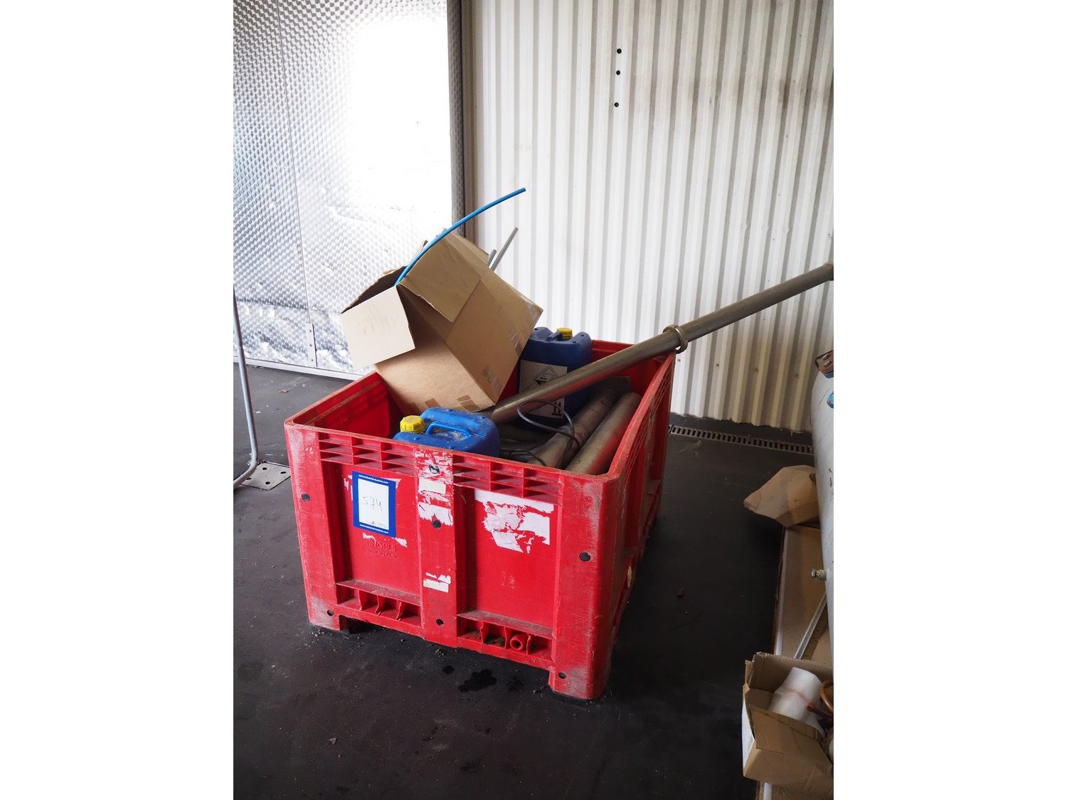 Plastic pallet box with various s/s protection poles, dimensions pallet box: 1200 mm x 1000 mm x 760 mm.