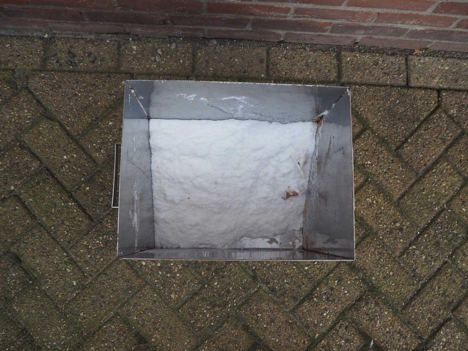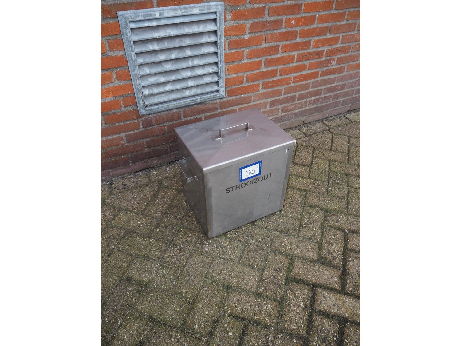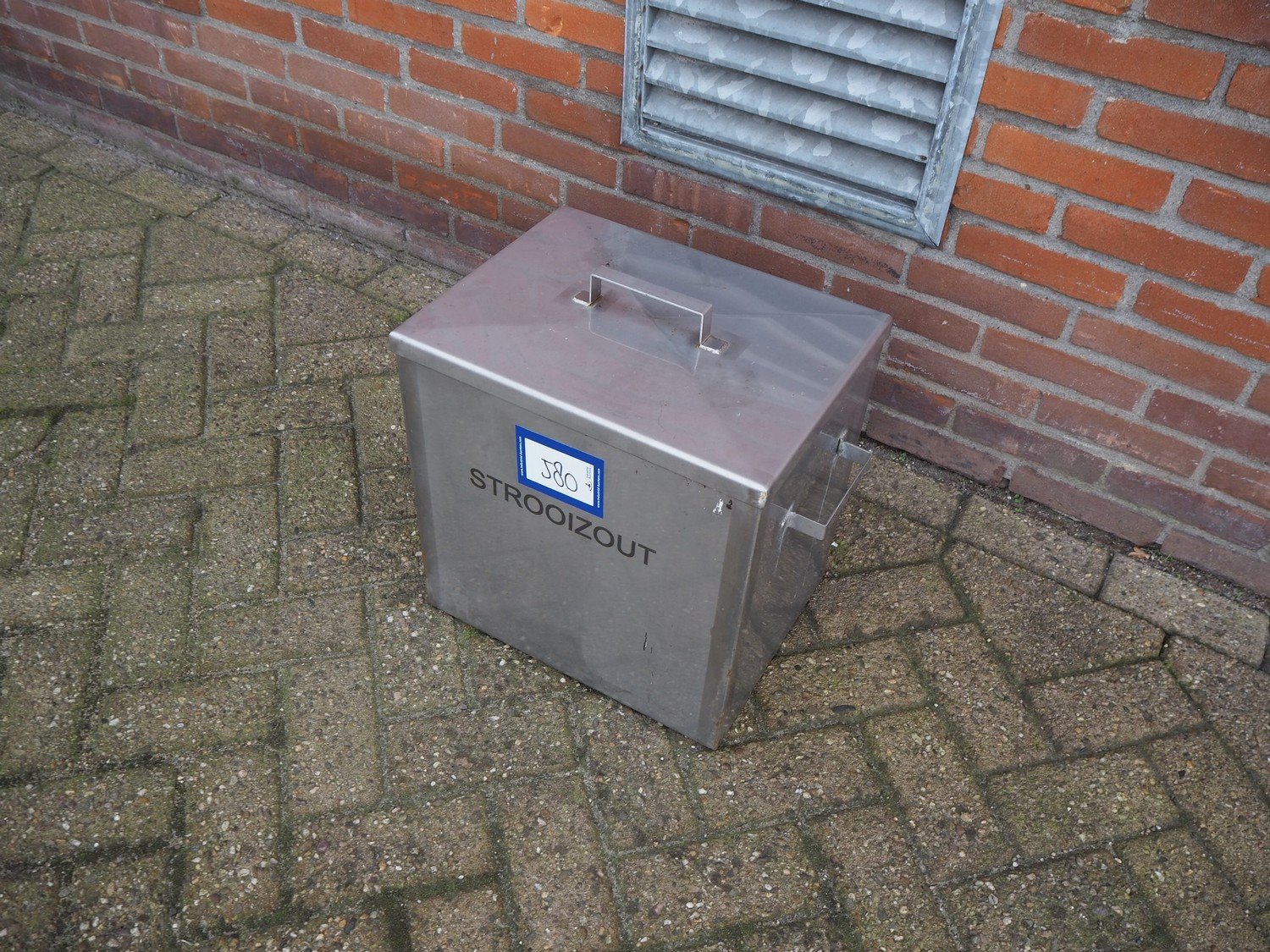 S/s tub with salt, dimensions: 480 mm x 320 mm x 410 mm.