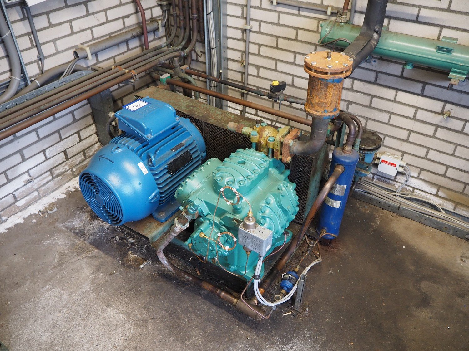2 Bitzer Kühlmaschinenbau GmbH cooling compressors, type: 6GE-34Y-40P, serial number: 1693010962, 42.2 A, 22 kW, 65.5 A, 127/153 m³/h, refrigerant: R449A, dimensions: 1270 mm x 850 mm x 1120 mm and 1080 mm x 1000 mm x 960 mm, including switch cabinet, dimensions: 1000 mm x 320 mm x 1200 mm.