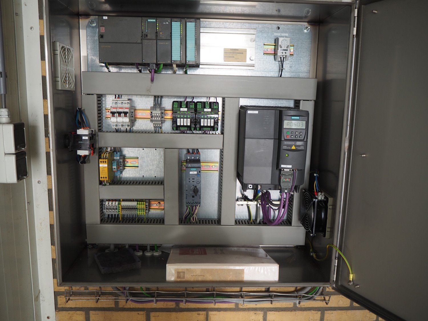 Waterkracht Hydrojet high pressure pump unit, dimensions: 750 mm x 1300 mm x 1500 mm, including control panel, dimensions: 370 mm x 210 mm x 370 mm and switch cabinet, dimensions: 750 mm x 300 mm x 750 mm.