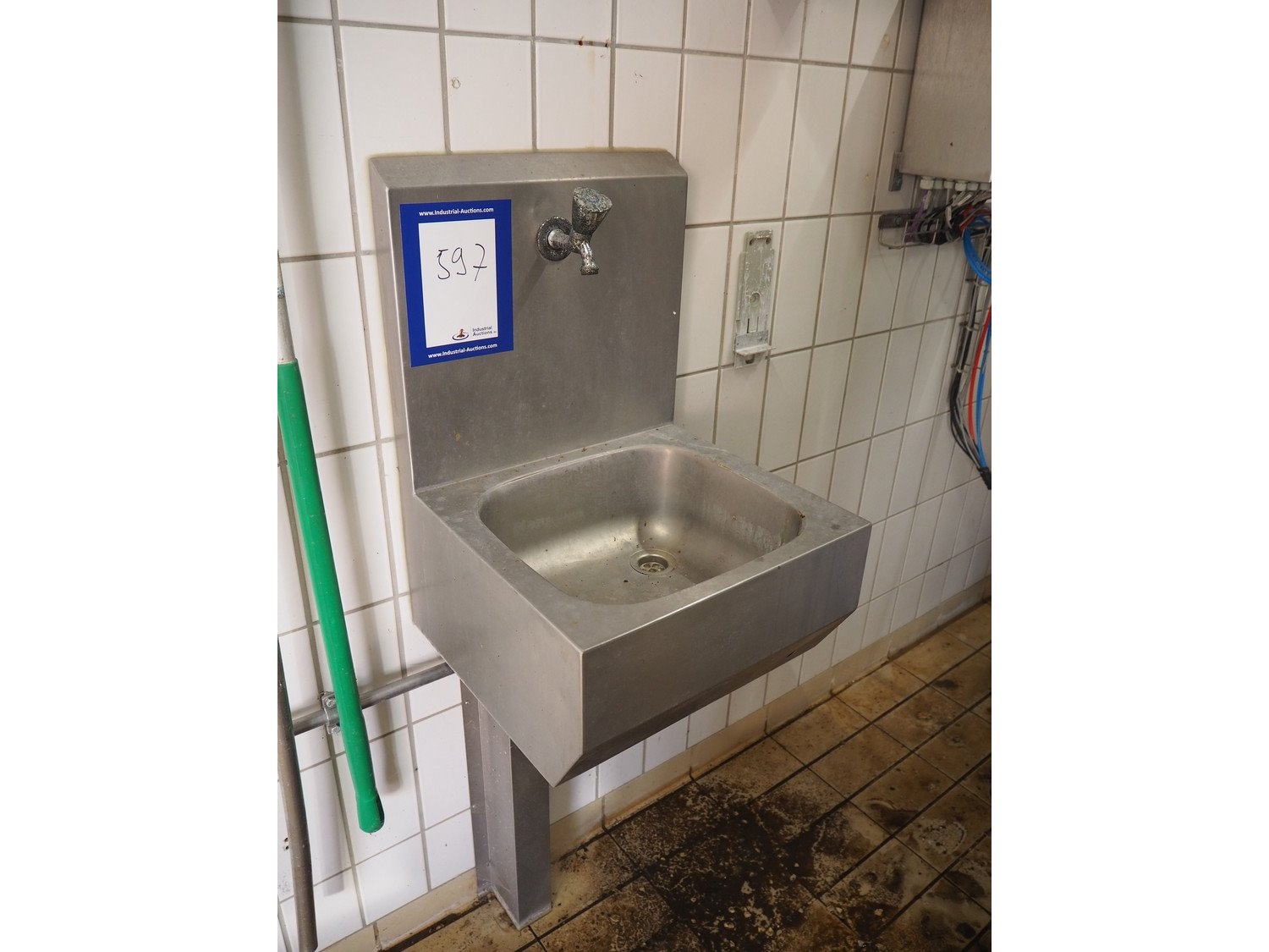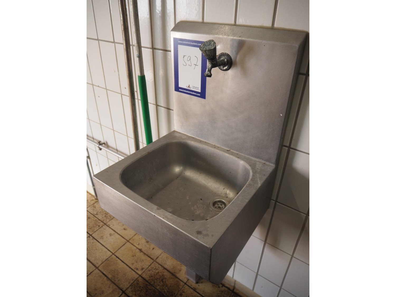 S/s sink with faucet, dimensions: 450 mm x 450 mm x 650 mm.
