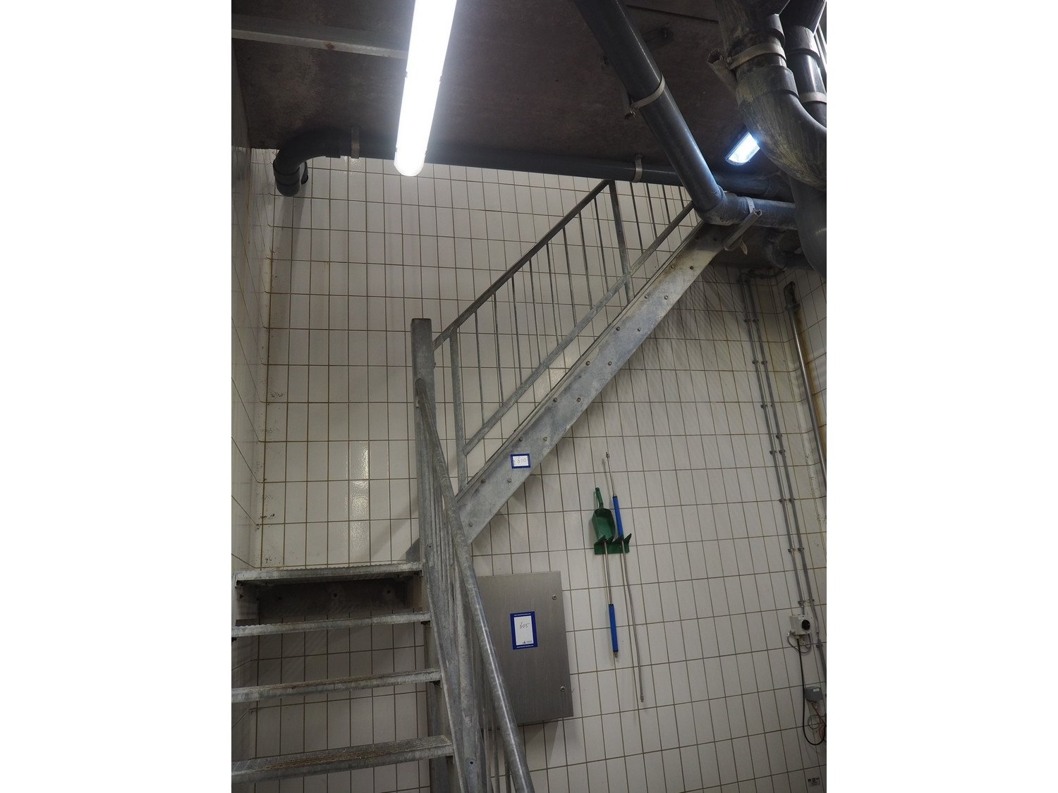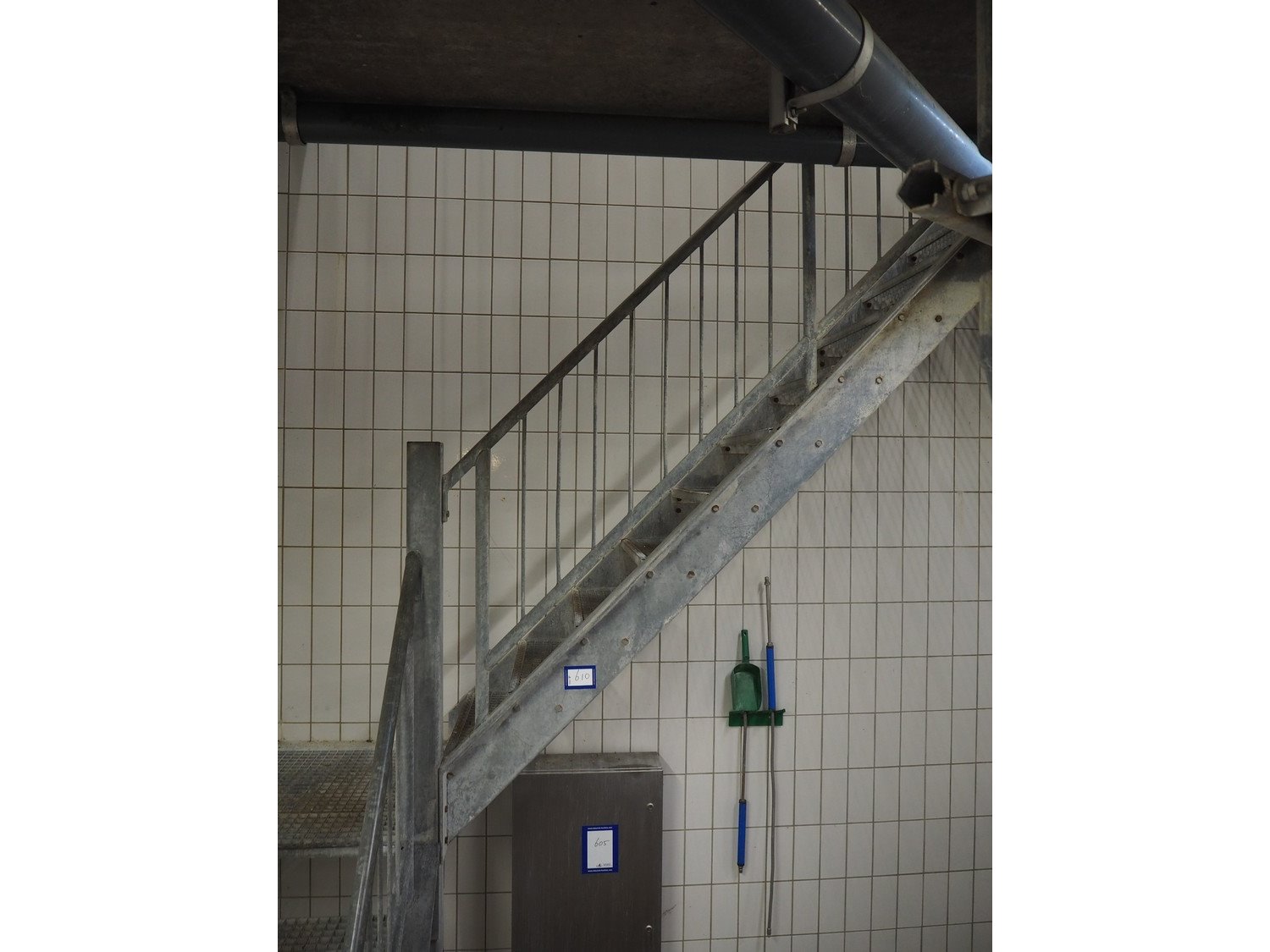 Steel stairs, height floor: 4500 mm, total dimensions: 3300 mm x 2700 mm x 4500 mm.