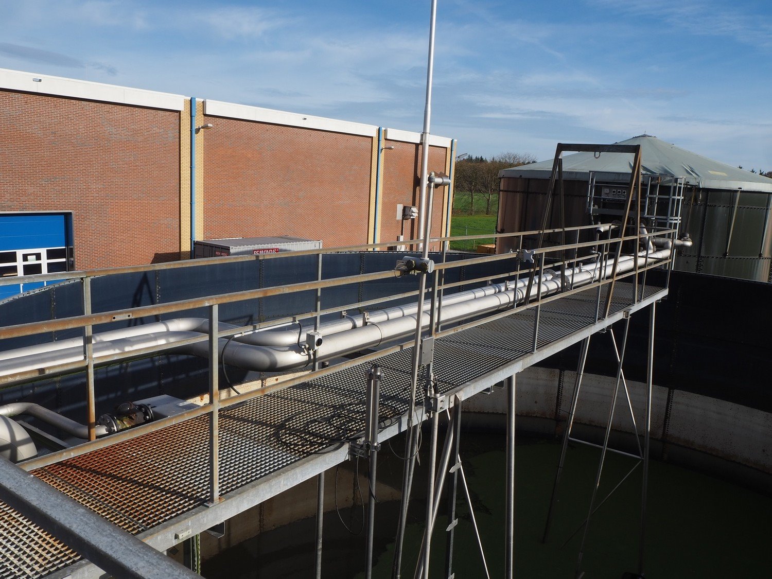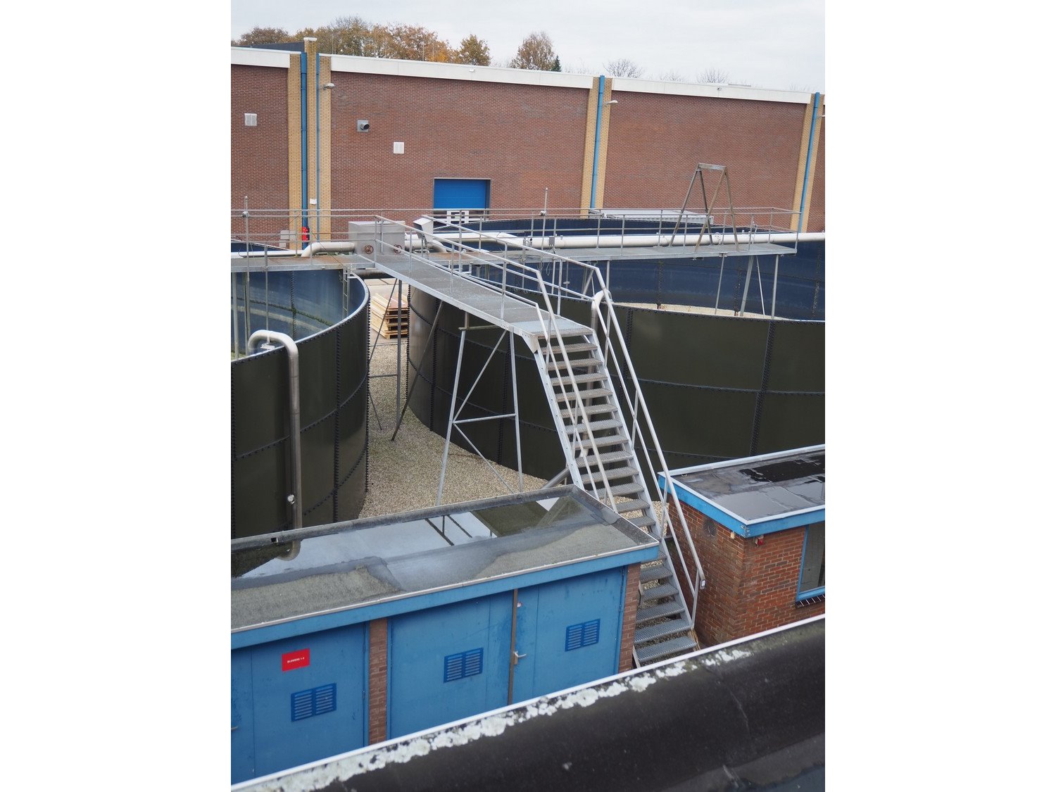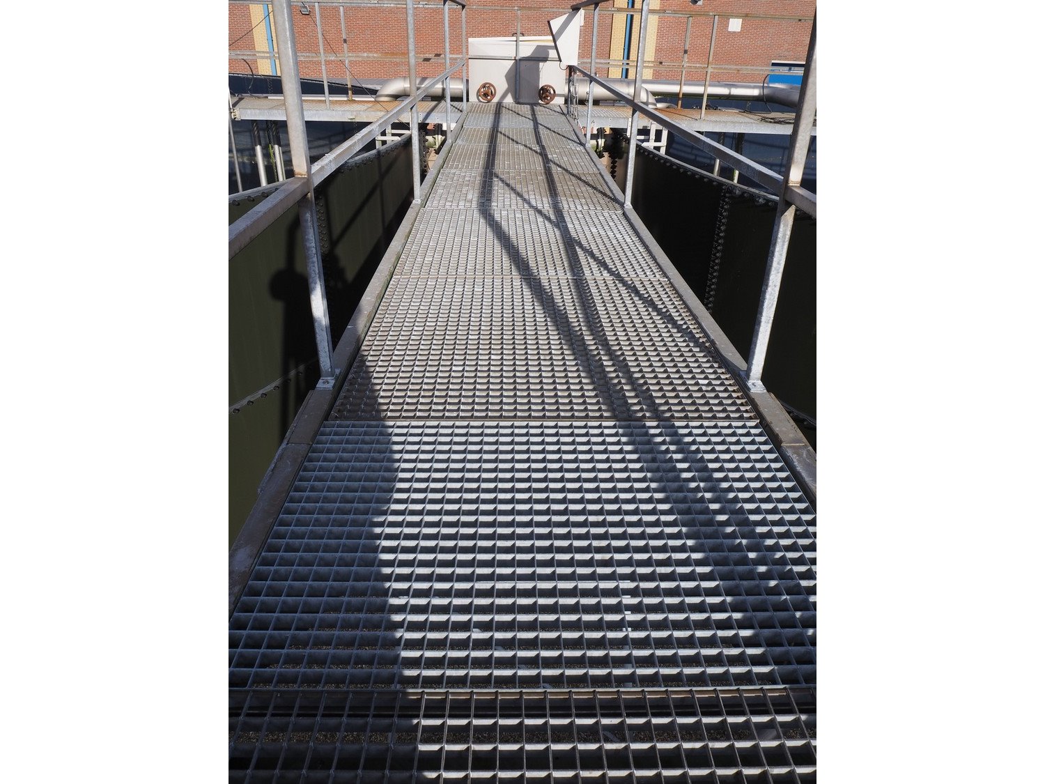 Steel platform with stairs, working height: 4050 mm, total dimensions: 21000 mm x 17000 mm x 4150 mm.