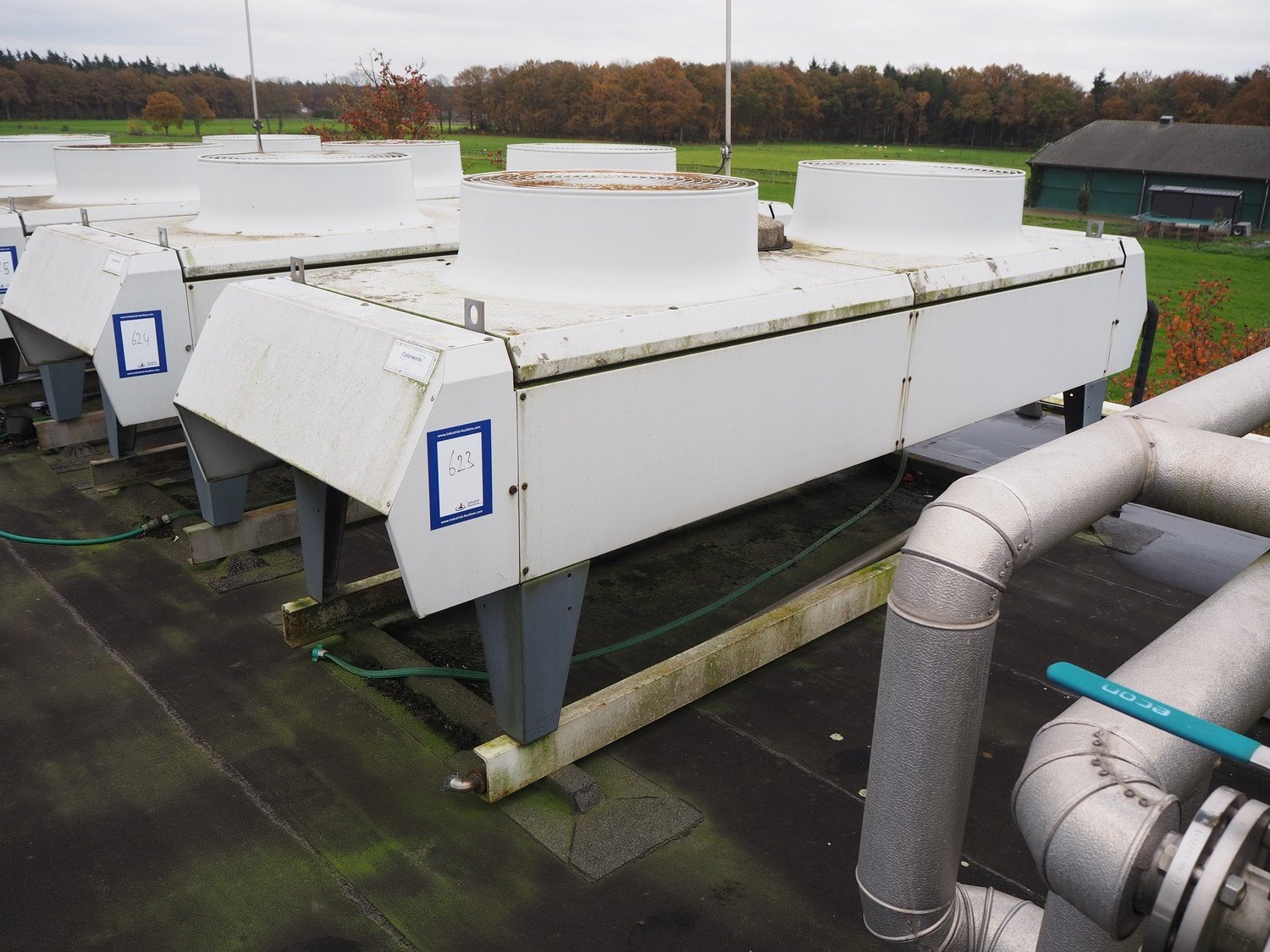 Helpman condenser, 2 fans, dimensions: 3700 mm x 1020 mm x 1400 mm. Situated on the roof. Can be picked-up at a later date as soon as the building will be demolished next year, a date for this is yet unknown.