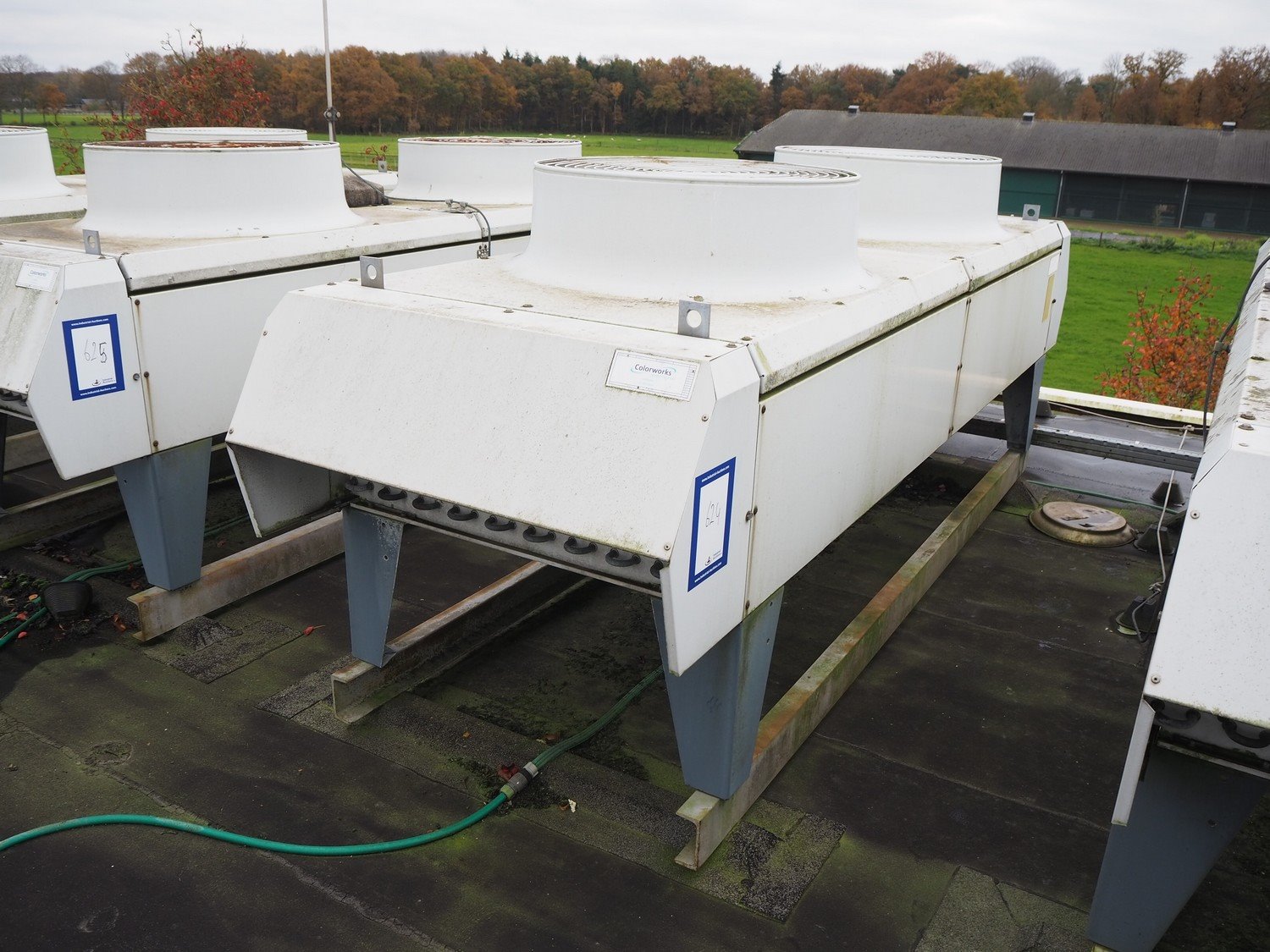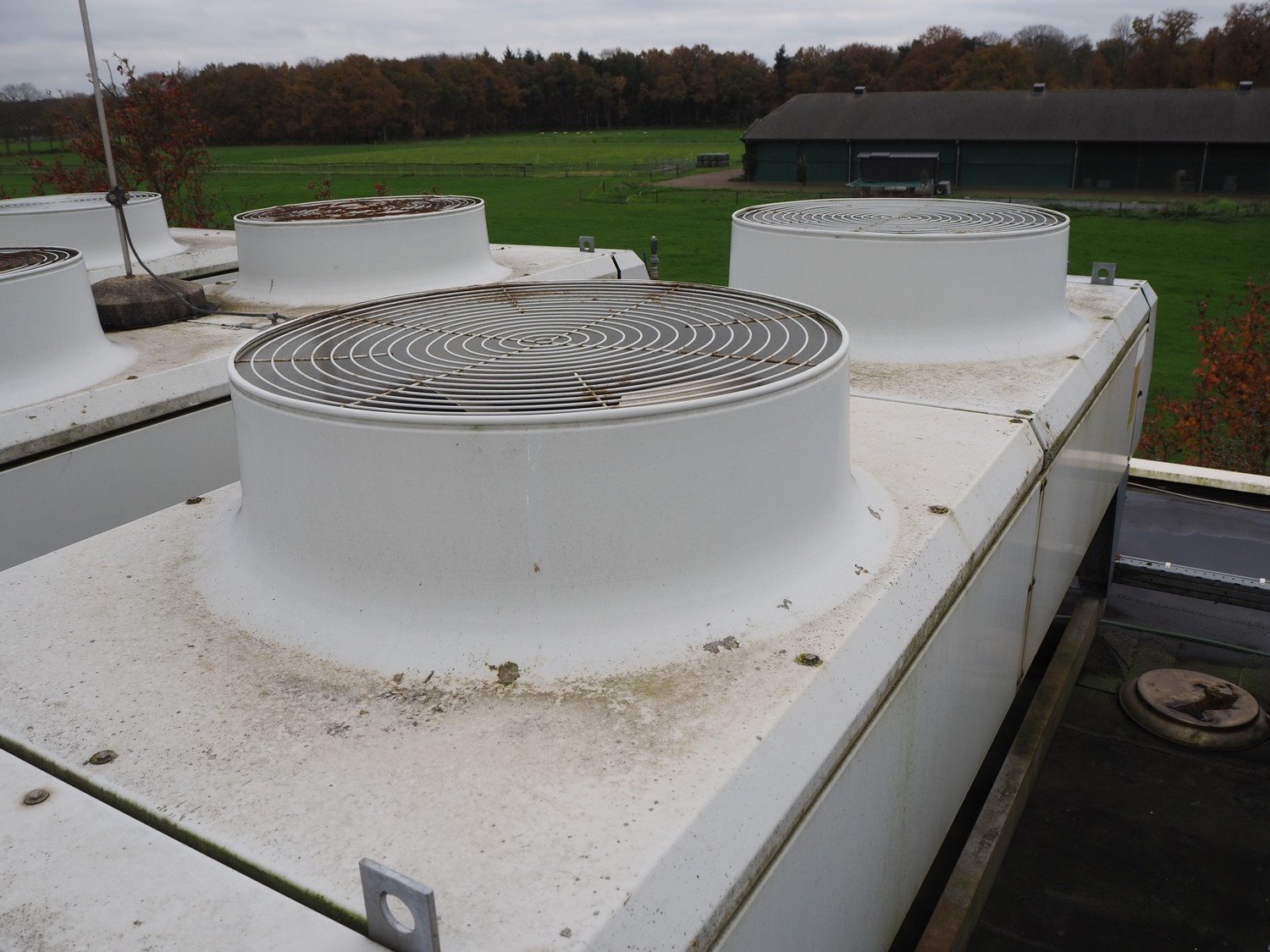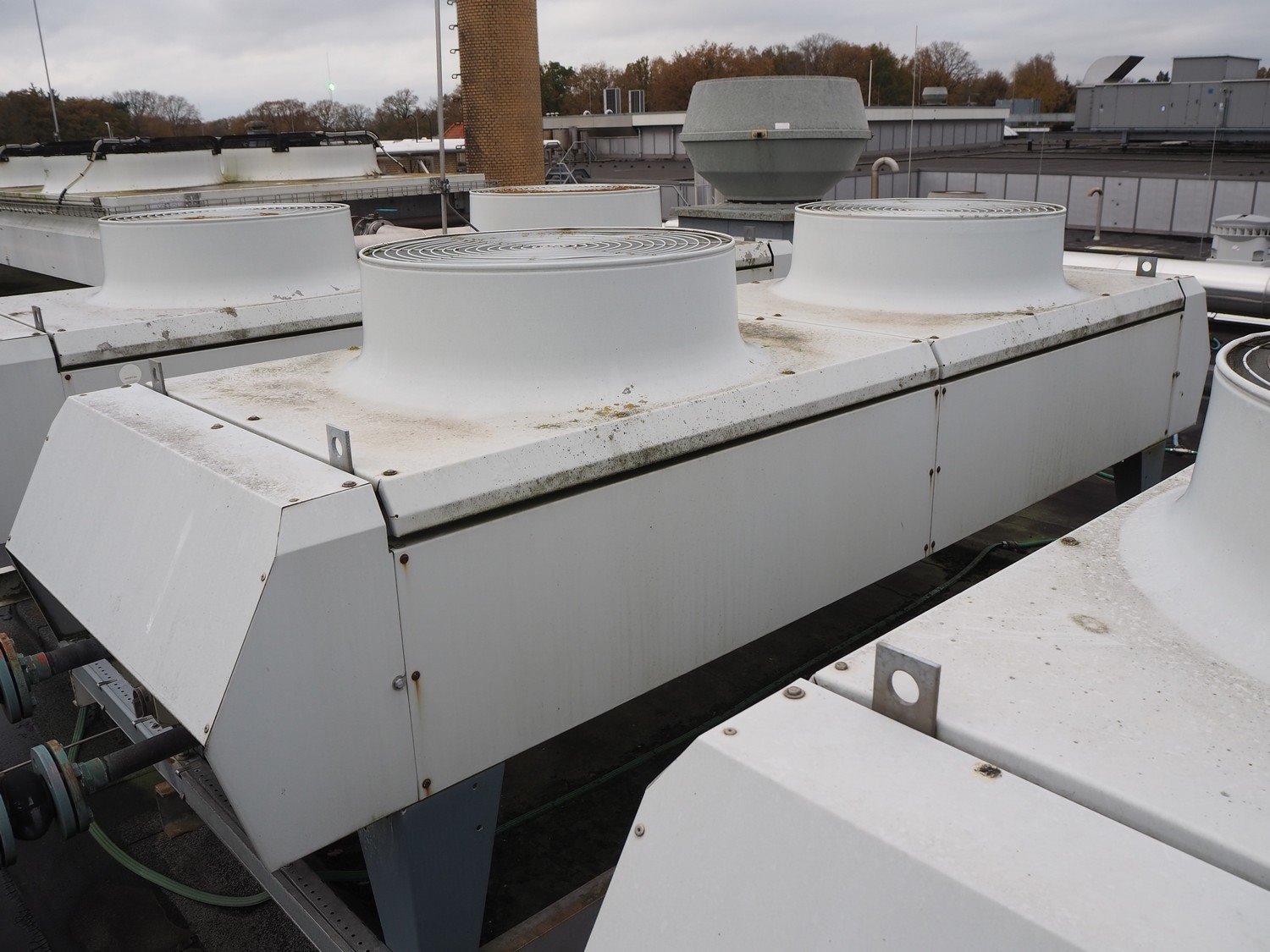 Helpman condenser, 2 fans, dimensions: 3700 mm x 1020 mm x 1400 mm. Situated on the roof. Can be picked-up at a later date as soon as the building will be demolished next year, a date for this is yet unknown.