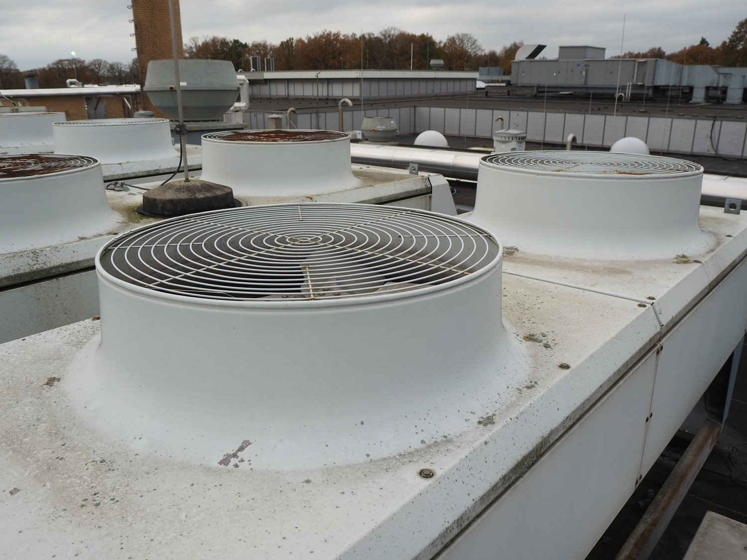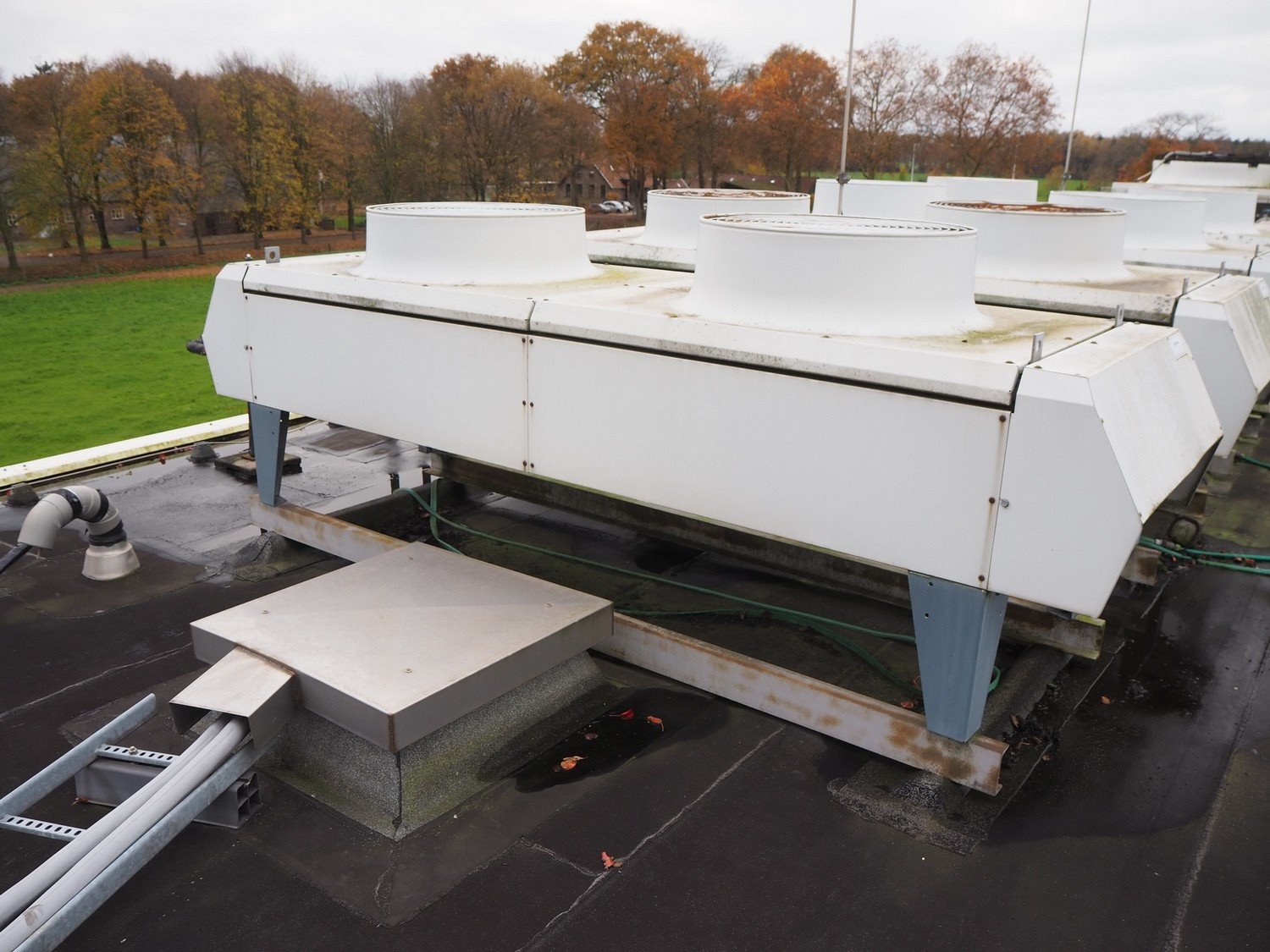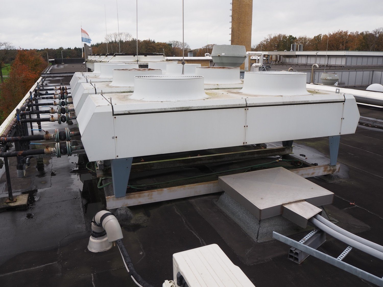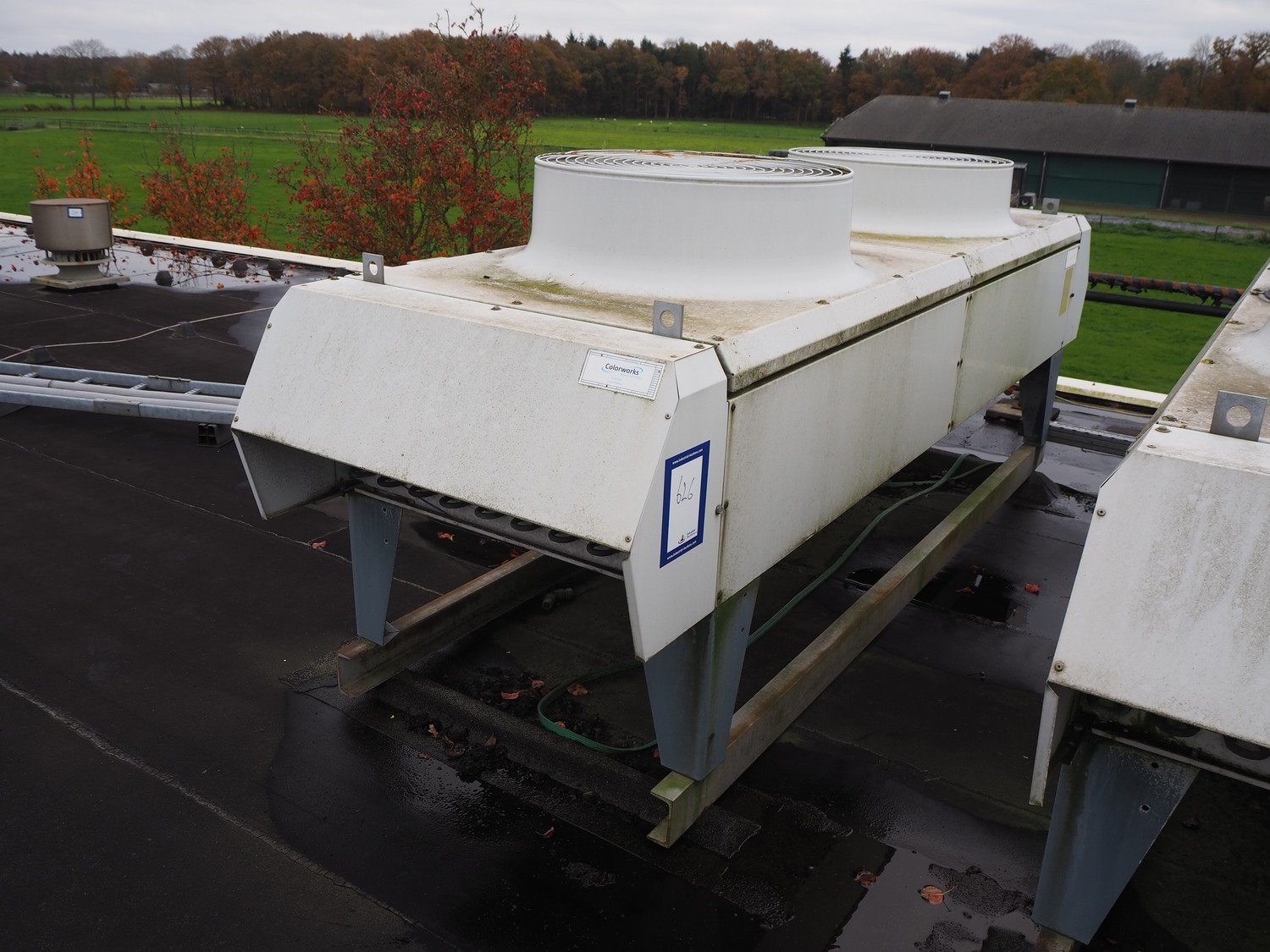 Helpman condenser, 2 fans, dimensions: 3700 mm x 1020 mm x 1400 mm. Situated on the roof. Can be picked-up at a later date as soon as the building will be demolished next year, a date for this is yet unknown.
