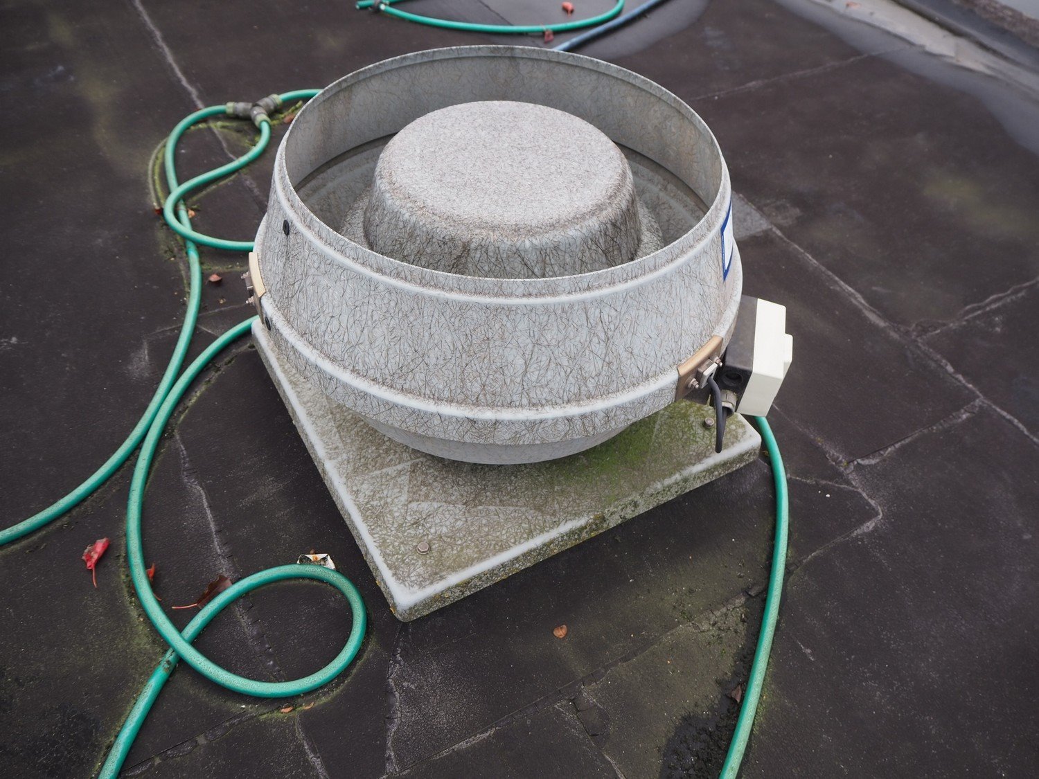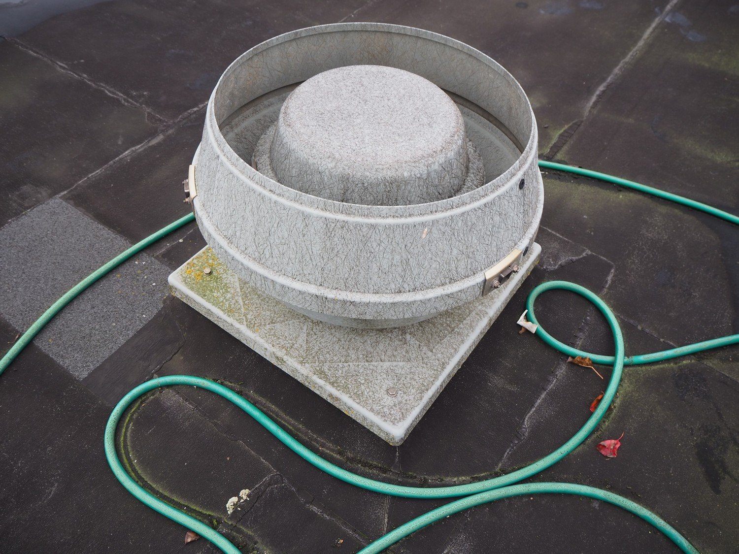 J.E. StorkAir rooftop fan, dimensions: 1100 mm x 1100 mm x 1600 mm.