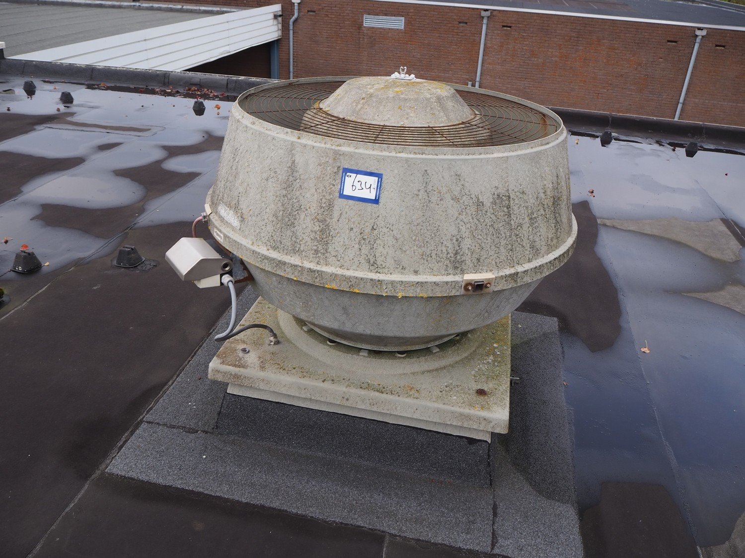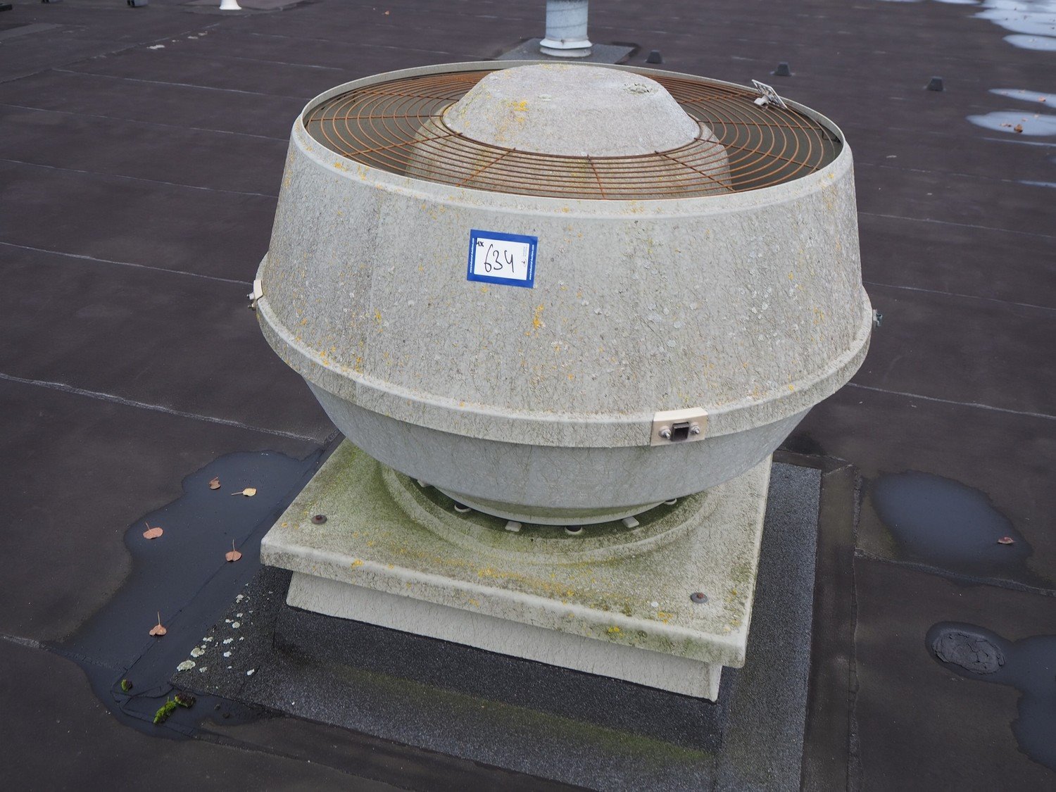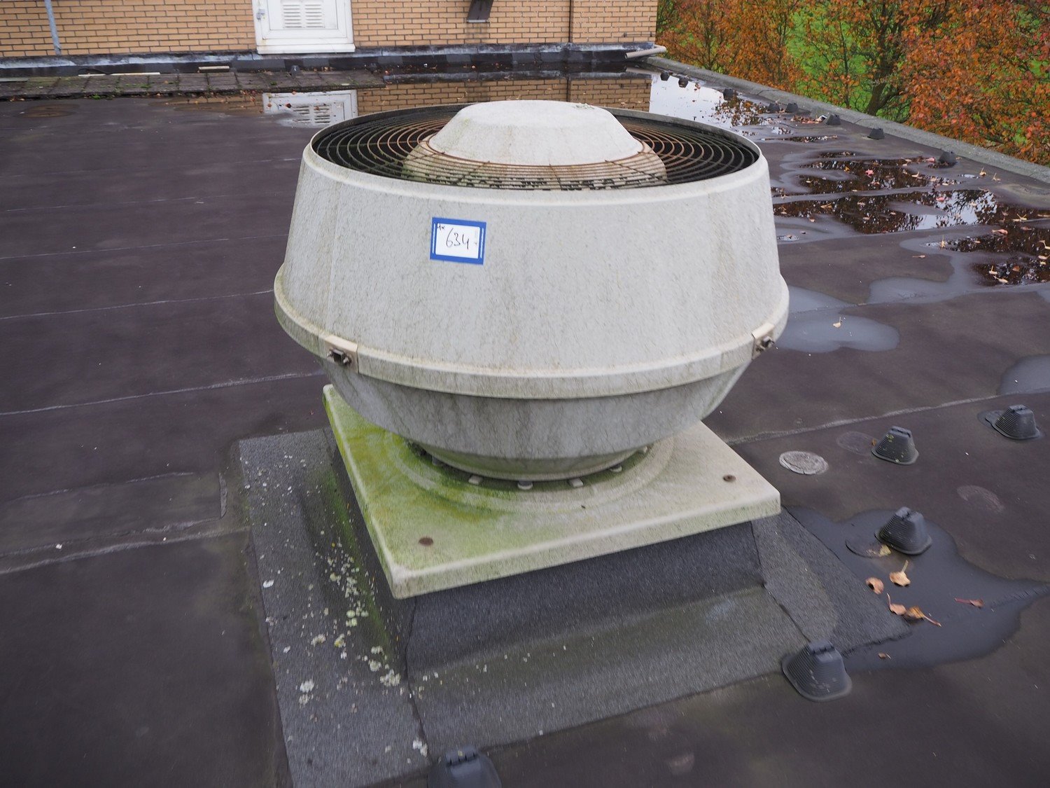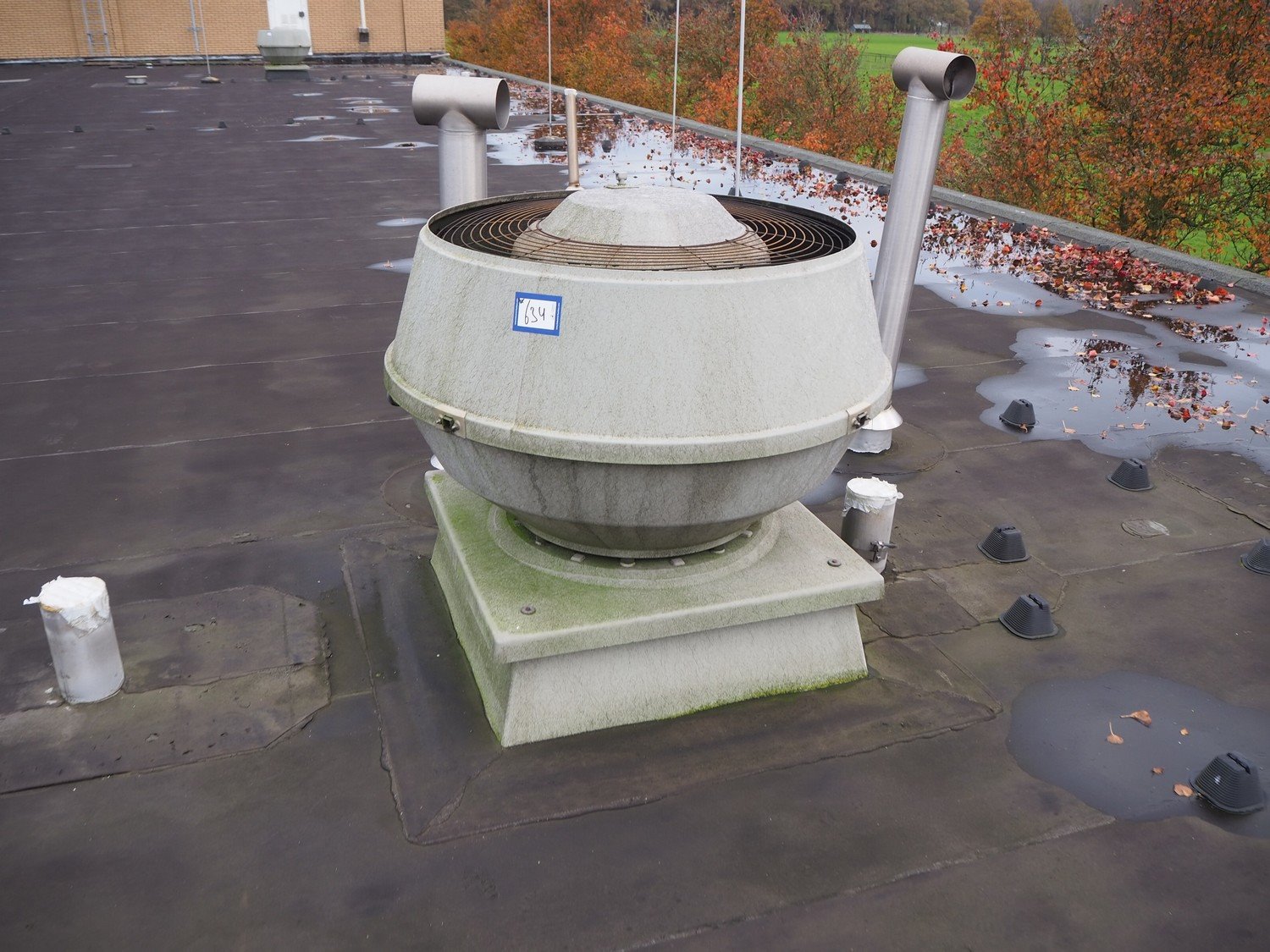 (4x) J.E. StorkAir rooftop fan, dimensions: (4x) 1200 mm x 1200 mm x 900 mm. Situated on the roof.