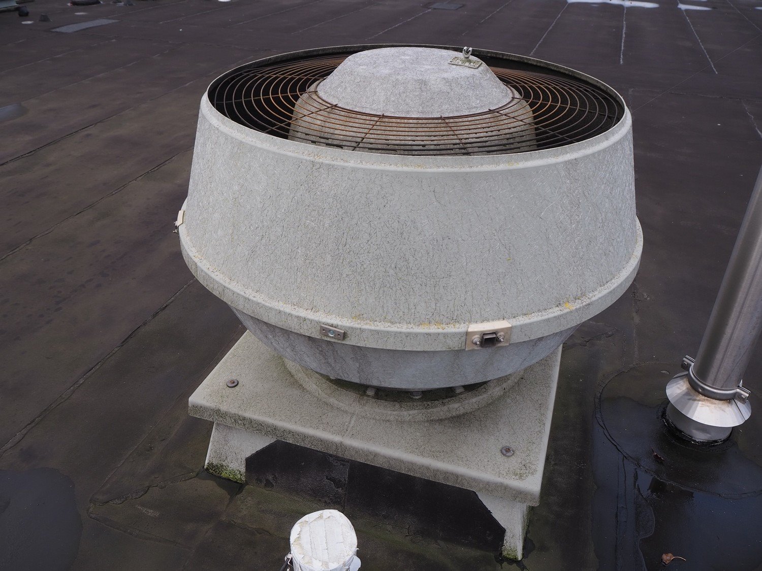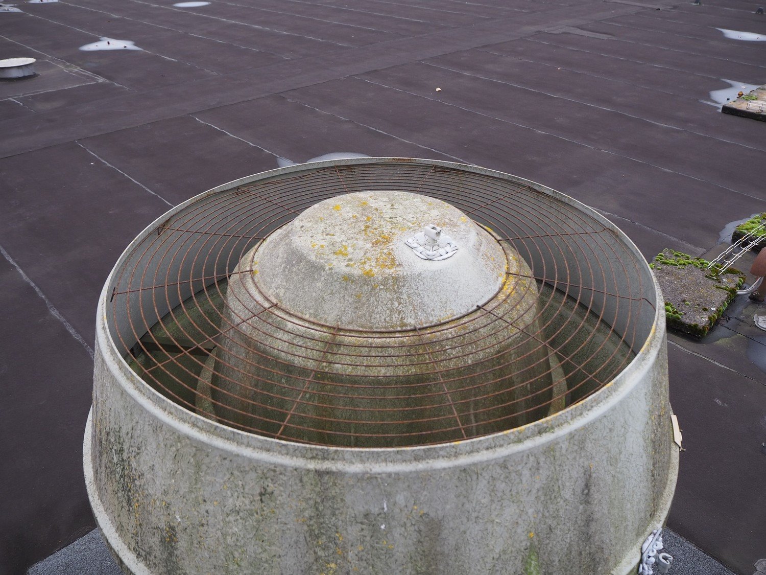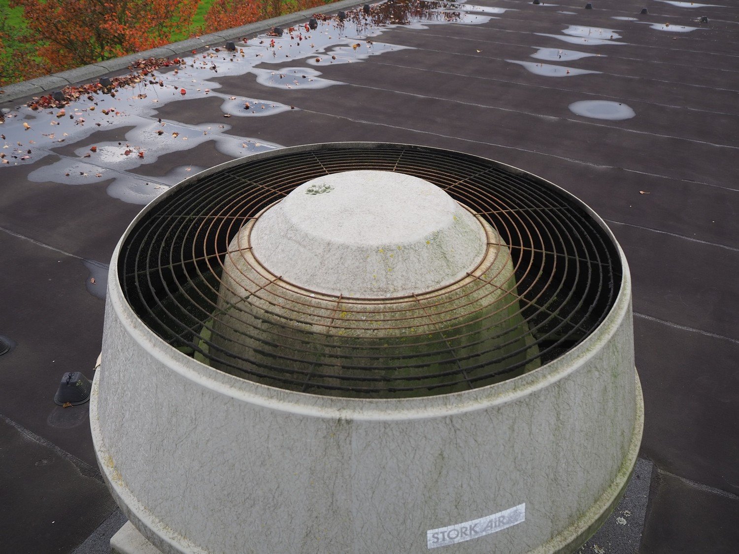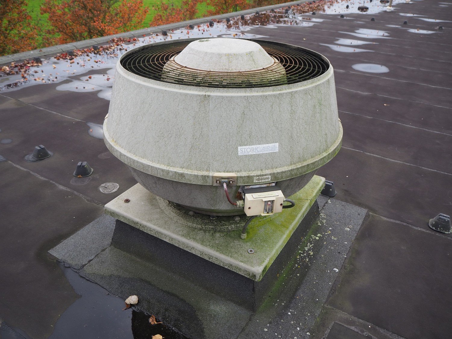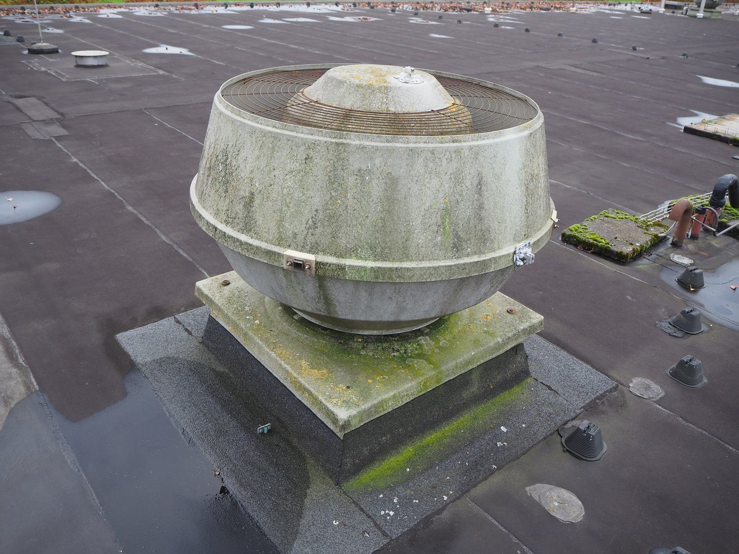(4x) J.E. StorkAir rooftop fan, dimensions: (4x) 1200 mm x 1200 mm x 900 mm. Situated on the roof.