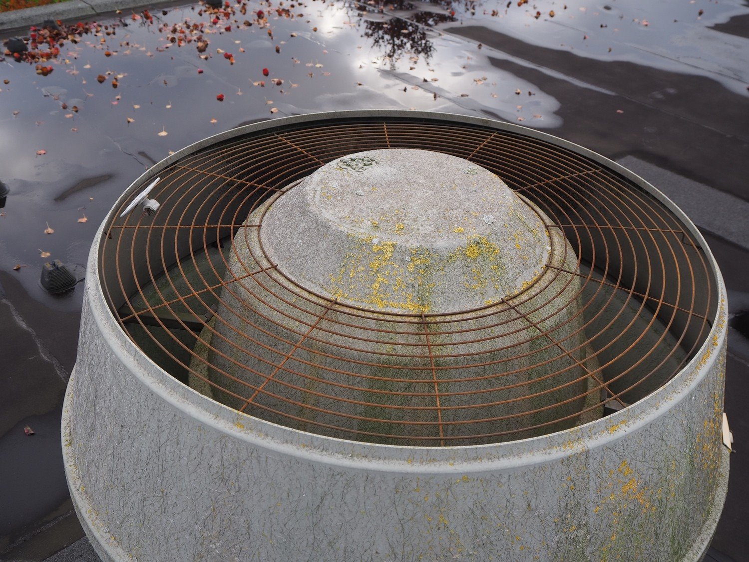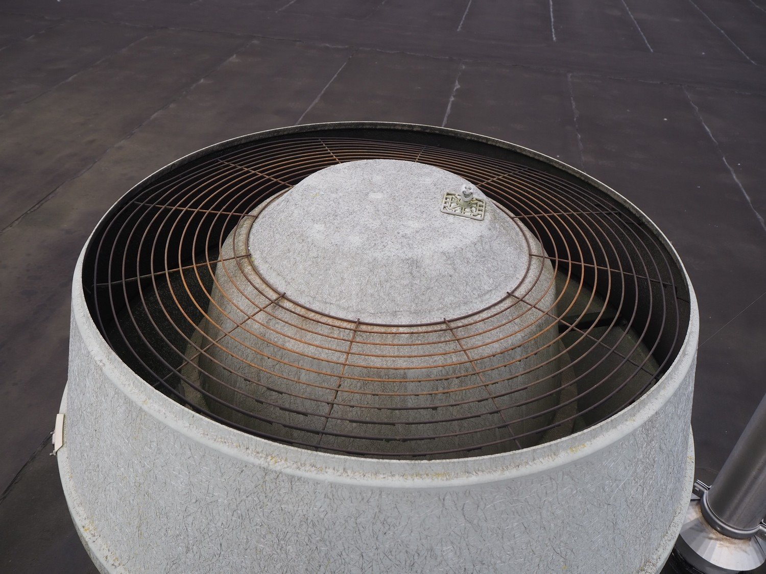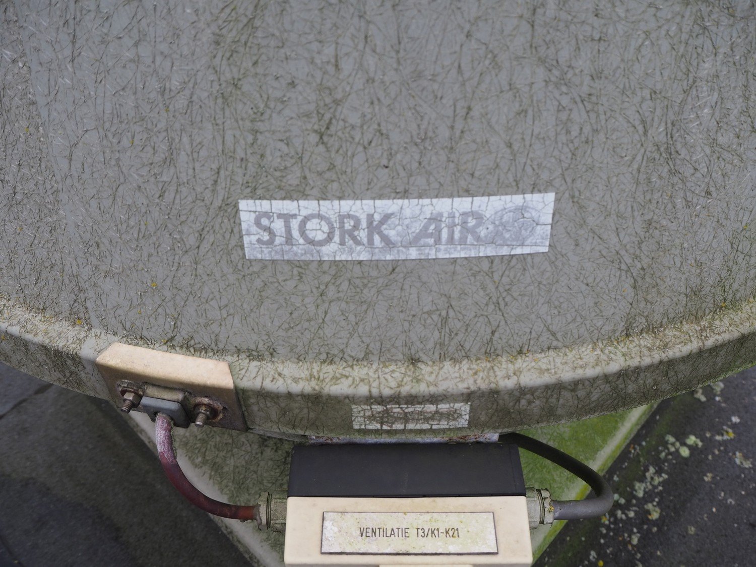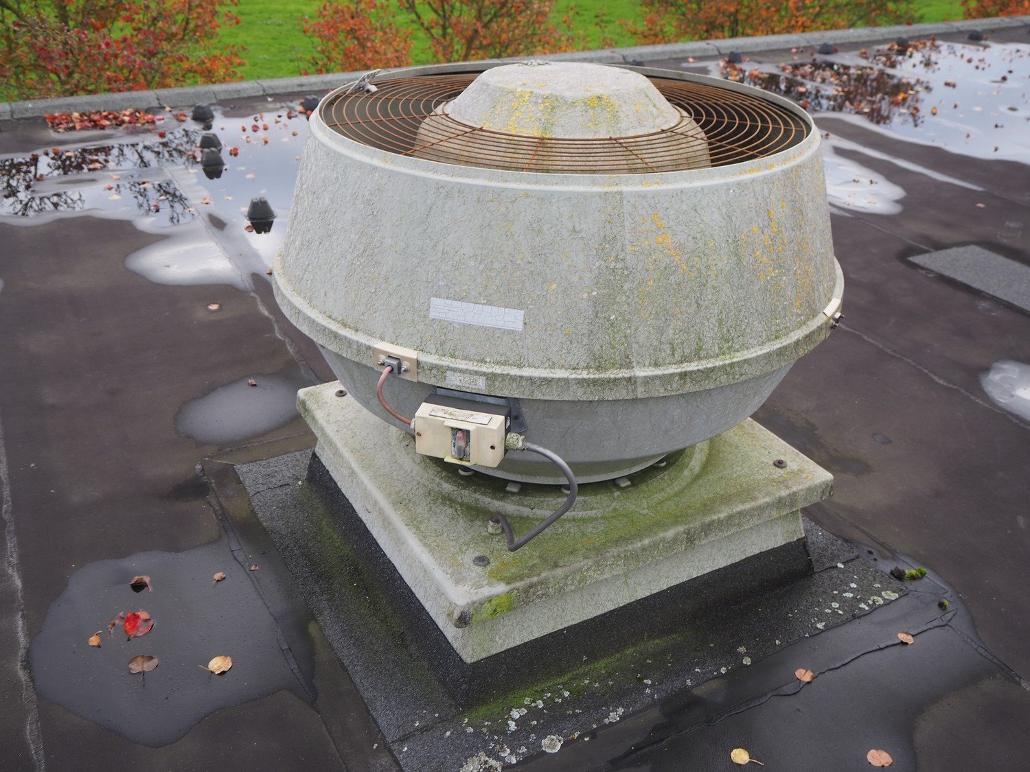 (4x) J.E. StorkAir rooftop fan, dimensions: (4x) 1200 mm x 1200 mm x 900 mm. Situated on the roof.