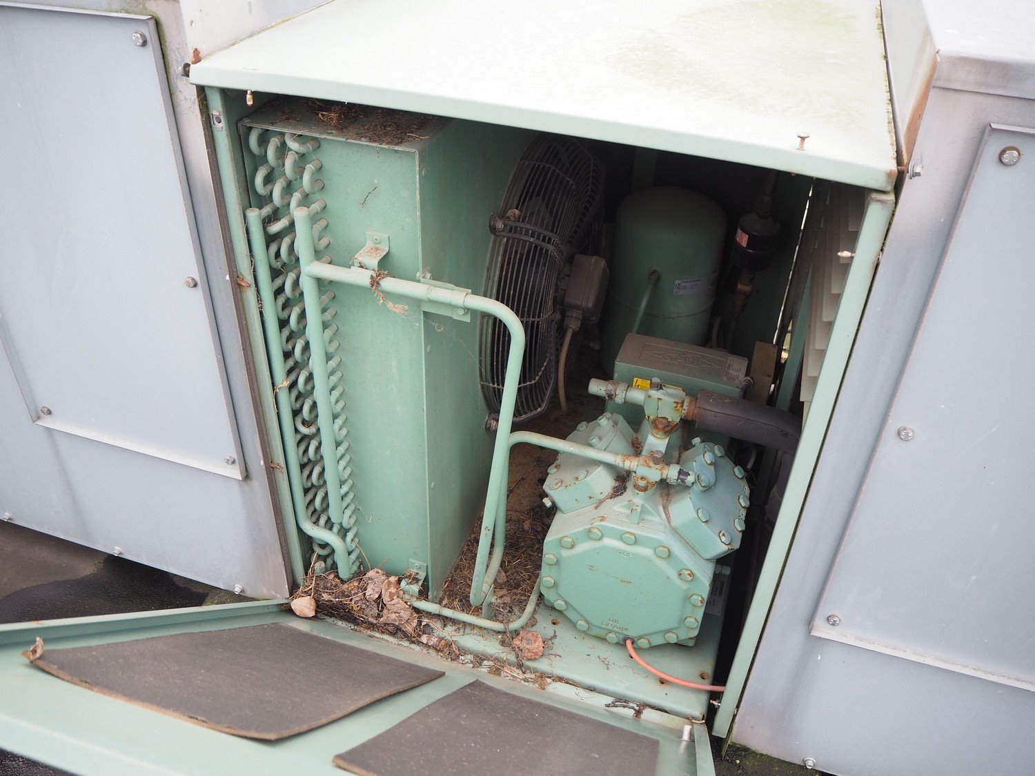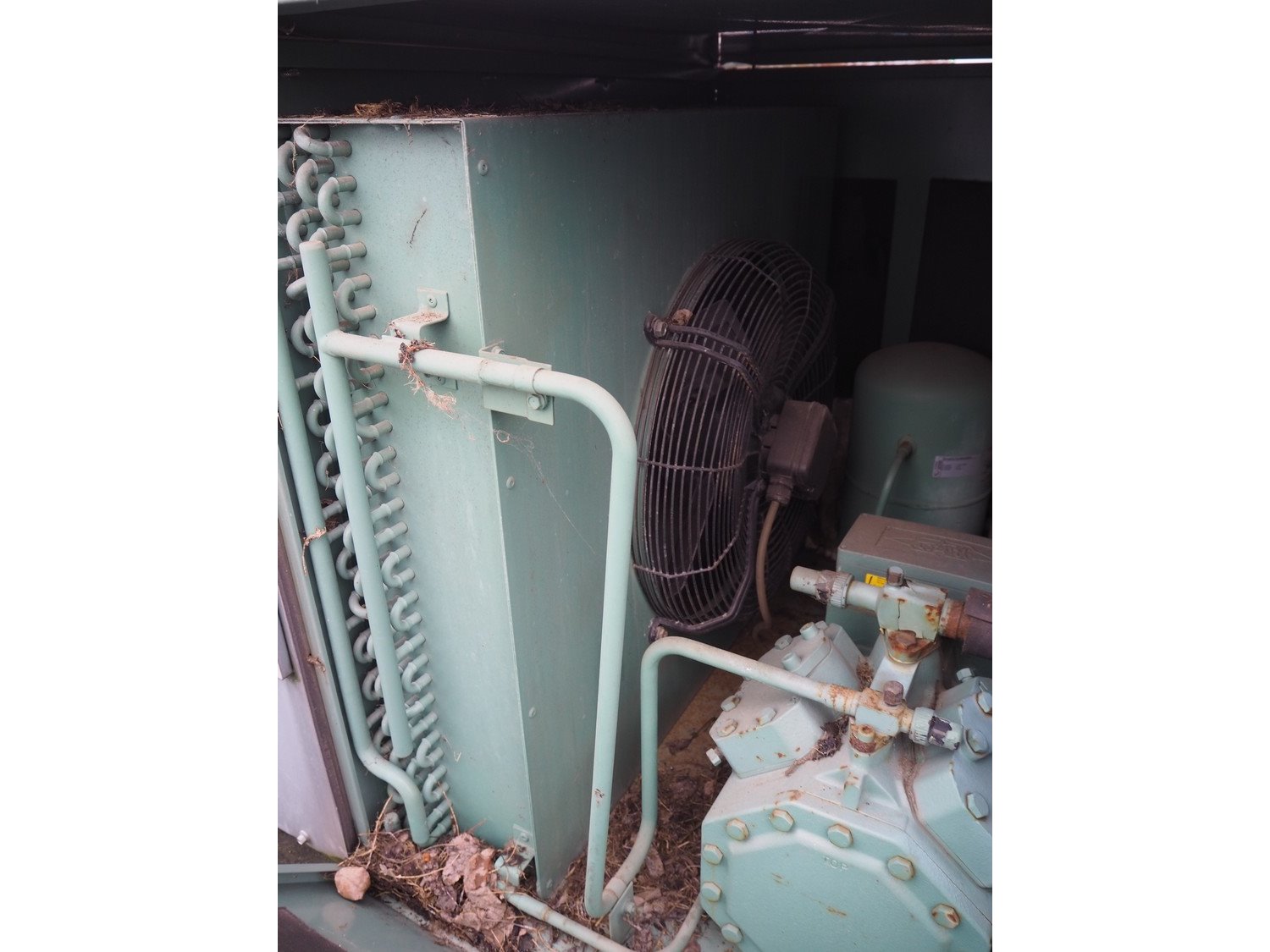 Bitzer Kühlmaschinenbau GmbH condensing unit, type: LH84/4FC-5.2Y-40S, serial number: 1674700126, dimensions: 3700 mm x 1000 mm x 1000 mm. Situated on the roof. Can be picked-up at a later date as soon as the building will be demolished next year, a date for this is yet unknown.