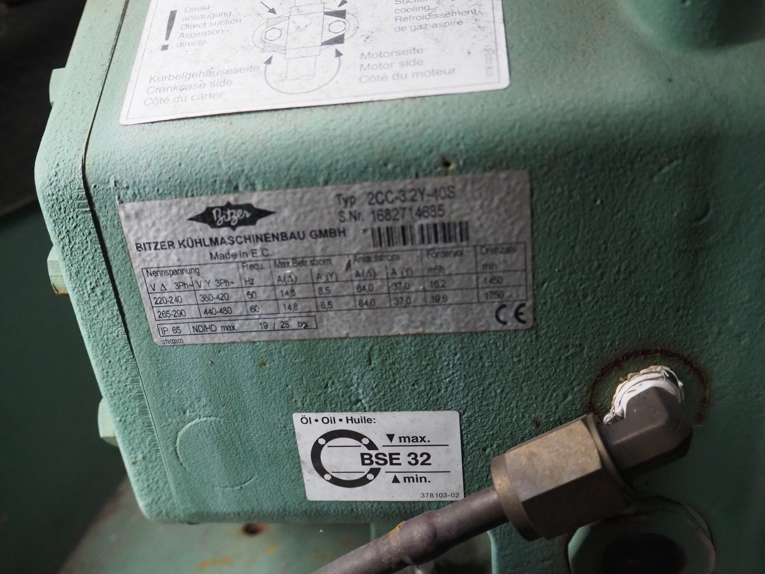 Bitzer Kühlmaschinenbau GmbH condensing unit, type: 2CC-3.2Y-40S, serial number: 1682714685, dimensions: 3700 mm x 1000 mm x 1000 mm. Situated on the roof. Can be picked-up at a later date as soon as the building will be demolished next year, a date for this is yet unknown.
