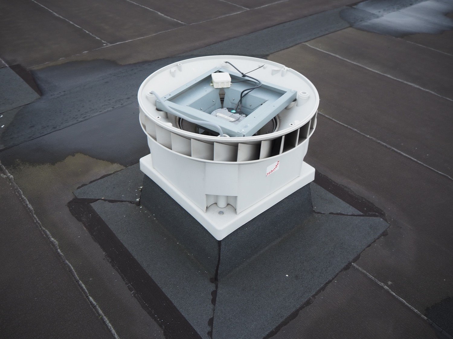(3x) J.E. StorkAir rooftop fan, dimensions: (2x) 700 mm x 700 mm x 600 mm and (1x) 700 mm x 700 mm x 600 mm. One fan is incomplete.