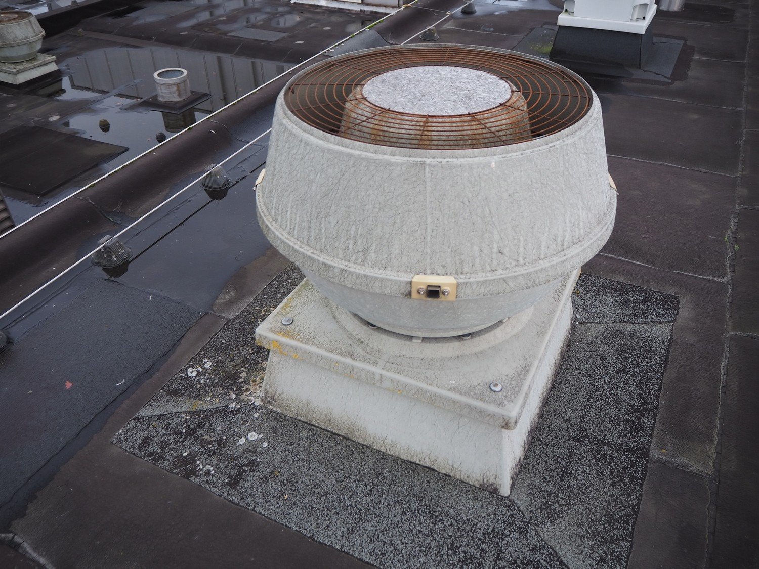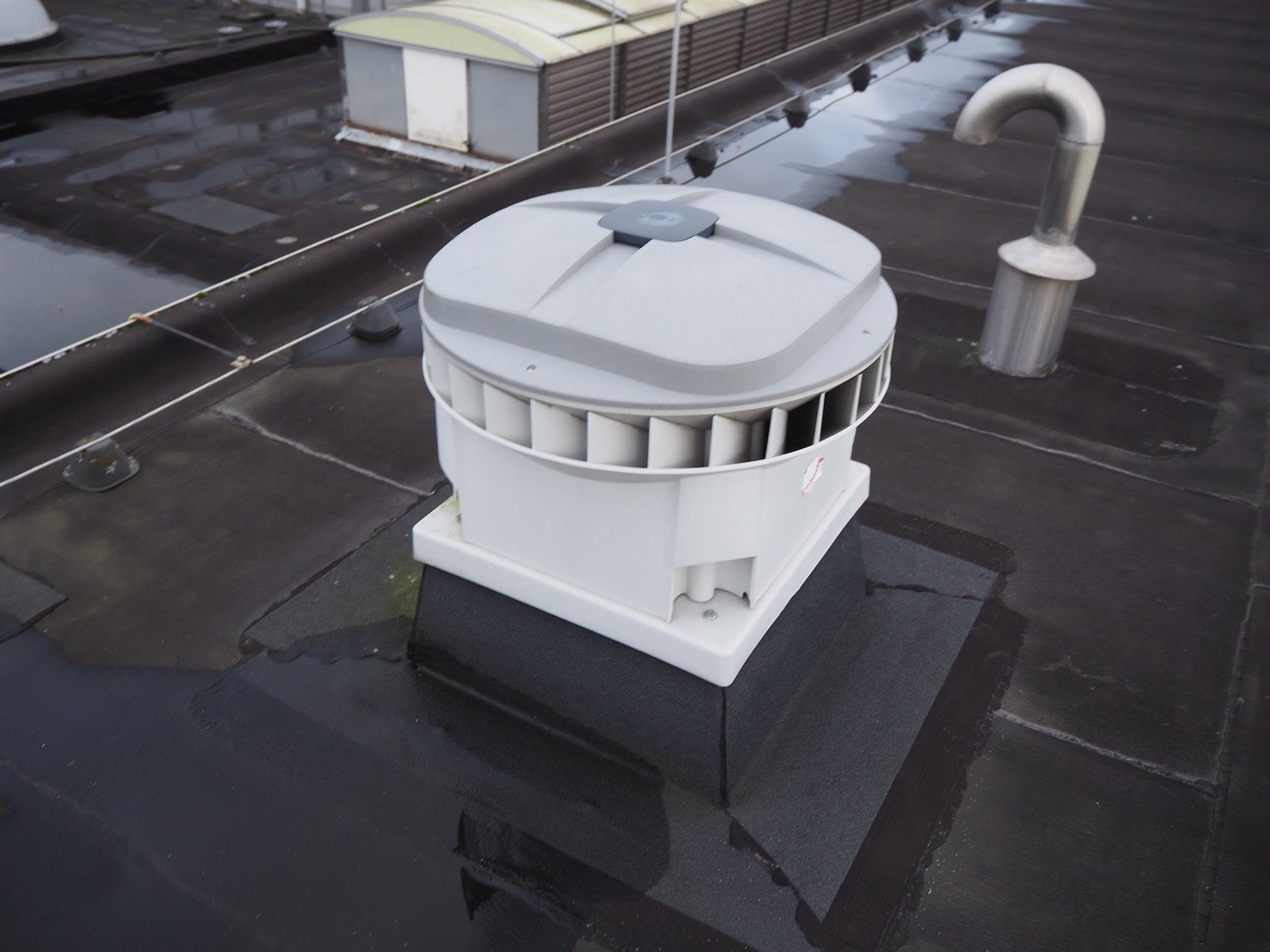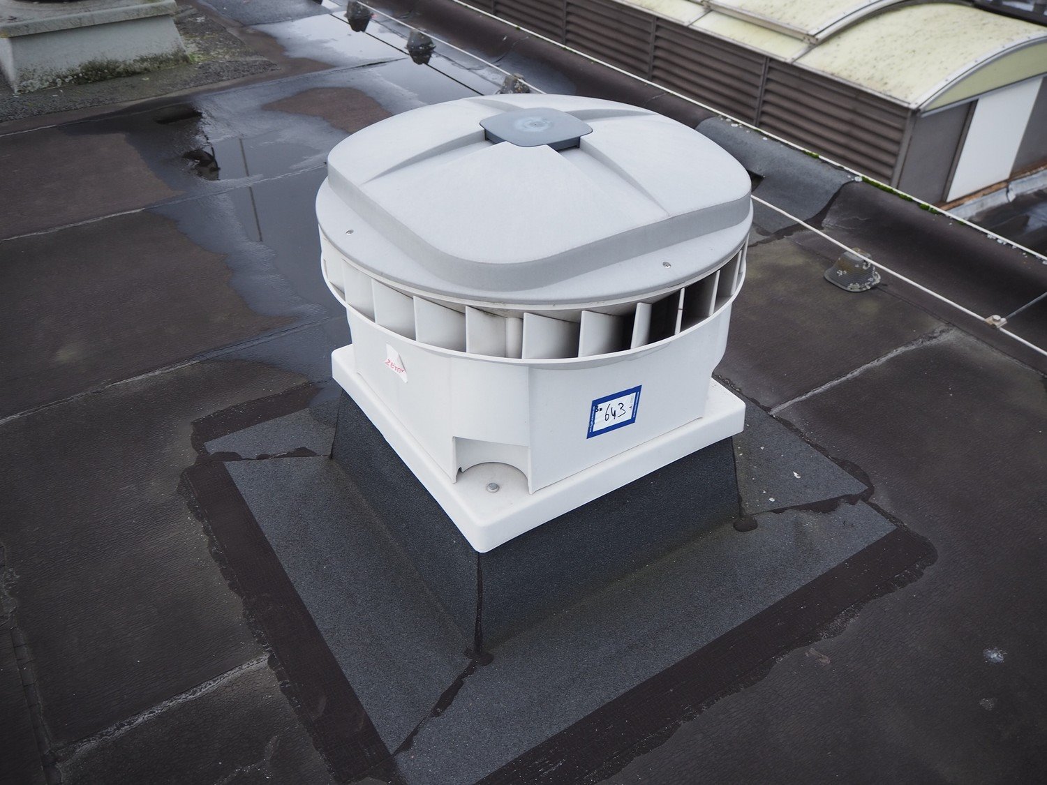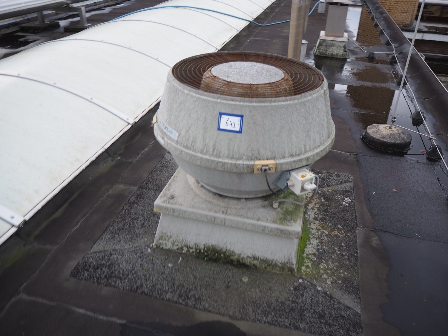 (3x) J.E. StorkAir rooftop fan, dimensions: (2x) 900 mm x 900 mm x 700 mm and (1x) 700 mm x 700 mm x 600 mm.