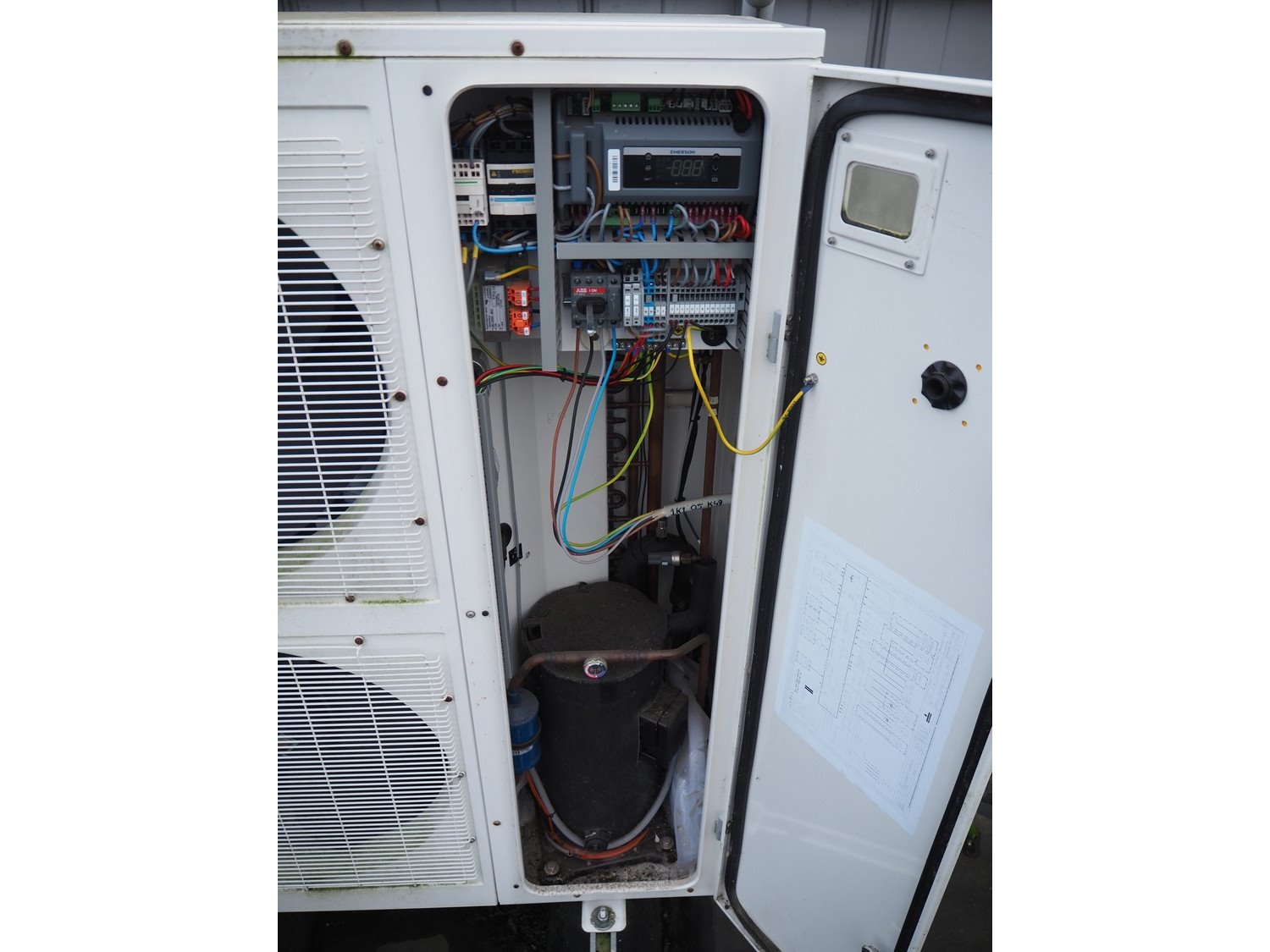 Copeland Scroll outside air-conditioning unit, year of construction: 2019, refrigerant: 2449A/6.0 kg, dimensions: 950 mm x 400 mm x 1250 mm. Situated on the roof.