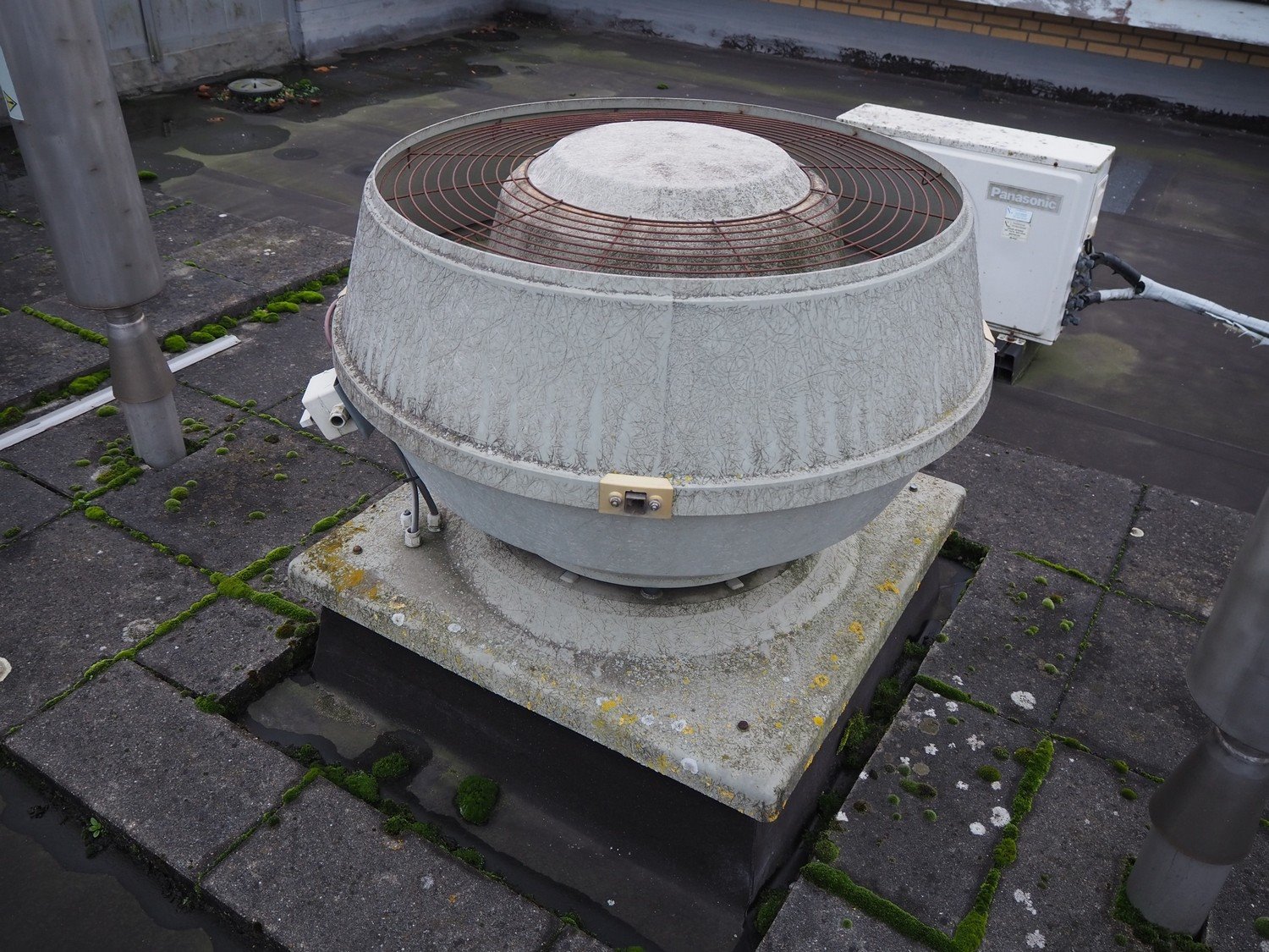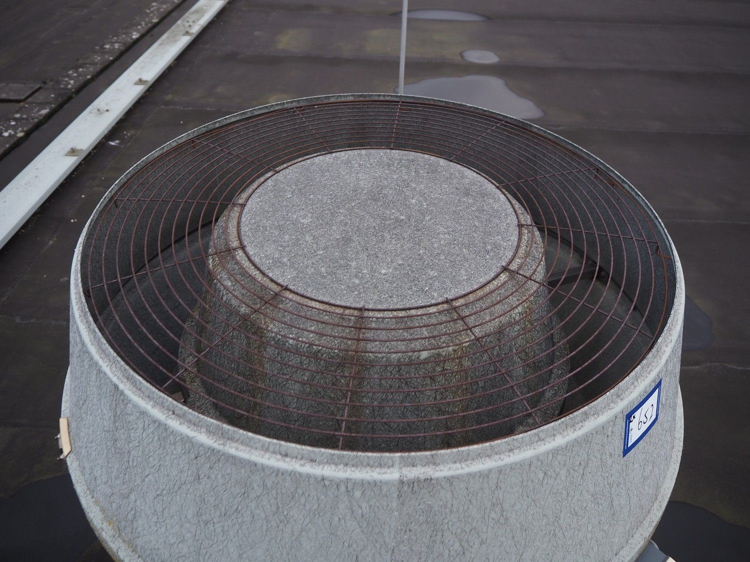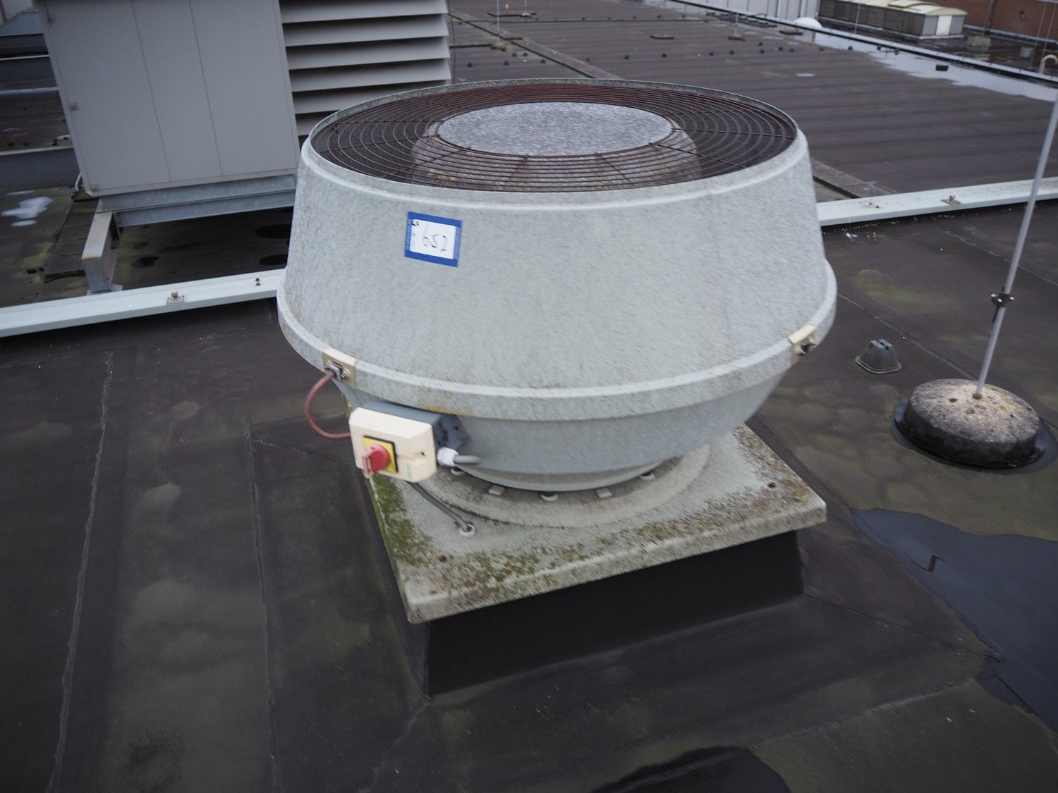 (2x) J.E. StorkAir rooftop fan, dimensions: (2x) 1000 mm x 1000 mm x 800 mm.