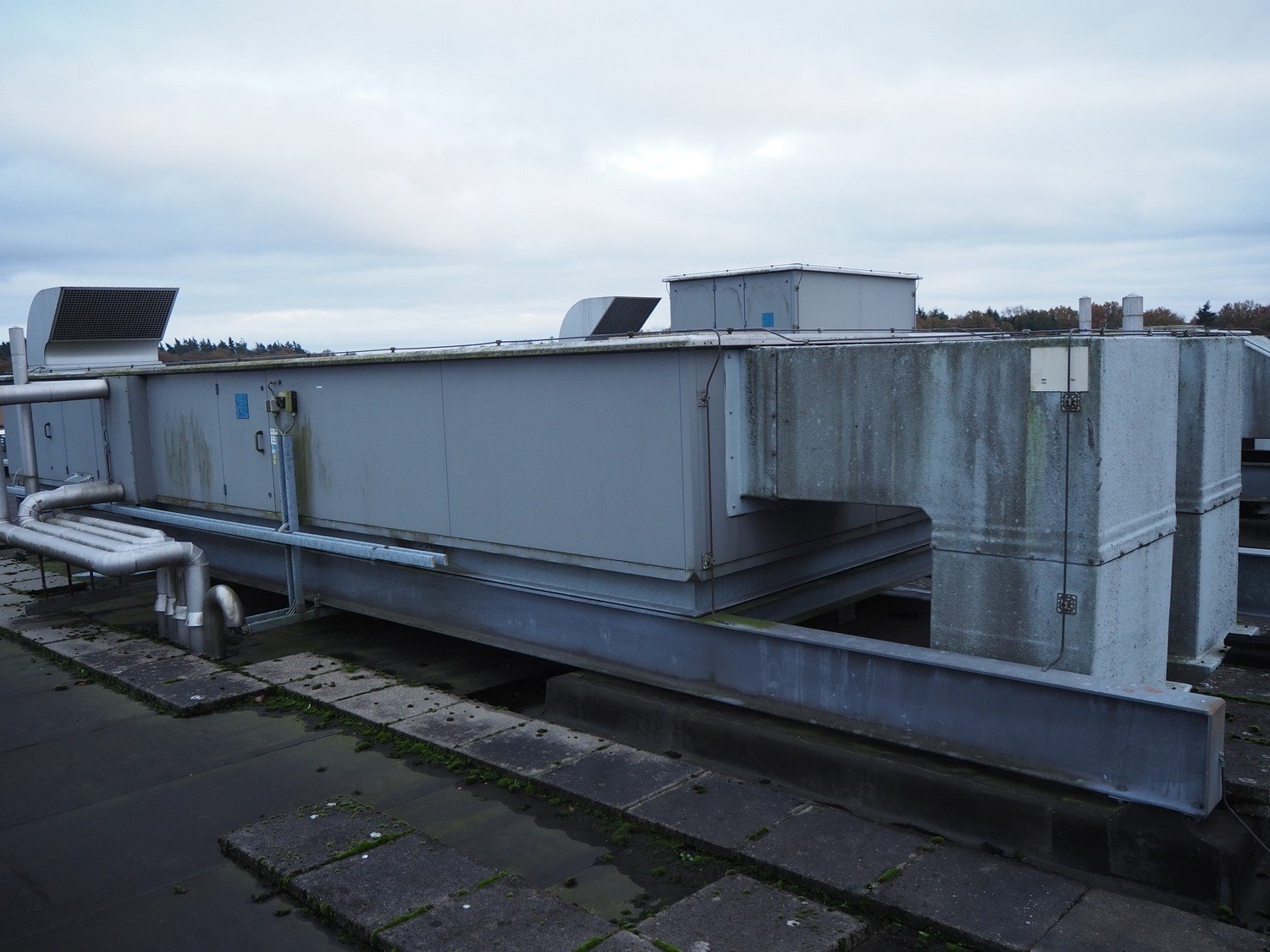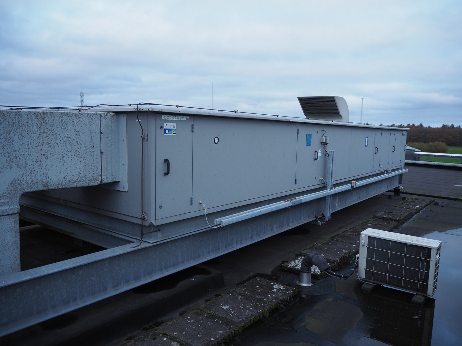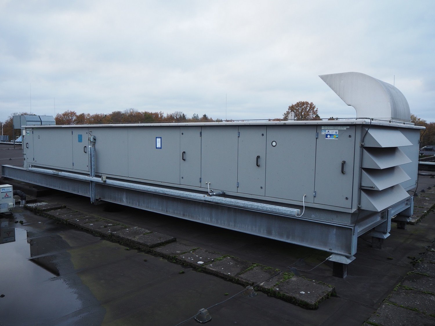 Verhulst air treatment cabinet, type: VKT 0604, year of construction: 2001, airflow: 2.5 m³/s, dimensions: 9100 mm x 3000 mm x 2100 mm. Situated on the roof. Can be picked-up at a later date as soon as the building will be demolished next year, a date for this is yet unknown.