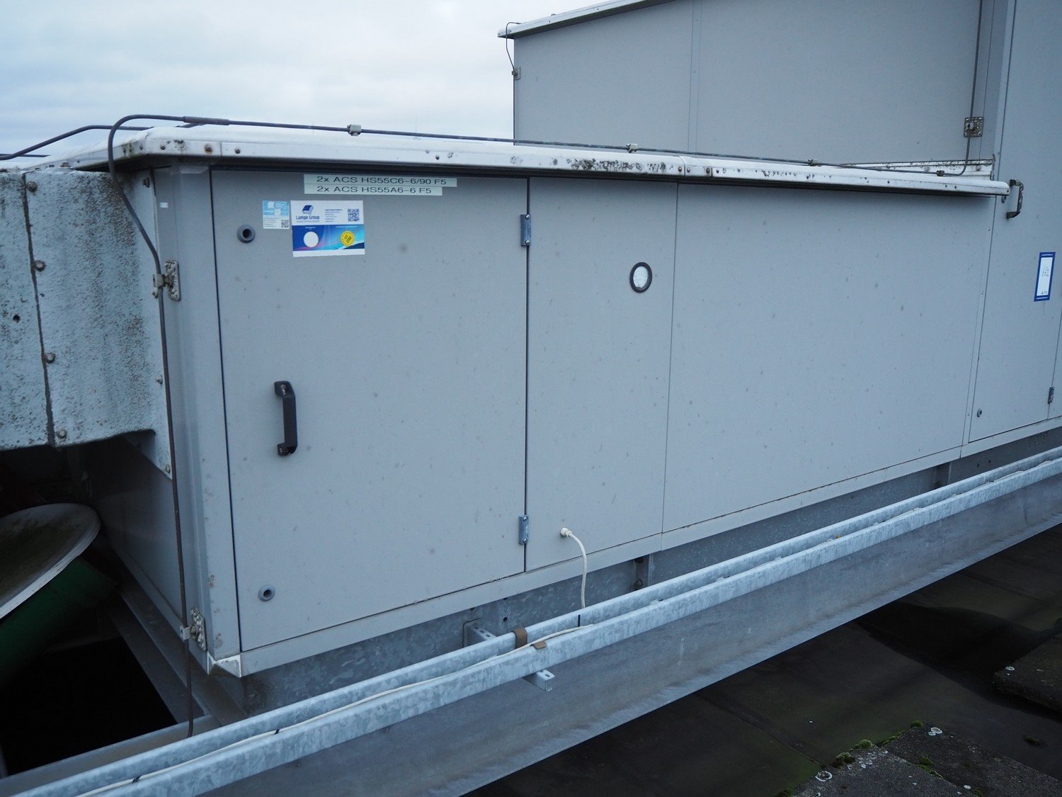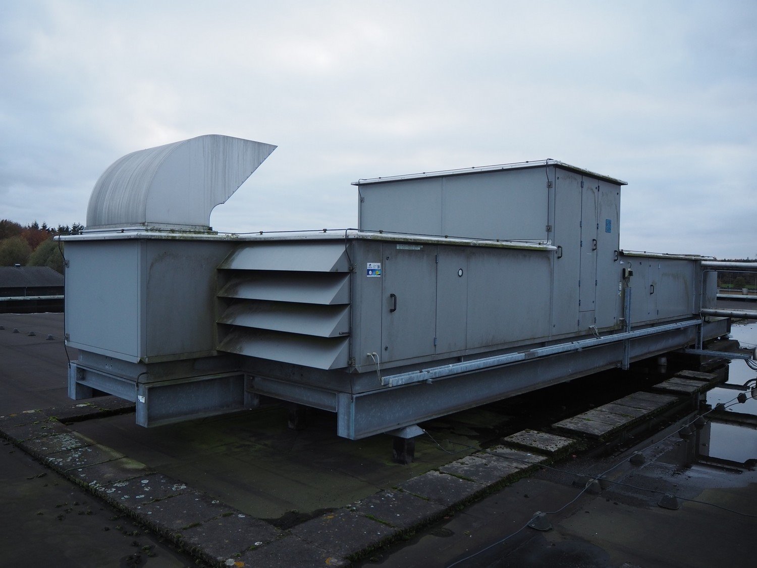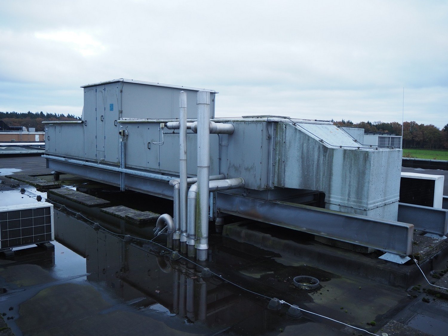 Verhulst air treatment cabinet, type: VKT 0604, year of construction: 2001, airflow: 1.94 m³/s, dimensions: 9100 mm x 3000 mm x 2100 mm. Situated on the roof. Can be picked-up at a later date as soon as the building will be demolished next year, a date for this is yet unknown.