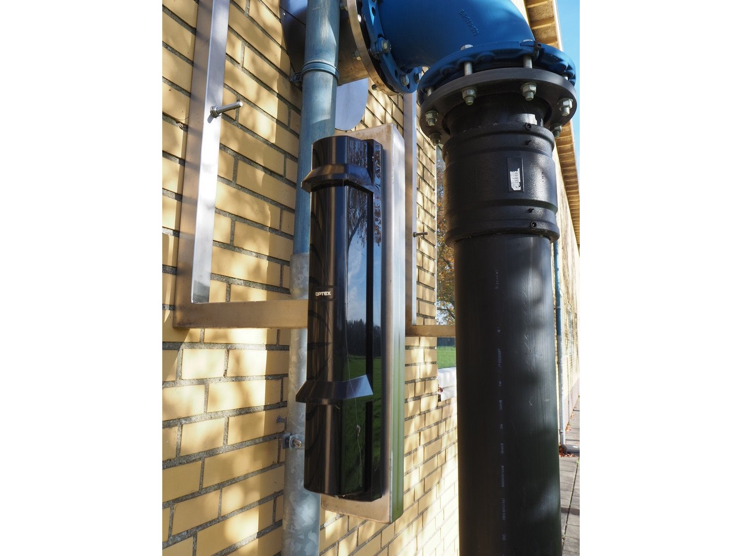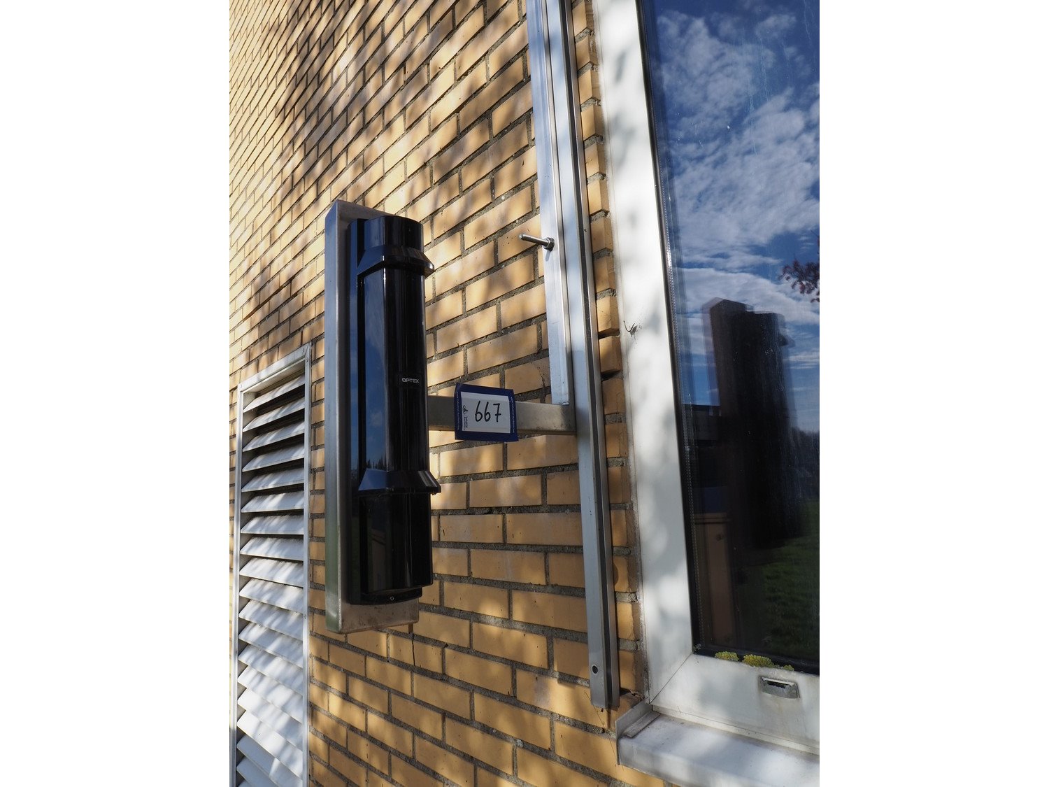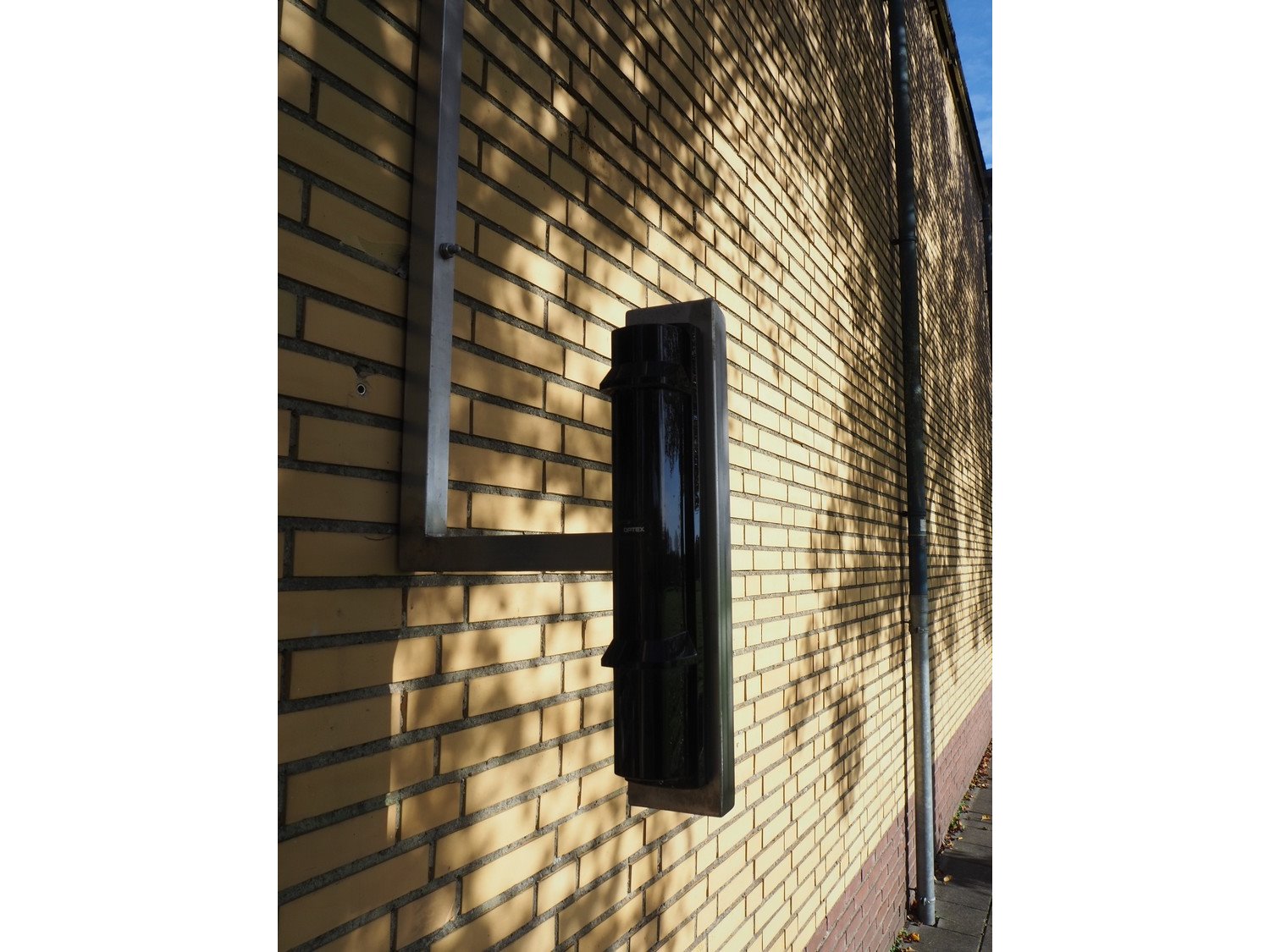 6 s/s frames with Optex alarm sensors, dimensions: (6x) 100 mm x 130 mm x 505 mm.
