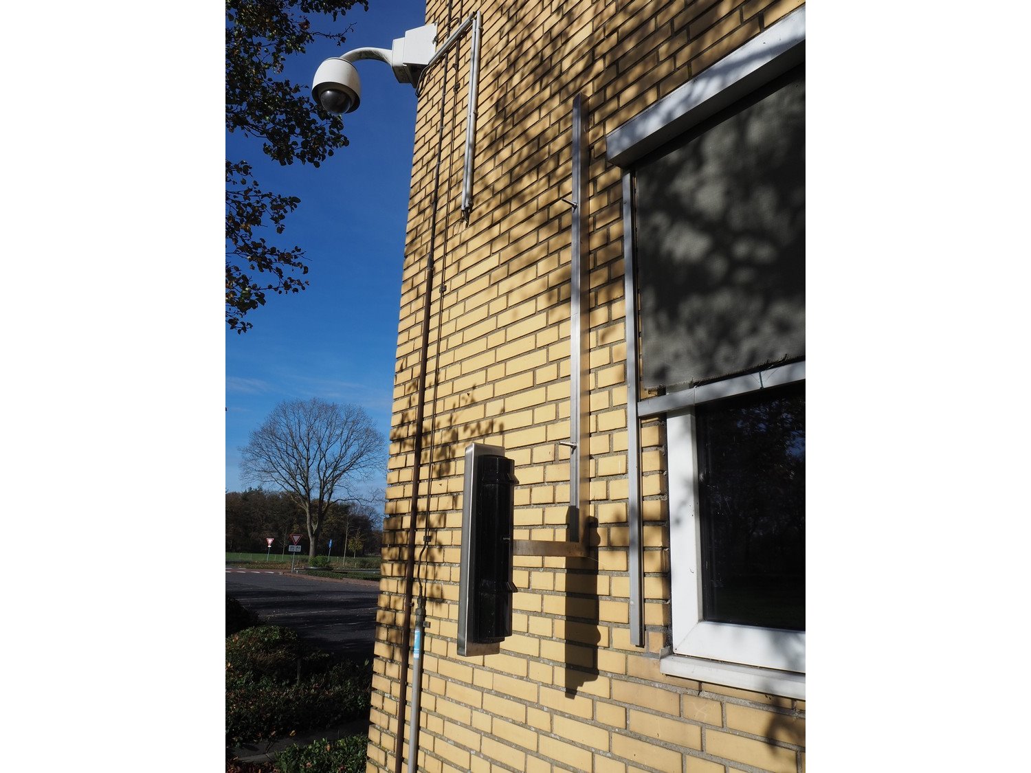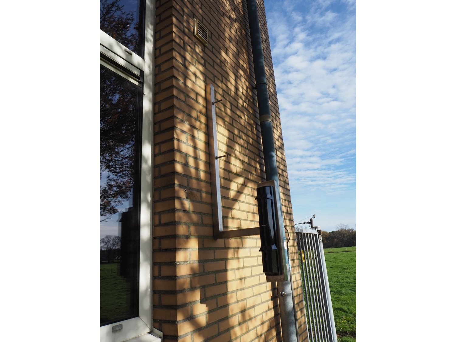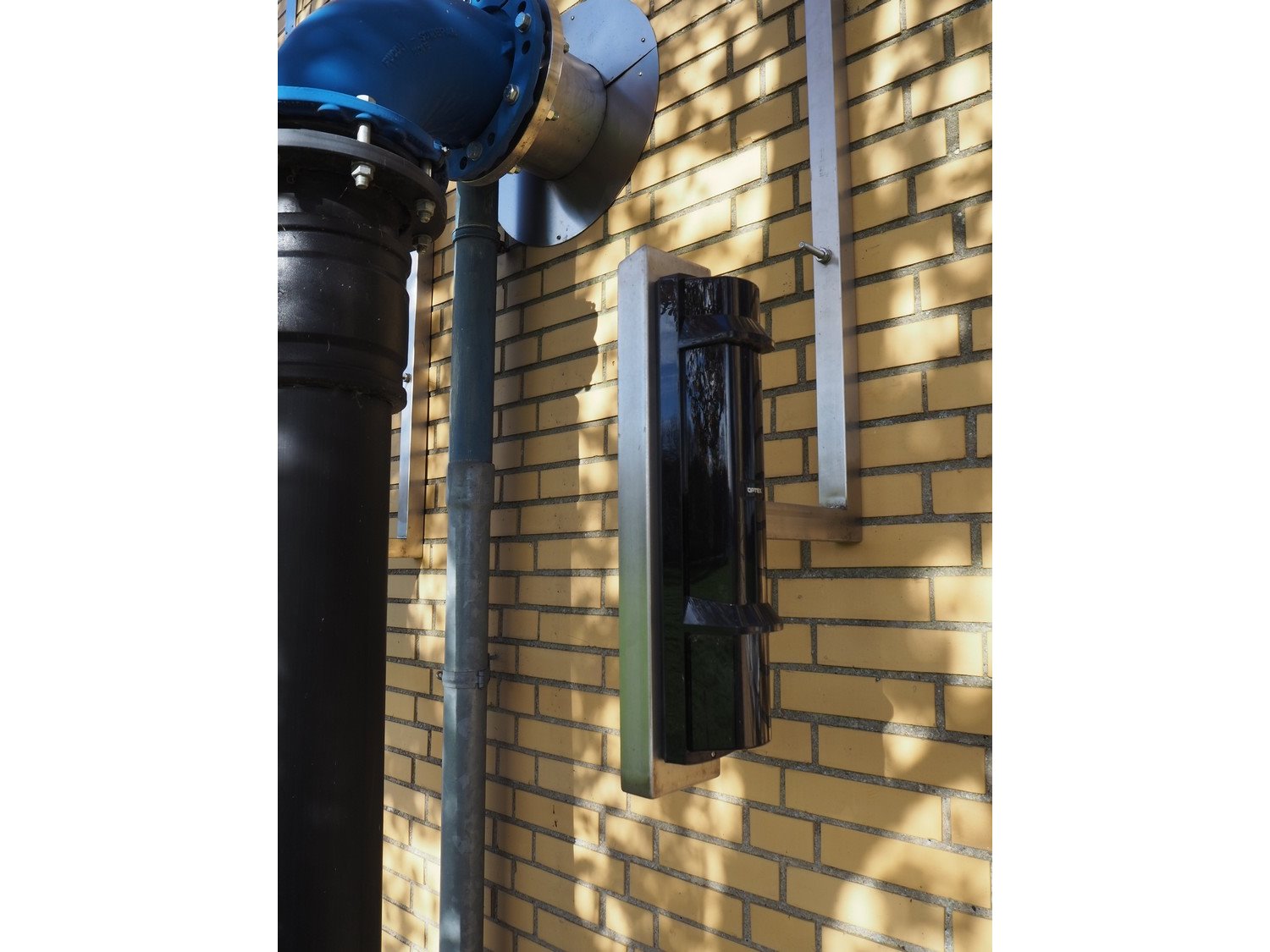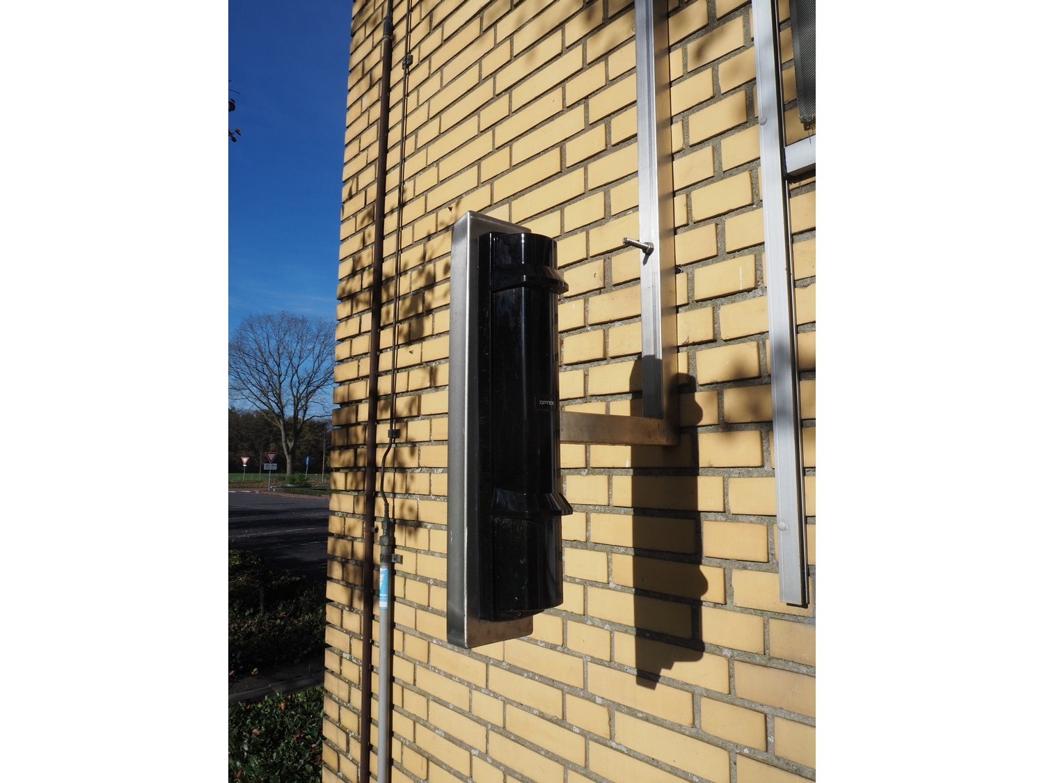 6 s/s frames with Optex alarm sensors, dimensions: (6x) 100 mm x 130 mm x 505 mm.