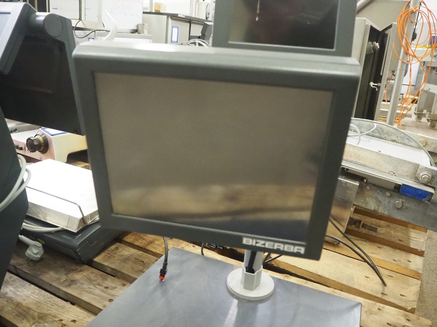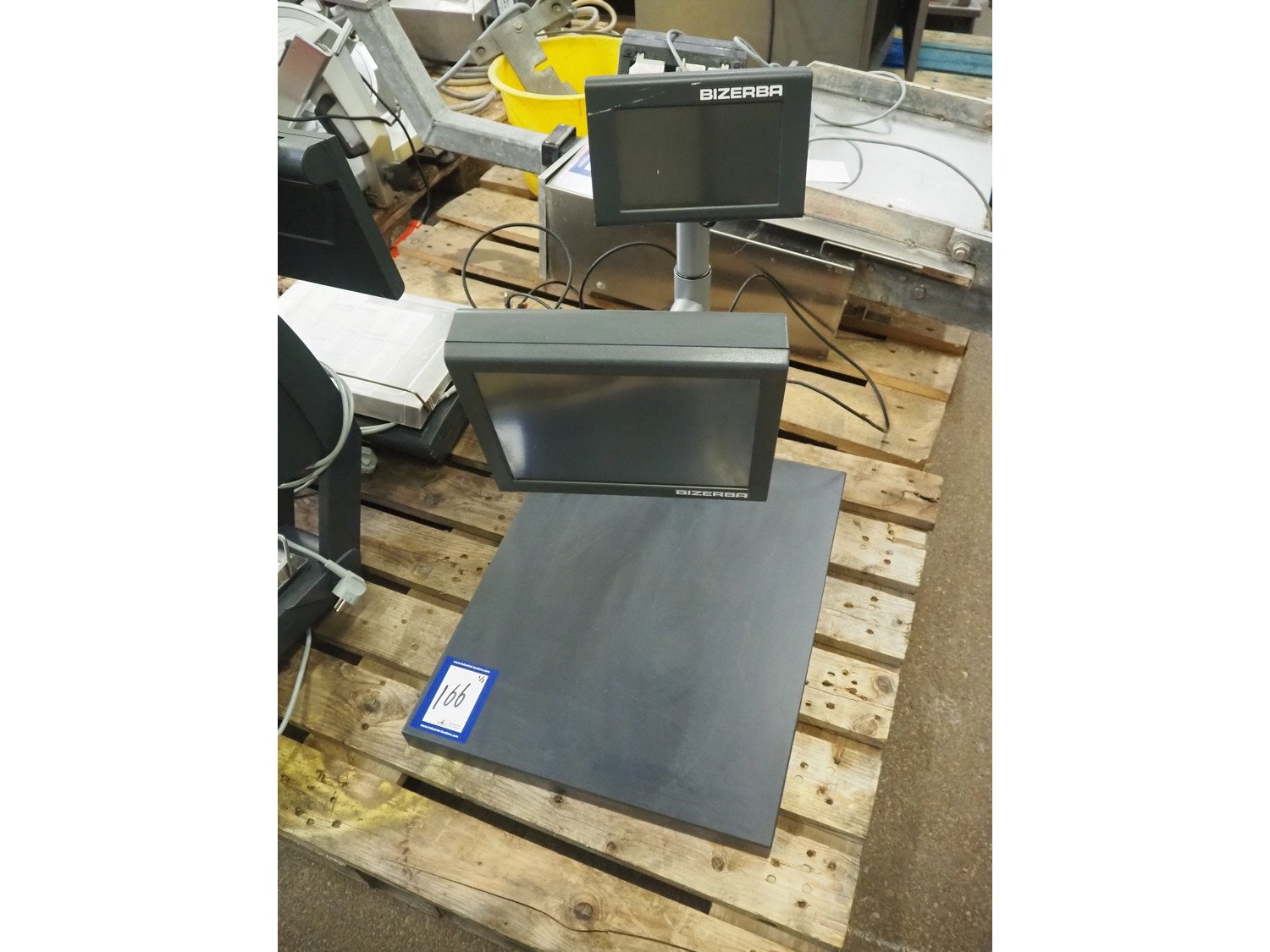 Bizerba cash register system, consisting of; Bizerba screen, number: 11387840 and 11387838, dimensions: 560 mm x 450 mm x 650 mm Crate with Epson printer, model: M296A, serial number: T48F065975, Bizerba scanner and pay terminal, dimensions: 600 mm x 400 mm x 200 mm Cash register, dimensions: 420 mm x 395 mm x 110 mm.