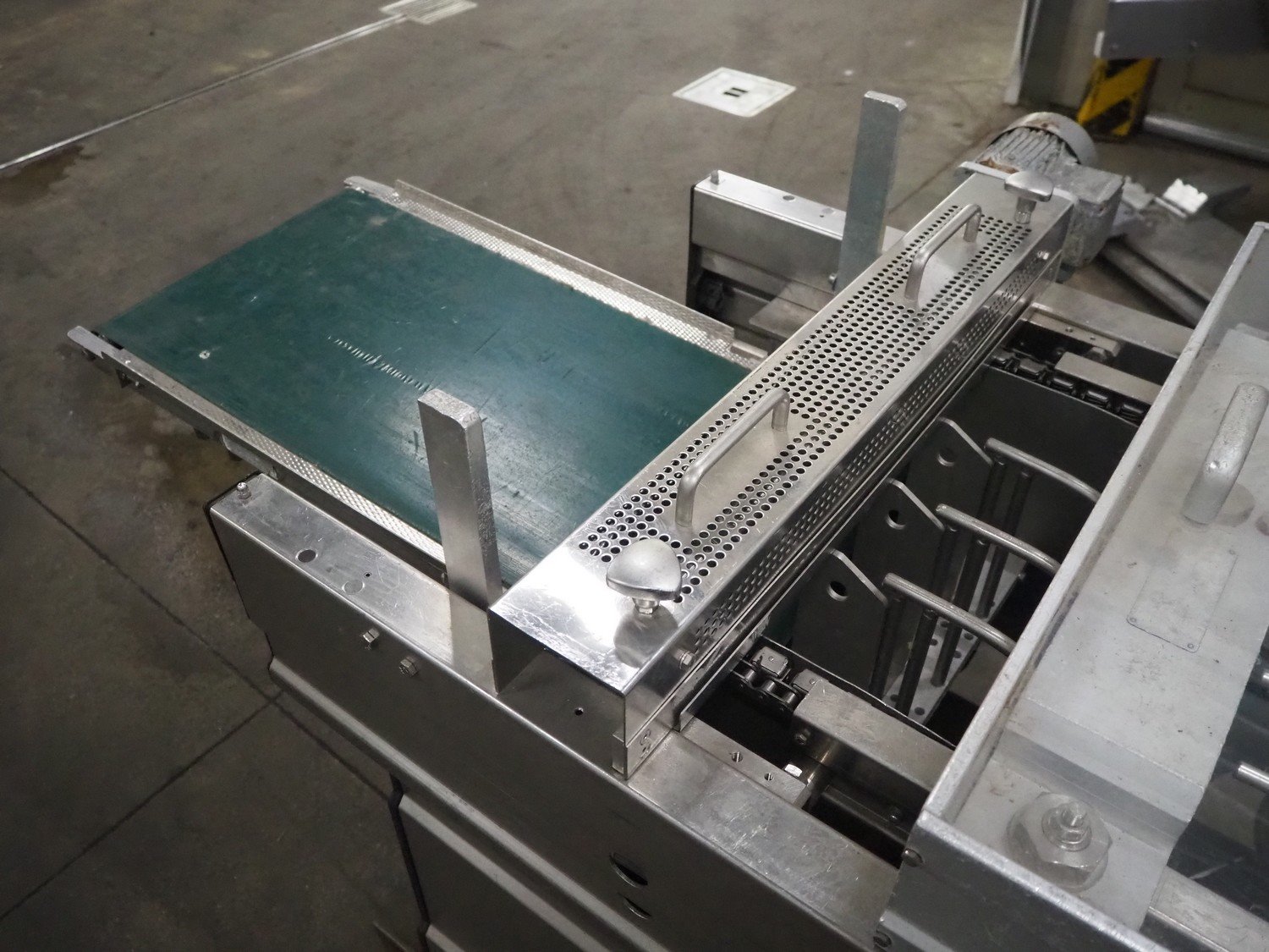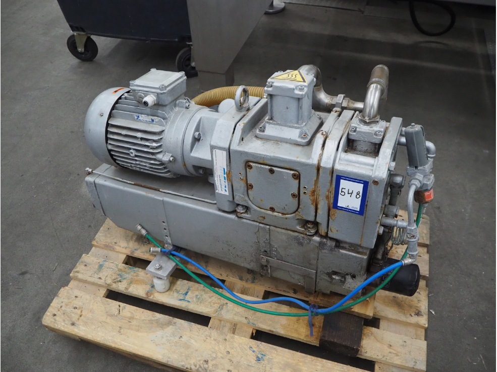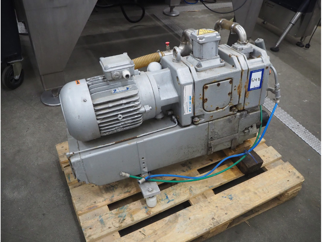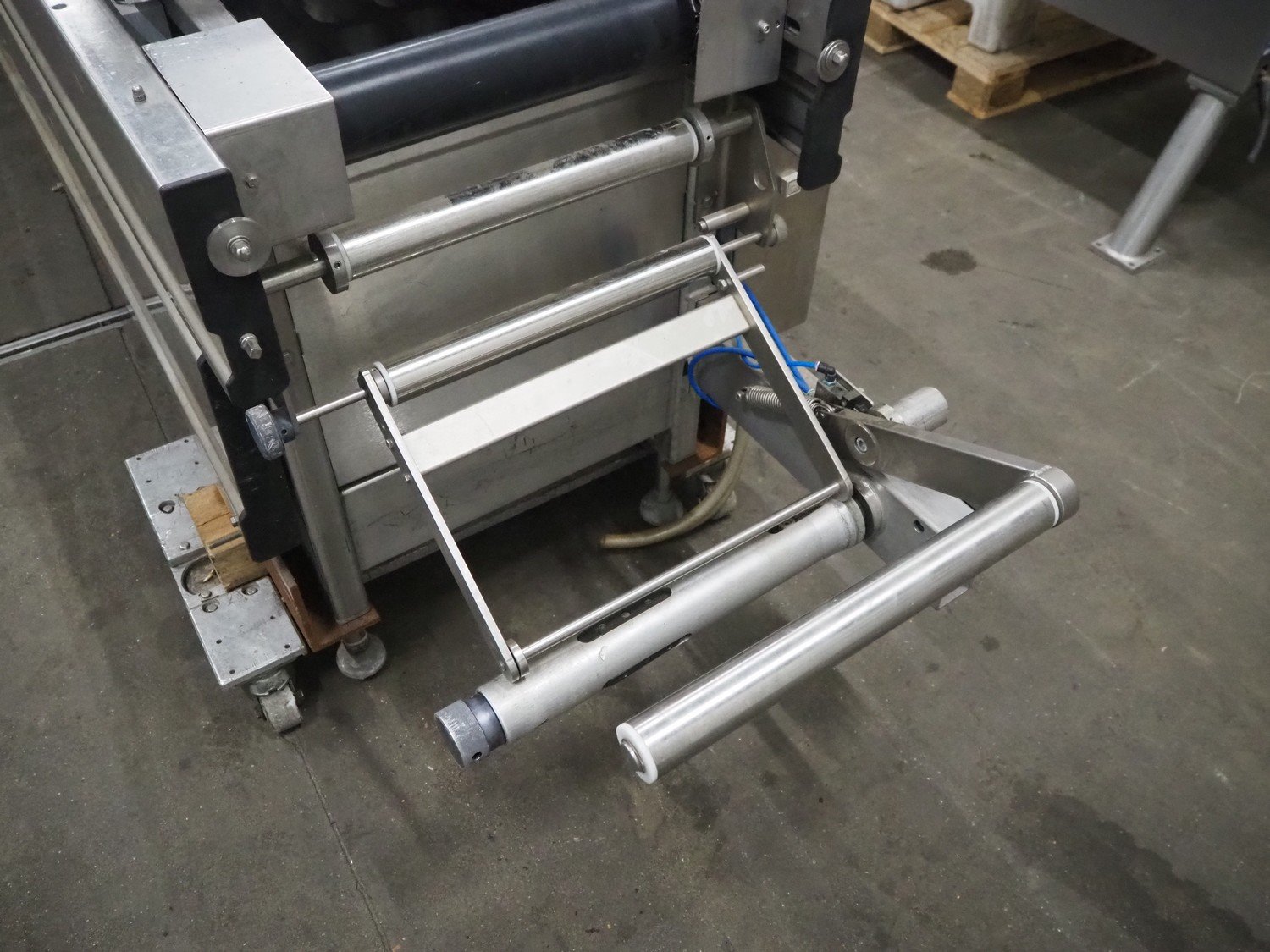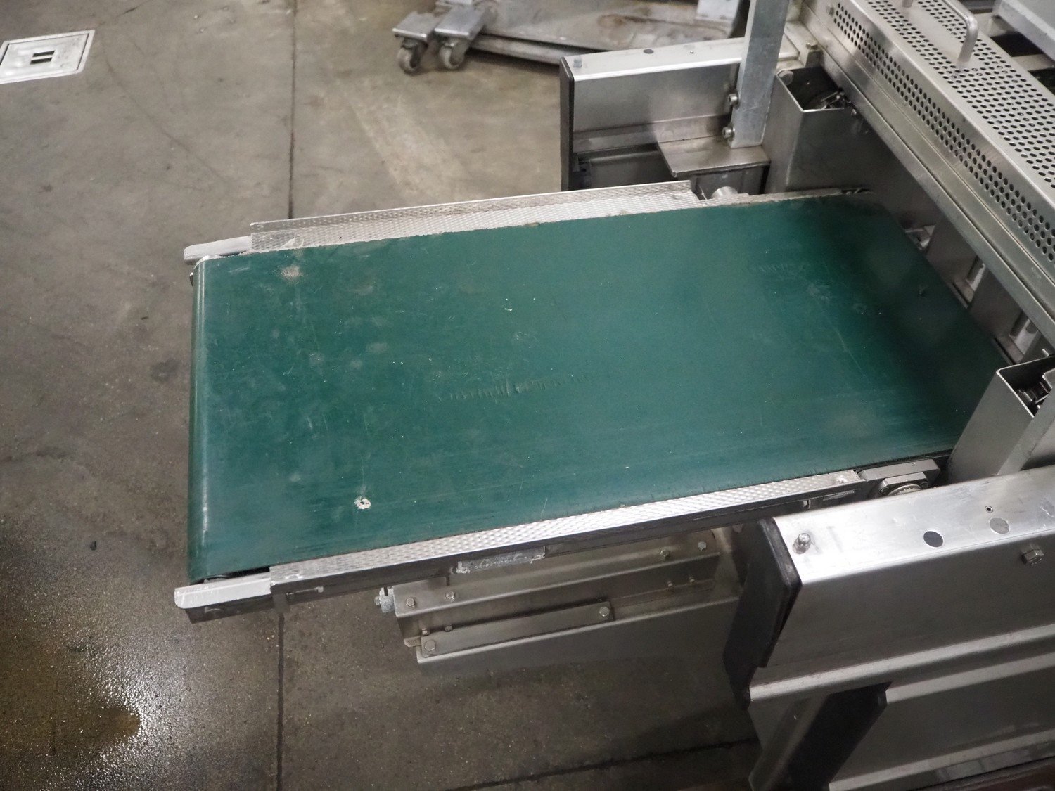 Multivac thermoformer, type: R530, dimensions dye: (8x) 78 mm x 325 mm, plastic belt, belt width: 378 mm, total dimensions: 7660 mm x 1040 mm x 1870 mm. Including Busch vacuum pump, dimensions pump: 1100 mm x 370 mm x 7200 mm. Without rollies.
