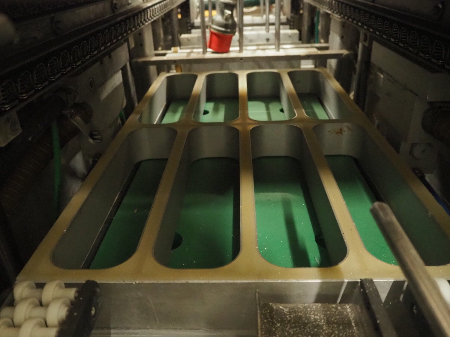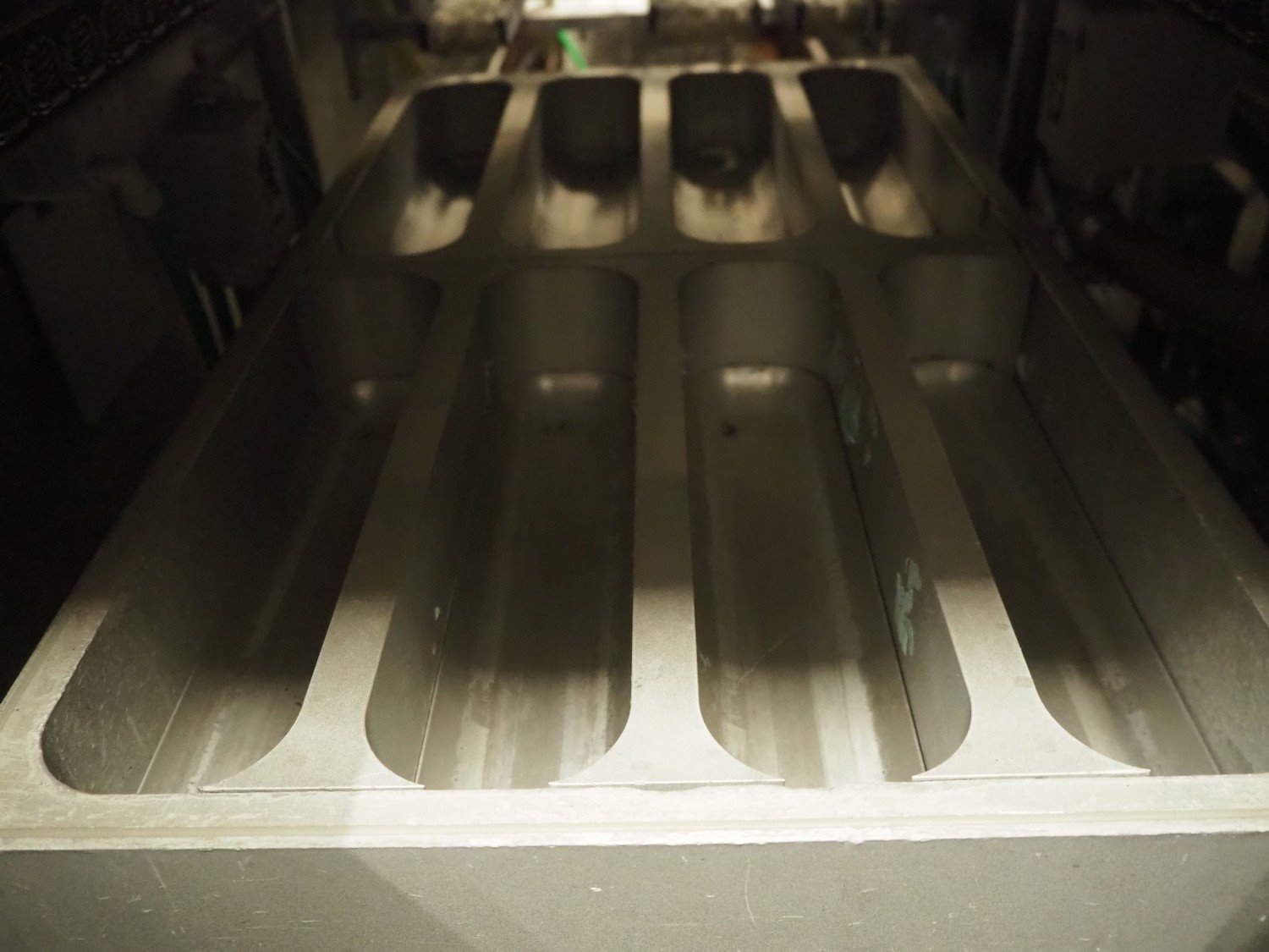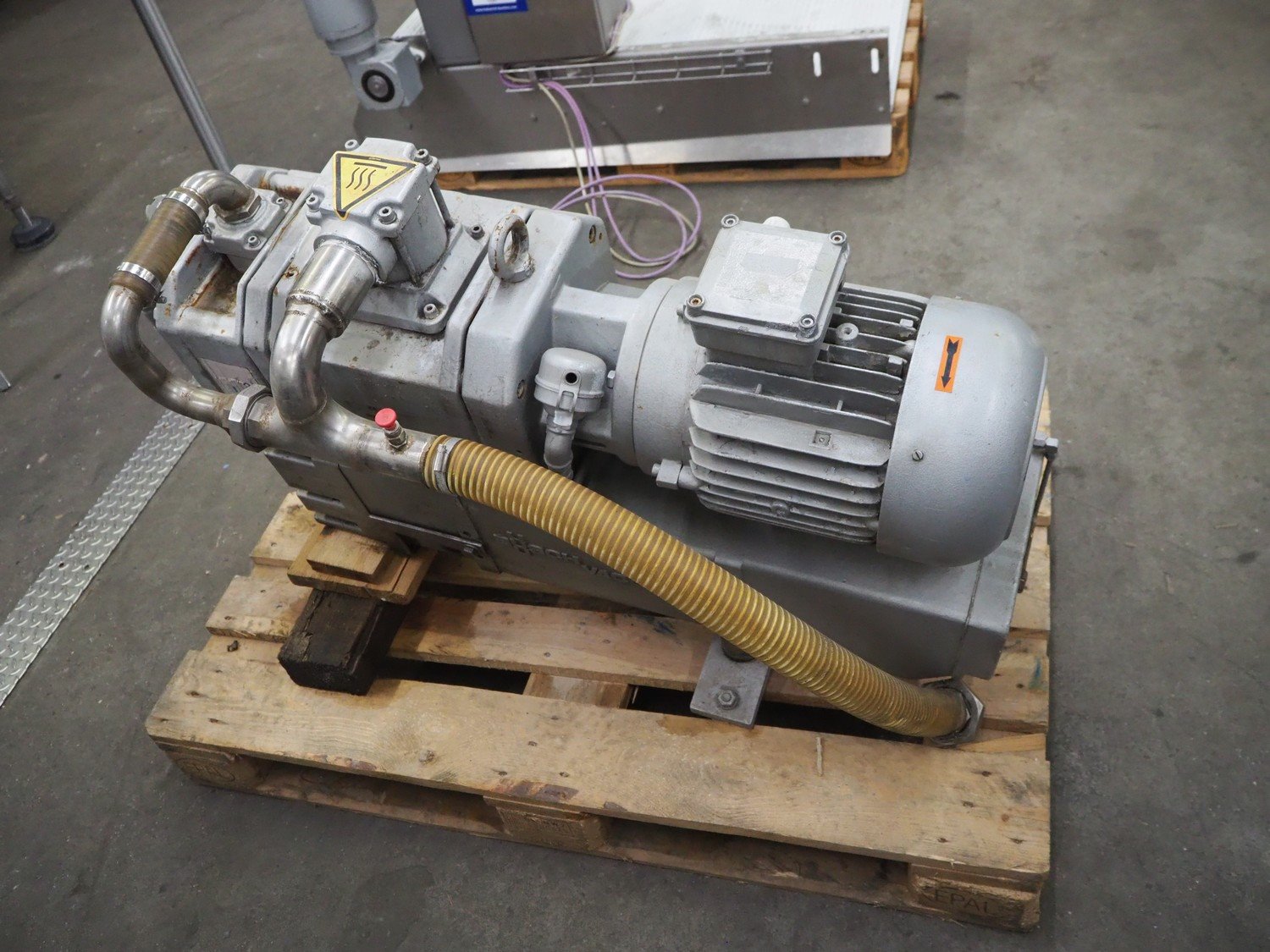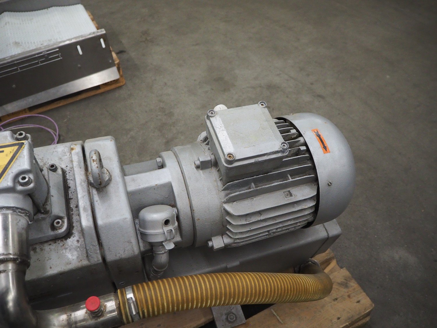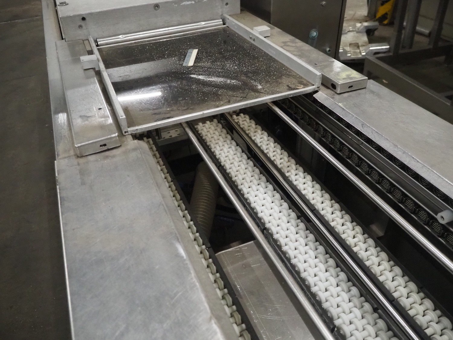 Multivac thermoformer, type: R530, dimensions dye: (8x) 78 mm x 325 mm, plastic belt, belt width: 378 mm, total dimensions: 7660 mm x 1040 mm x 1870 mm. Including Busch vacuum pump, dimensions pump: 1100 mm x 370 mm x 7200 mm. Without rollies.
