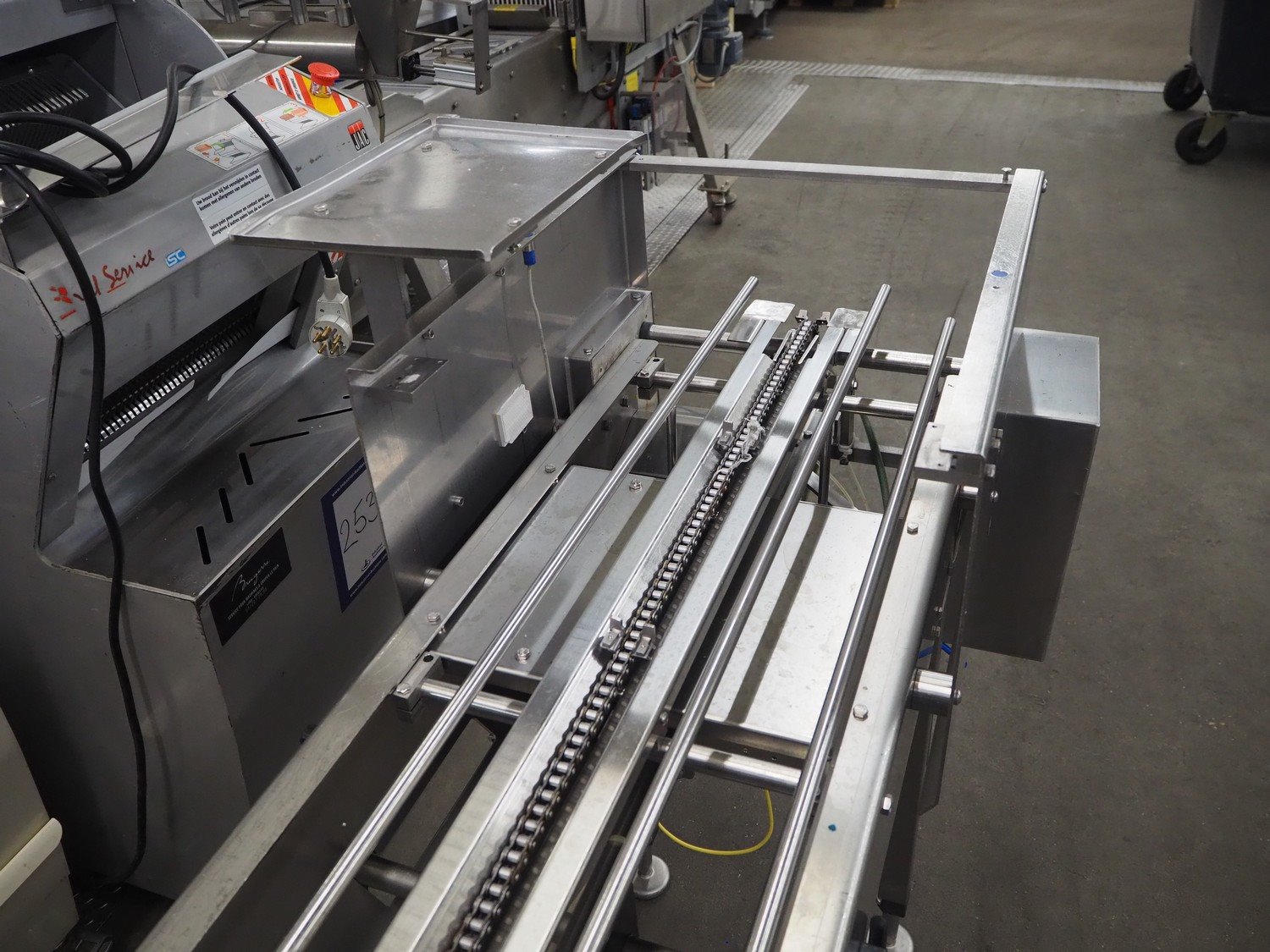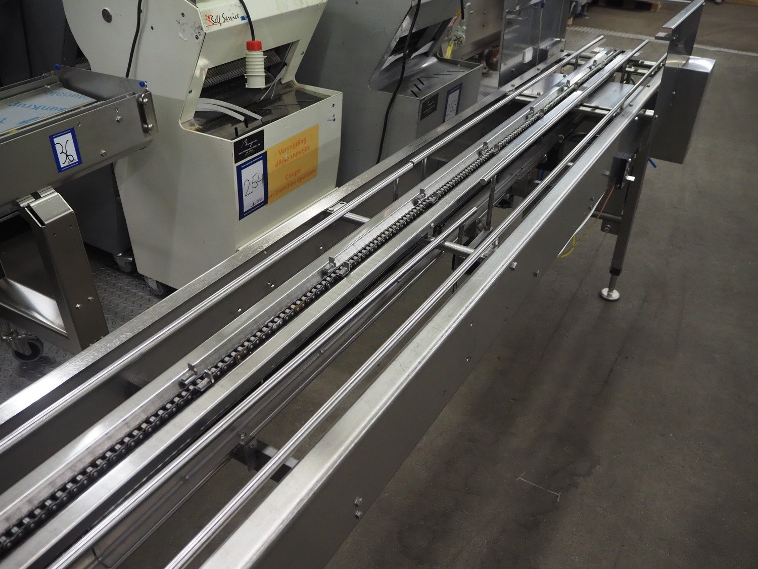 Transport belt, chain belt, belt width: 20 mm, working width: 160 mm, total dimensions: 4950 mm x 700 mm x 1200 mm.