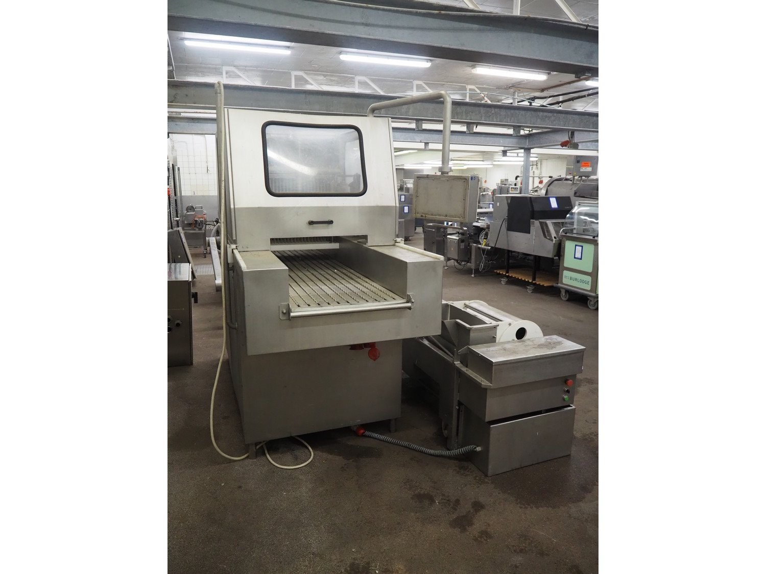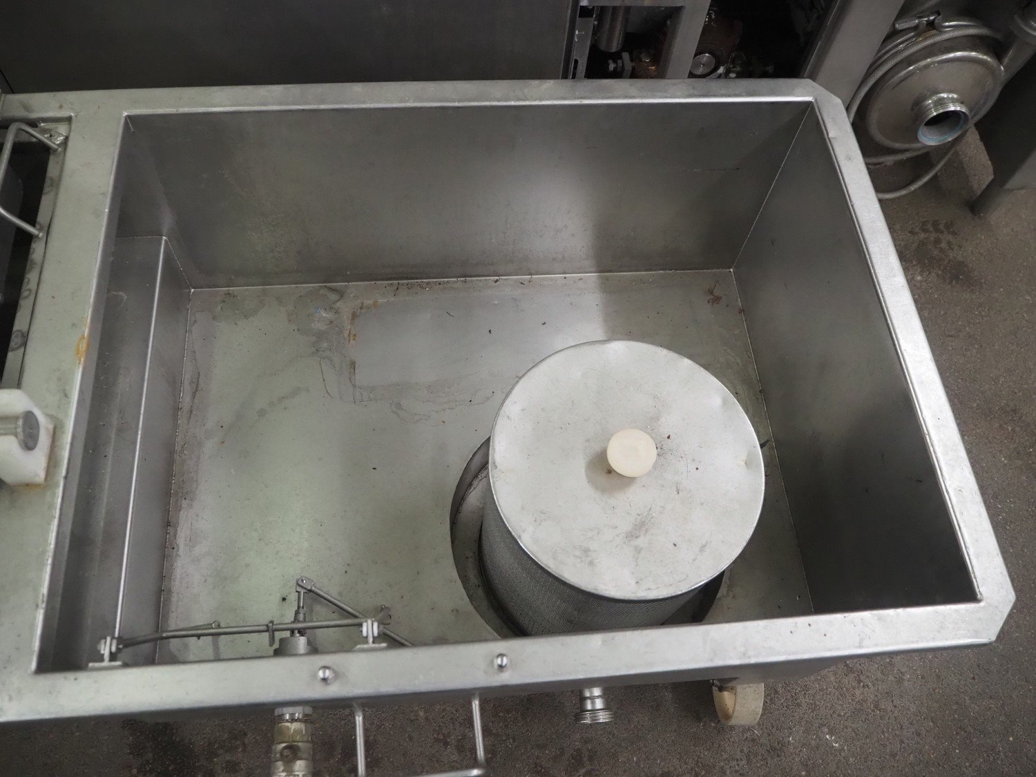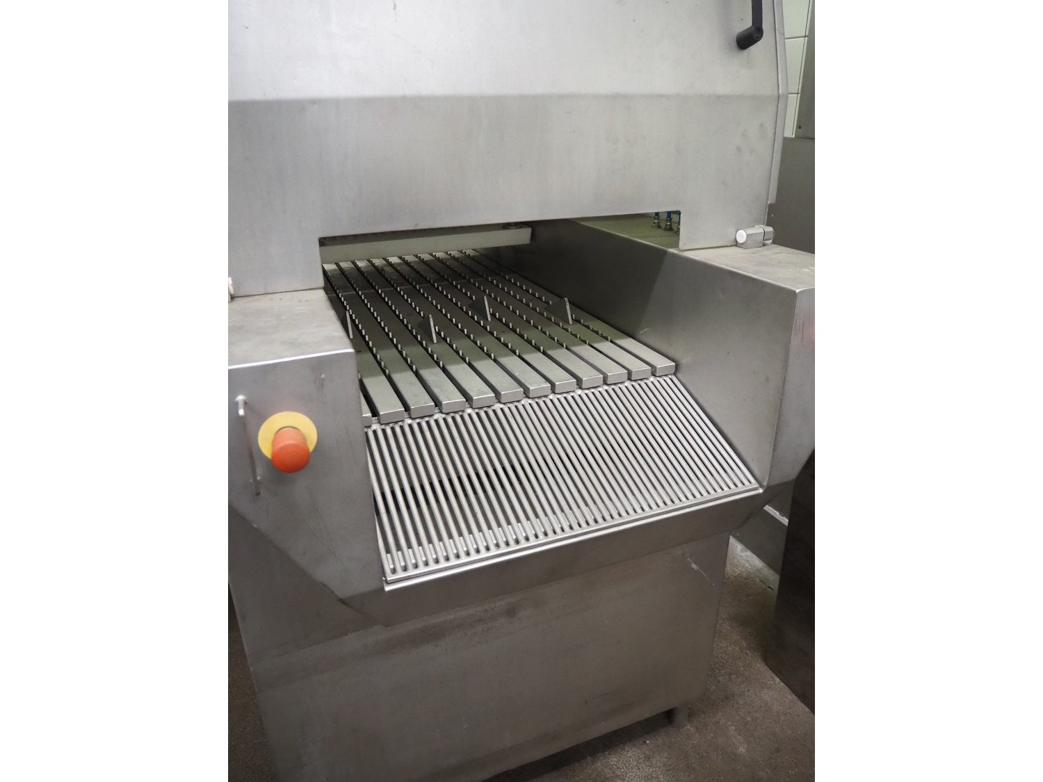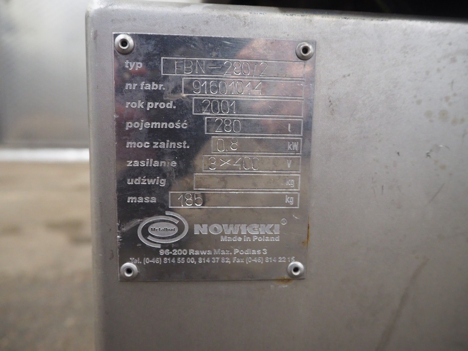 Nowicki injector, type: MH-280, number: 00501014, year of construction: 2001, 400 V, 3 Ph, 1.05 kW, weight: 1260 kg, clearence: 595 mm x 270 mm, s/s walking beam, total dimensions: 2800 mm x 1200 mm x 2150 mm. Including Nowicki filter tub, type: FBN-28012, number: 91601014, year of construction: 2001, 400 V, 3 Ph, weight: 185 kg, dimensions: 1880 mm x 800 mm x 850 mm and switch cabinet, dimensions: 1120 mm x 350 mm x 820 mm.