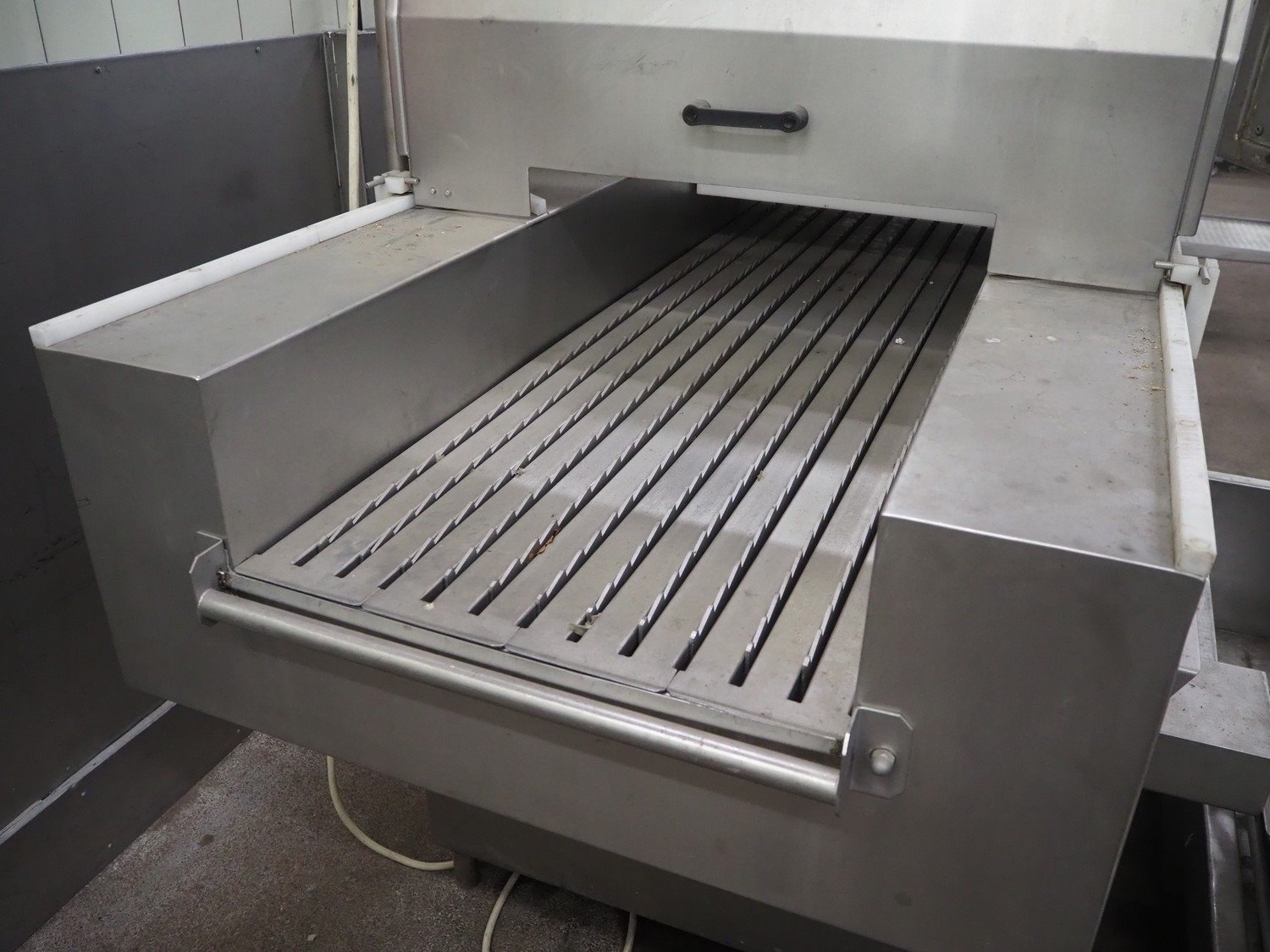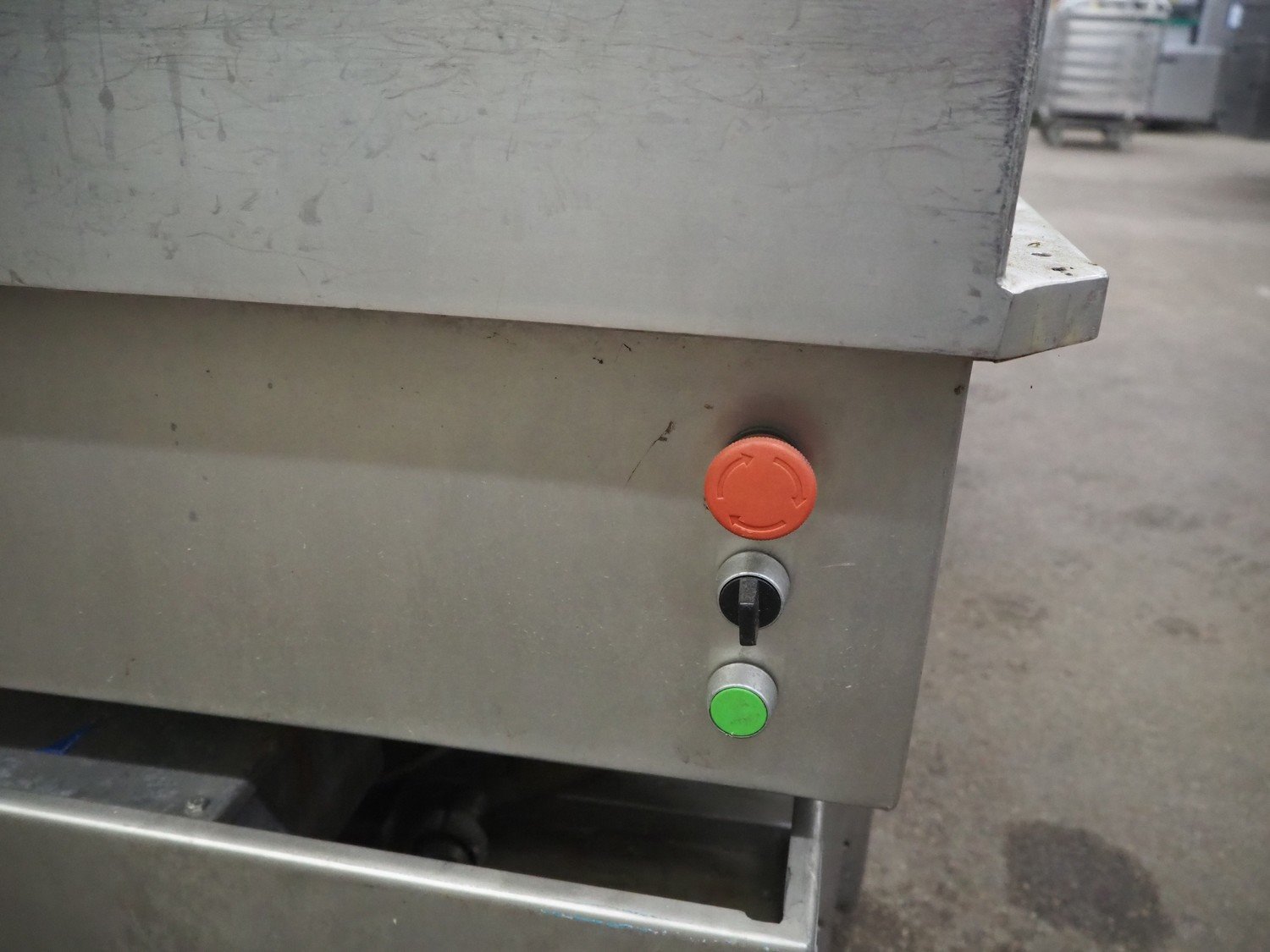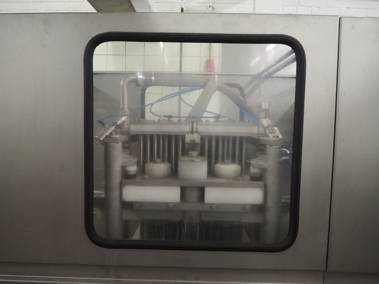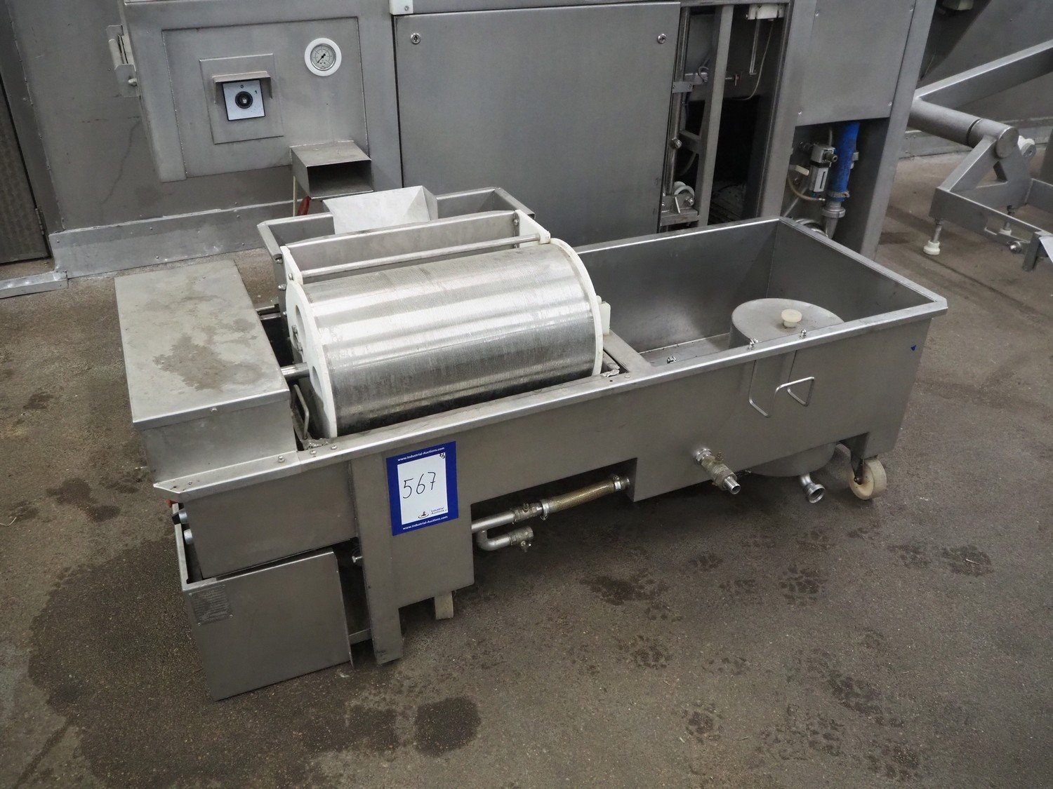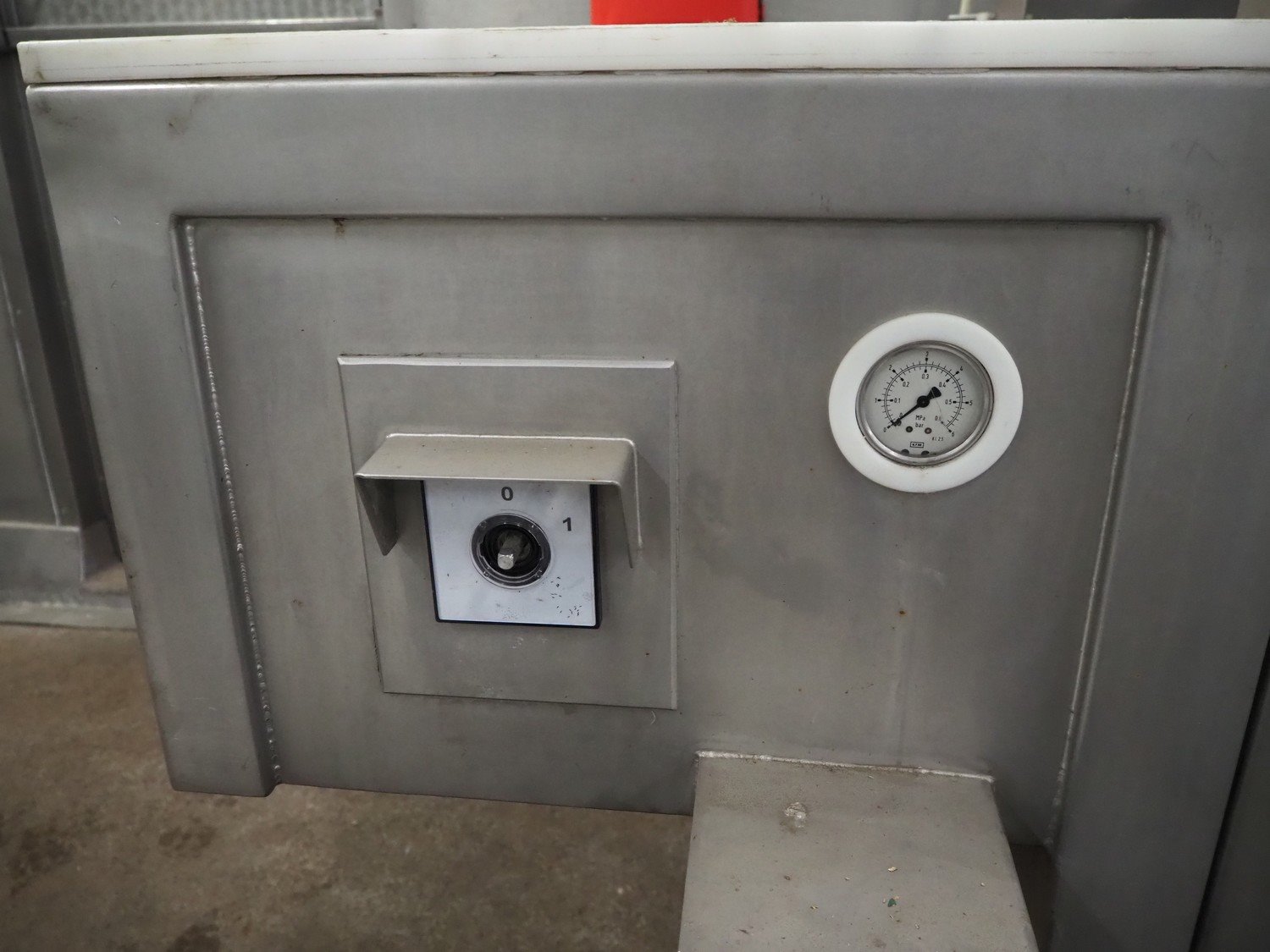 Nowicki injector, type: MH-280, number: 00501014, year of construction: 2001, 400 V, 3 Ph, 1.05 kW, weight: 1260 kg, clearence: 595 mm x 270 mm, s/s walking beam, total dimensions: 2800 mm x 1200 mm x 2150 mm. Including Nowicki filter tub, type: FBN-28012, number: 91601014, year of construction: 2001, 400 V, 3 Ph, weight: 185 kg, dimensions: 1880 mm x 800 mm x 850 mm and switch cabinet, dimensions: 1120 mm x 350 mm x 820 mm.