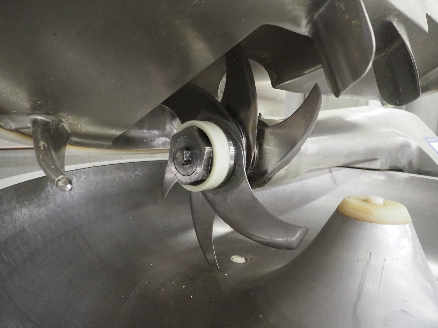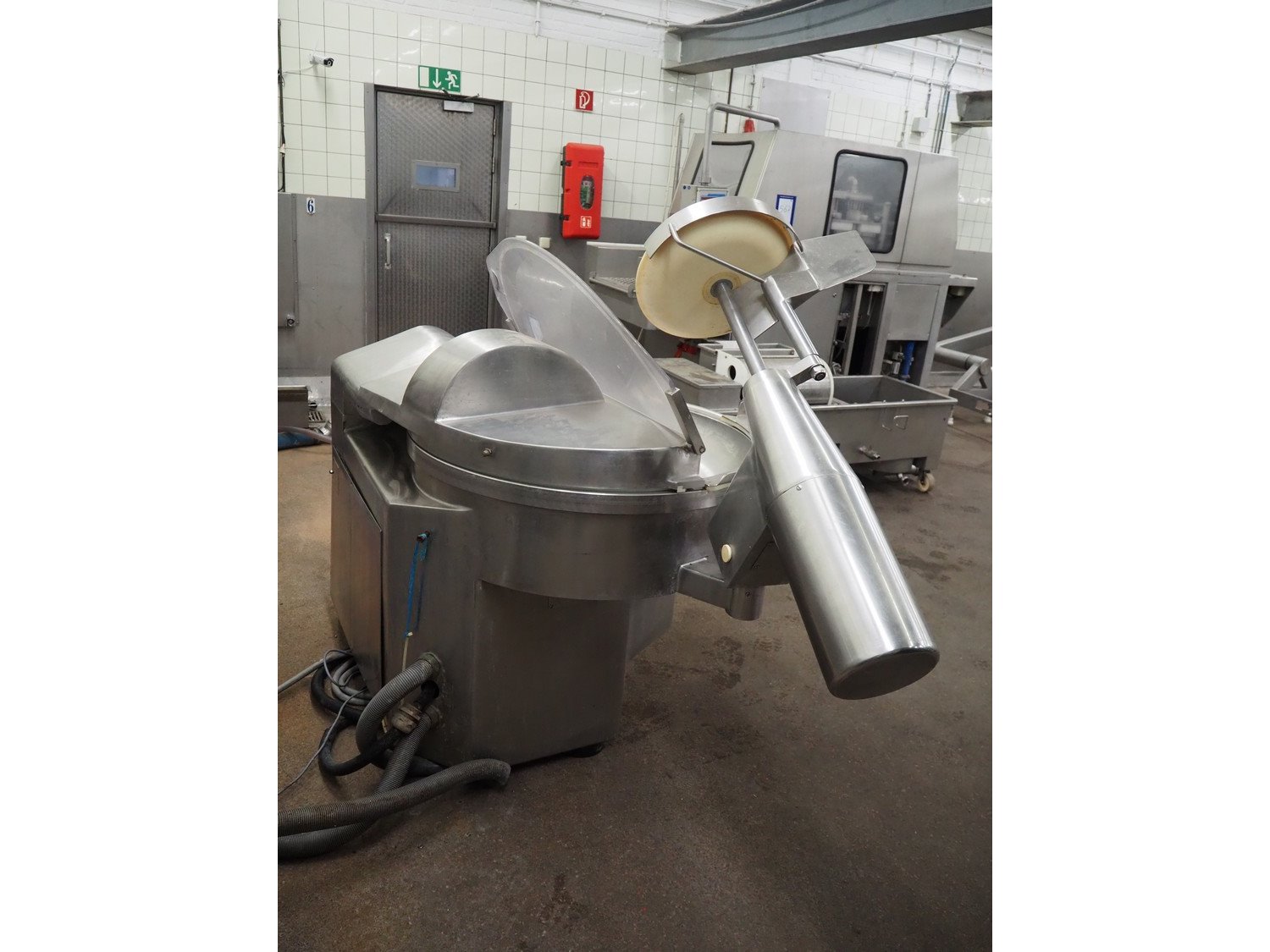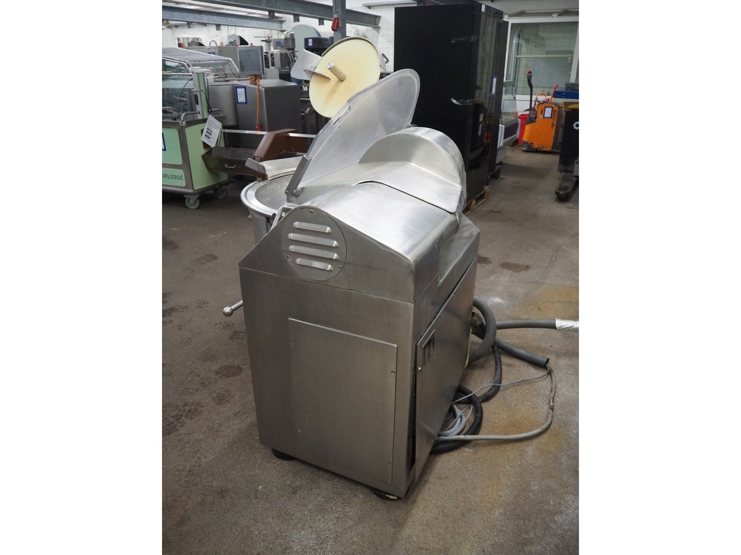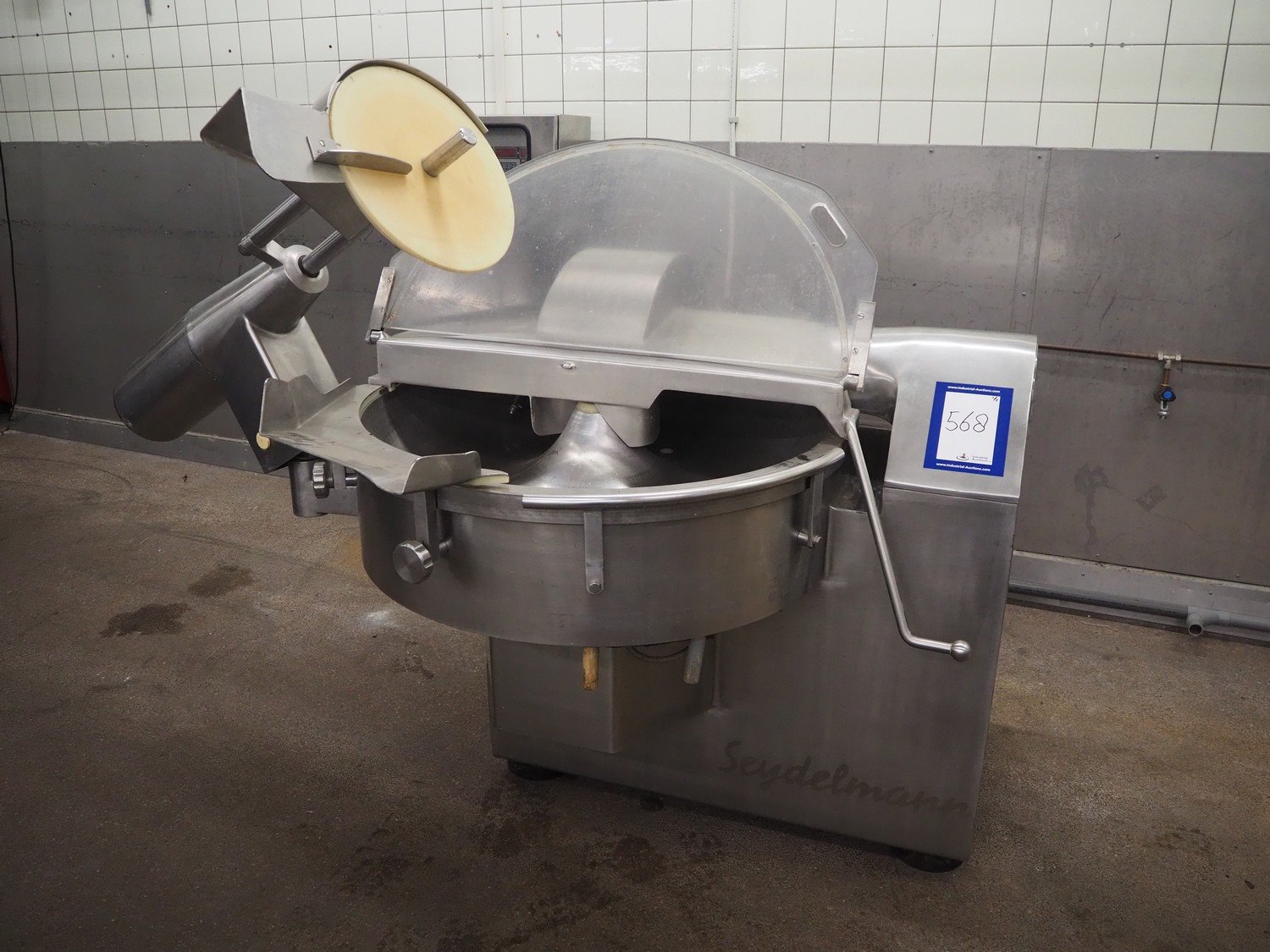 Seydelmann cutter, type: K90DC6, maschine number: 94168-1, 380 V, 50 Hz, 130 A, volume: 90 liter, s/s bowl, type control panel: Micro-12, dimensions: 1330 mm x 2050 mm x 1600 mm.