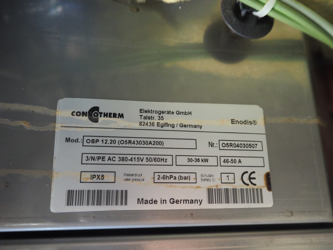 Convotherm combisteamer, model: OSP 12.20, number: O5R04030507, 380-415 V, 3 Ph, 50/60 Hz, 46-50 A, 30-36 kW, inside dimensions: 710 mm x 660 mm x 1000 mm, total dimensions: 1100 mm x 1280 mm x 1370 mm.