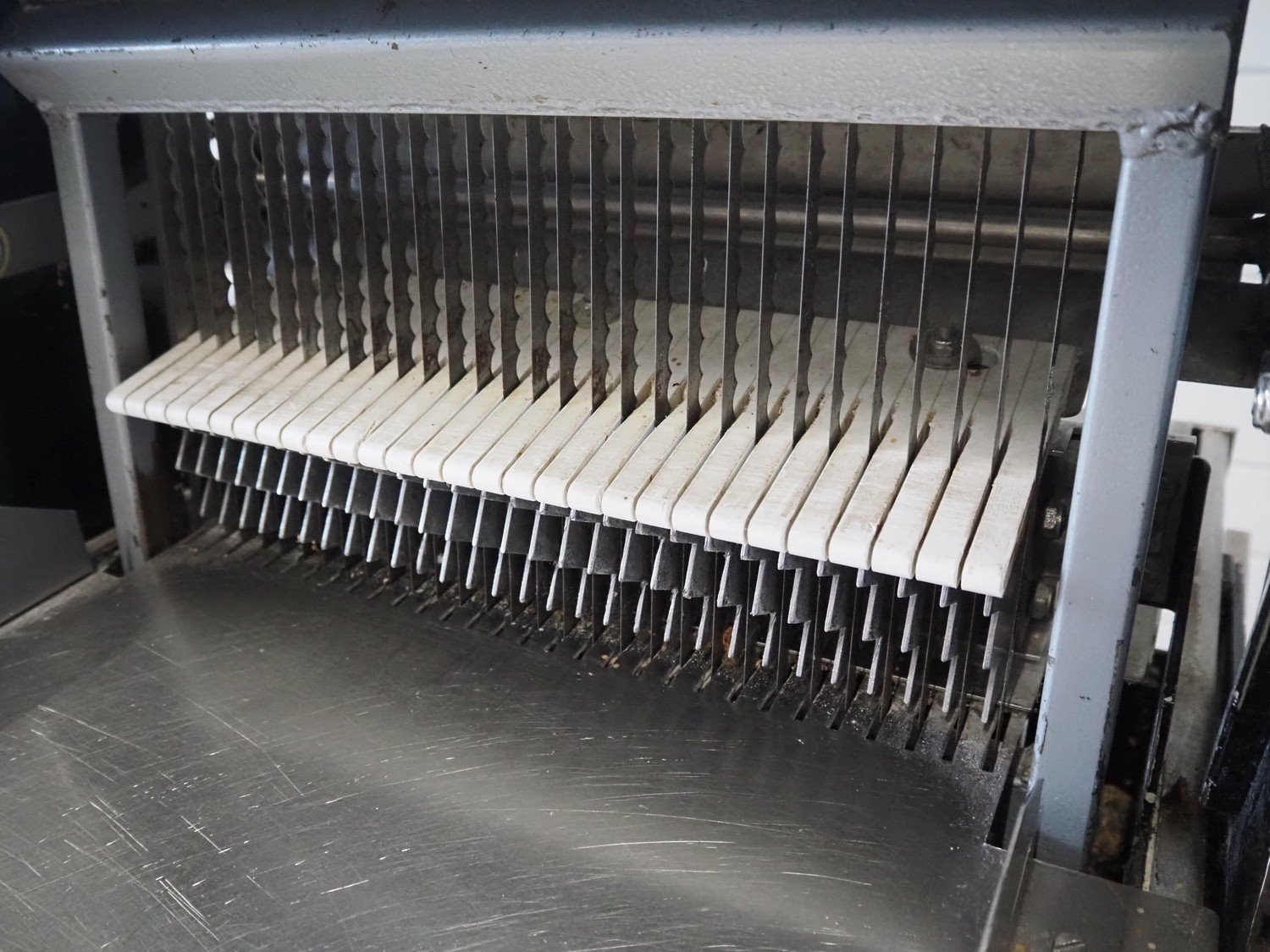 FB mobile bread slicer, 30 knives, distance between knives: 12.5 mm, total dimensions: 700 mm x 580 mm x 1460 mm.