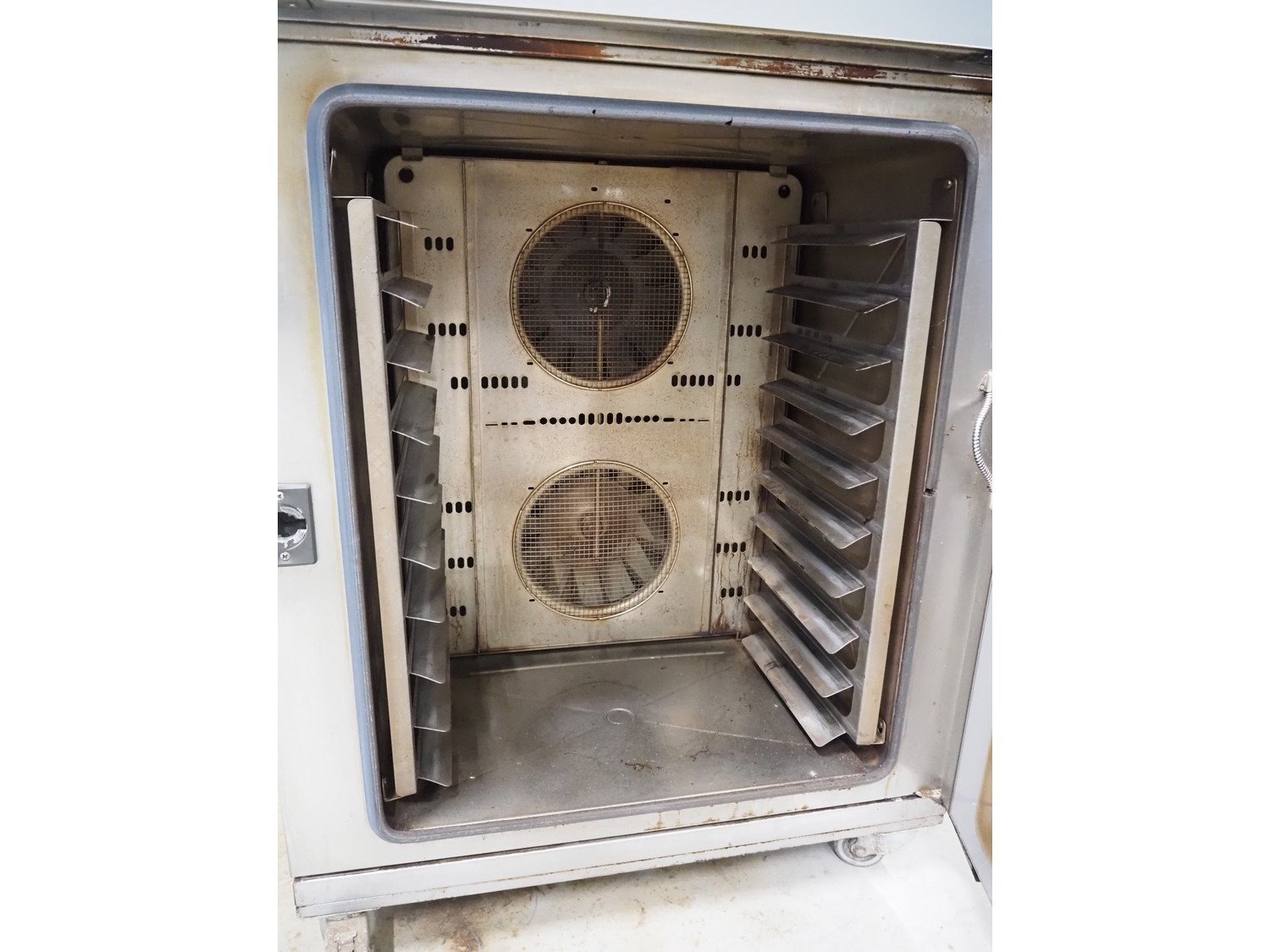 Wiesheu GmbH mobile oven, model: B08-B04-EM-VA, serial number: 10217248, year of construction: 09-2012, 400 V, 3 Ph, 50 Hz, 32 A, 20.8 kW, 5 and 10 floors, dimensions each floor: 610 mm x 400 mm, total dimensions: 1000 mm x 950 mm x 2070 mm.