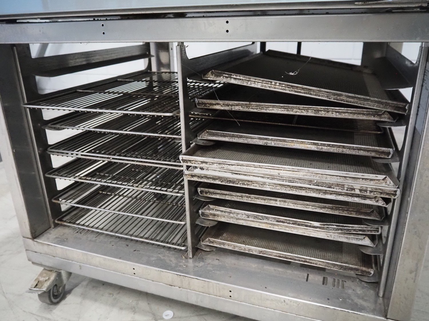 Wiesheu GmbH mobile oven, model: B08-EM, serial number: 10127447, year of construction: 12-2008, 400 V, 3 Ph, 50 Hz, 17.4 A, 12.5 kW, 10 floors, dimensions each floor: 610 mm x 400 mm, total dimensions: 1000 mm x 950 mm x 2070 mm.